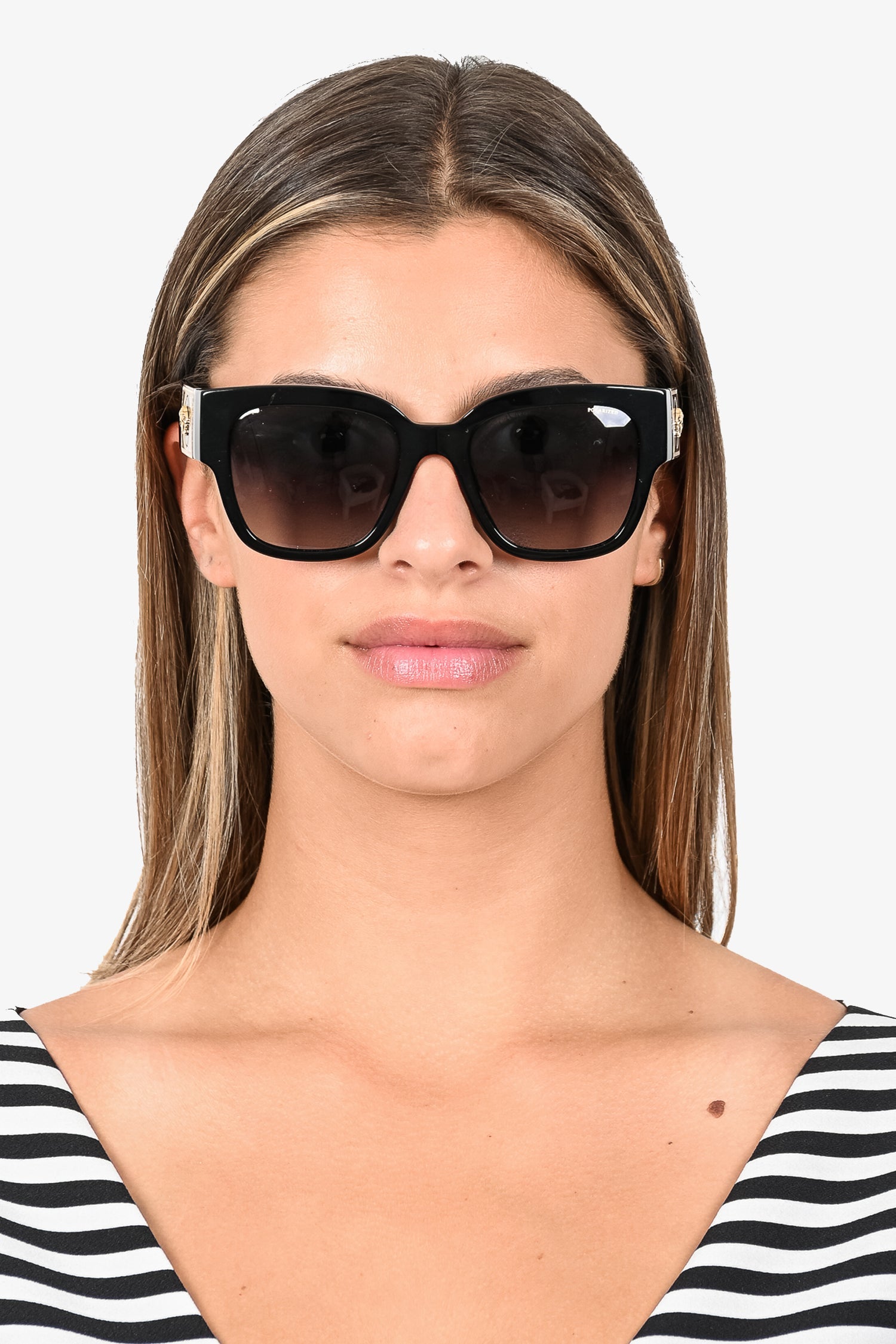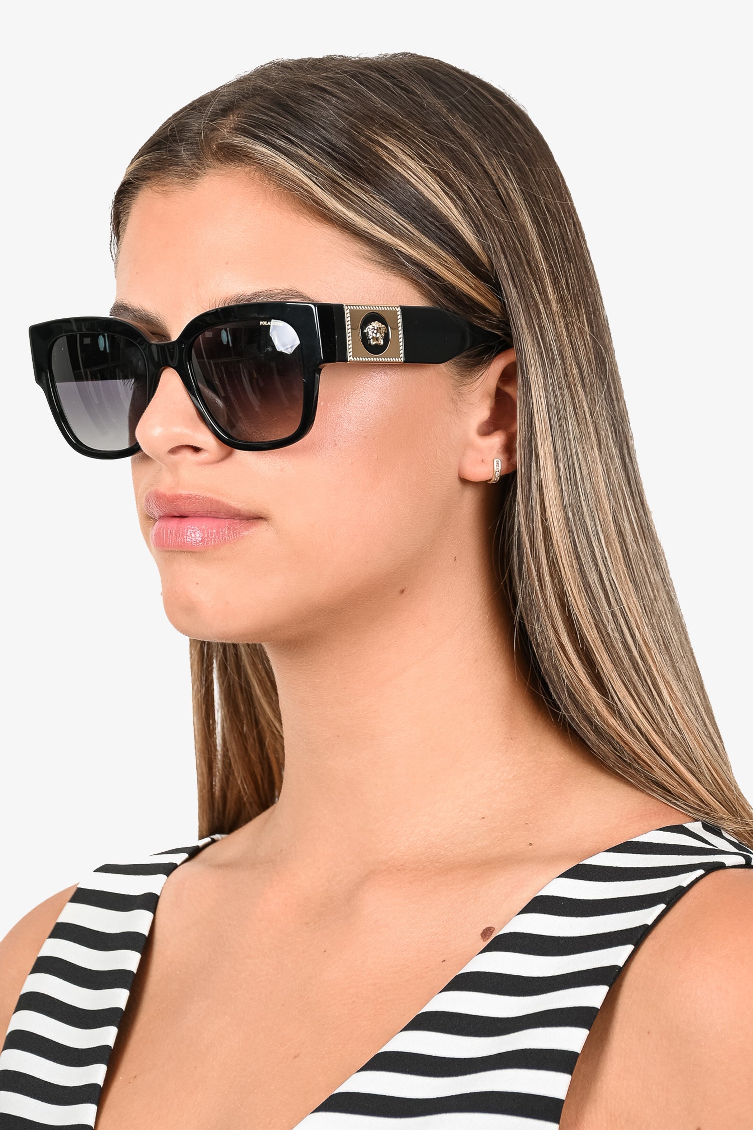Refresh availabilityVersace Black Square Frame Polarized Sunglasses with Gold Medusa Sides. Built-in nose pads.