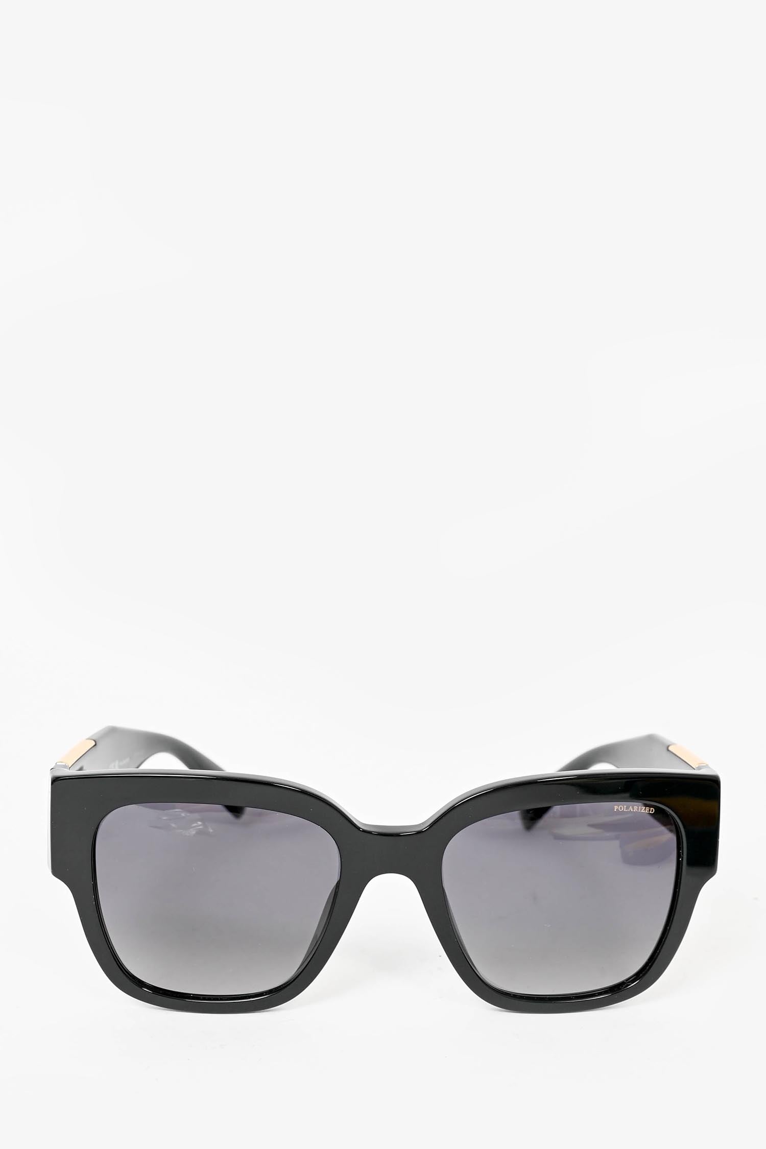 Versace Black Square Frame Polarized Sunglasses w/ Gold Medusa Sides