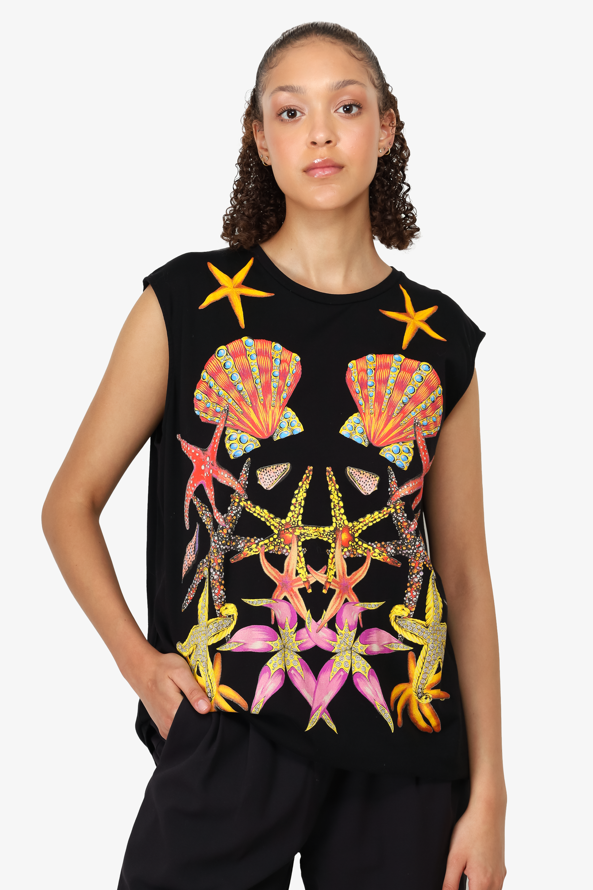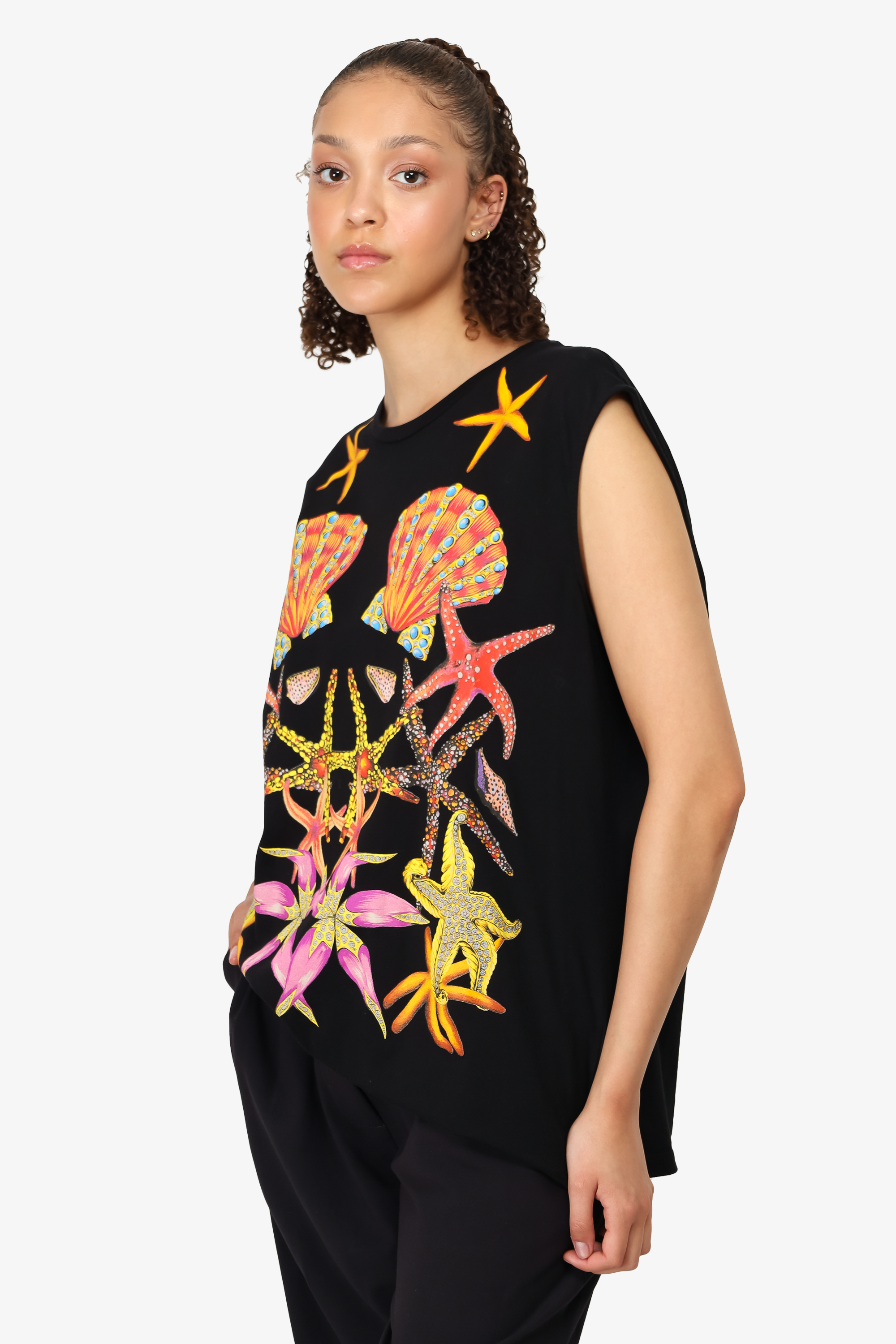 Refresh availabilityVersace Black Trésor De La Mer Print Sleeveless Top. Round neckline. Pull-on. Tonal stitching.