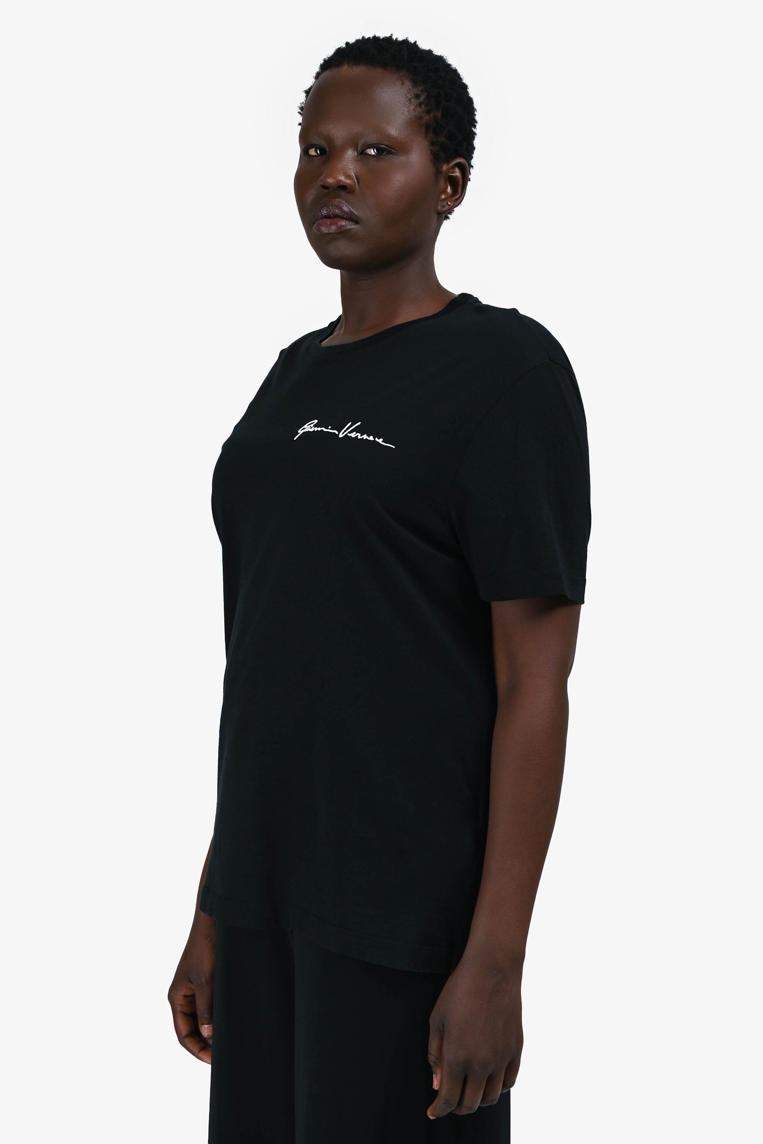 Refresh availabilityVersace Black White Cursive Logo T-Shirt. Round neck. Pull-on.