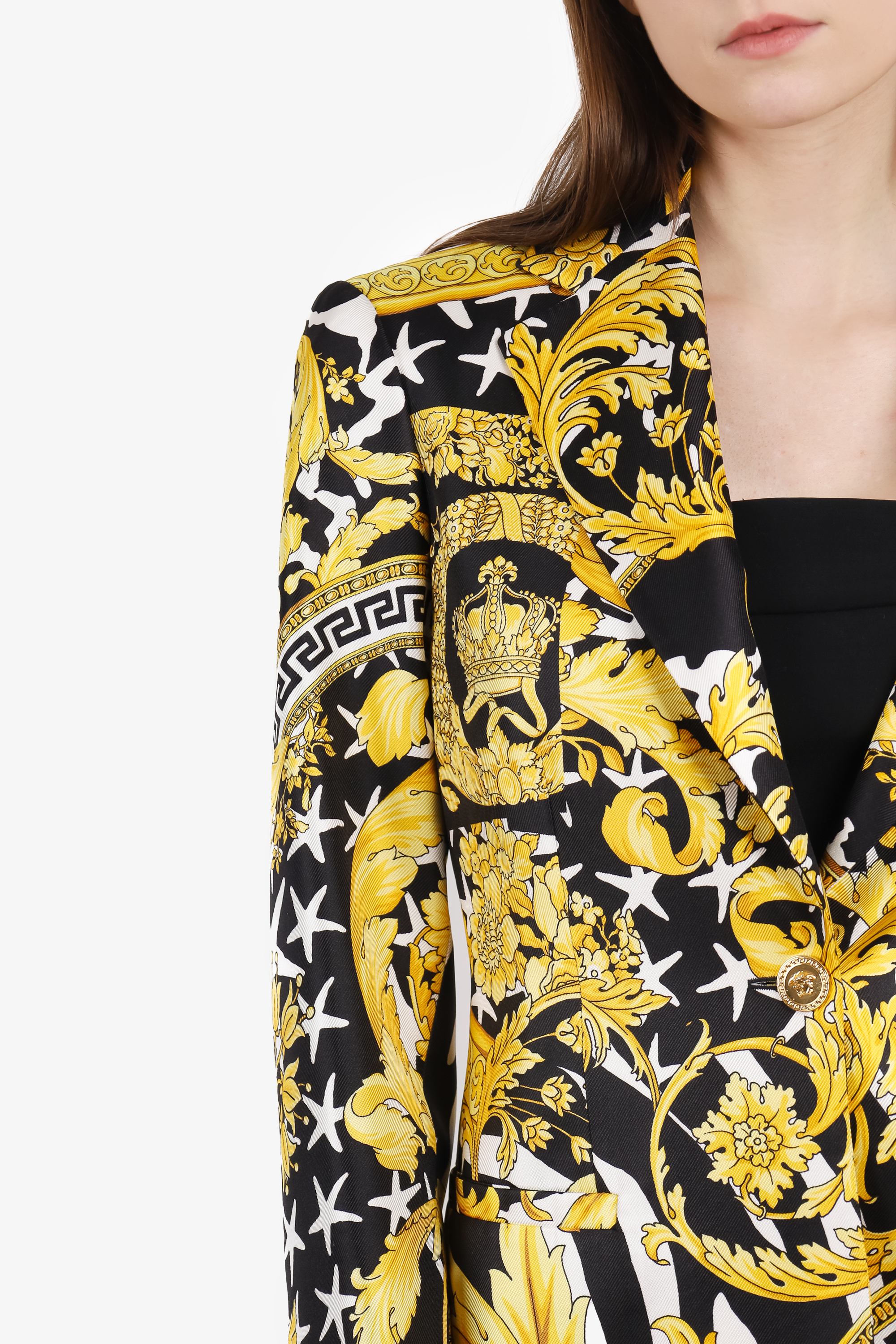 Refresh availabilityVersace Black/White/Yellow Barque Print Blazer. Front button closure. Lined. Tonal stitching.