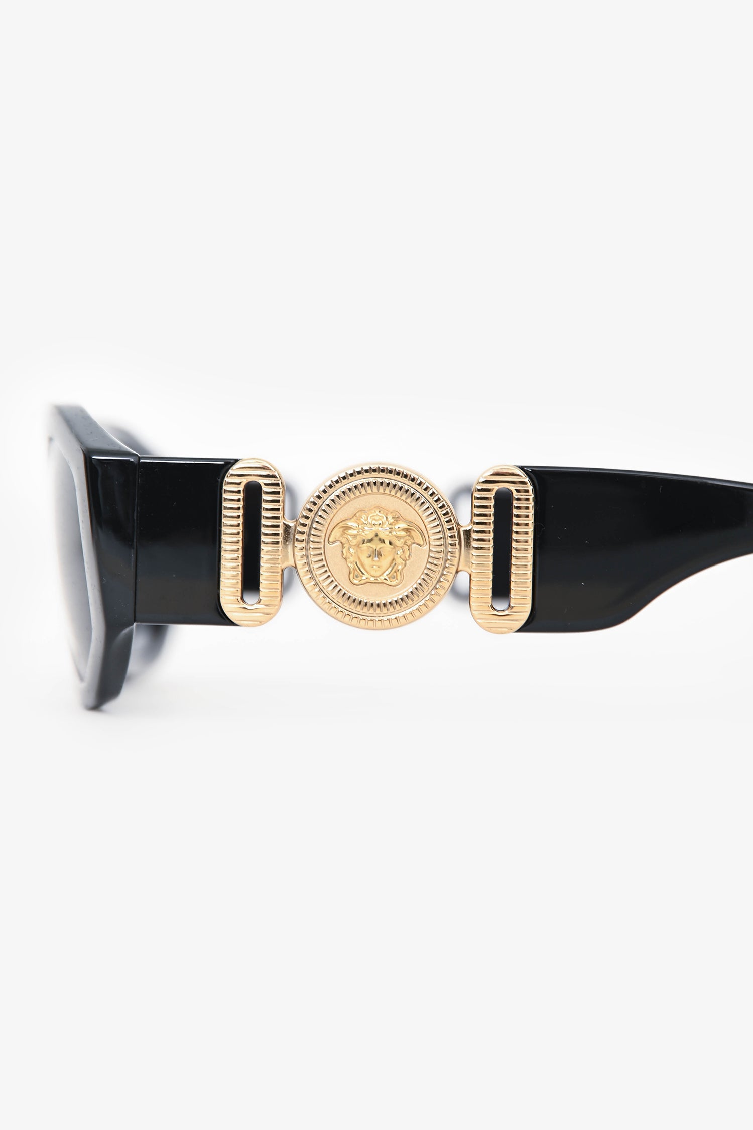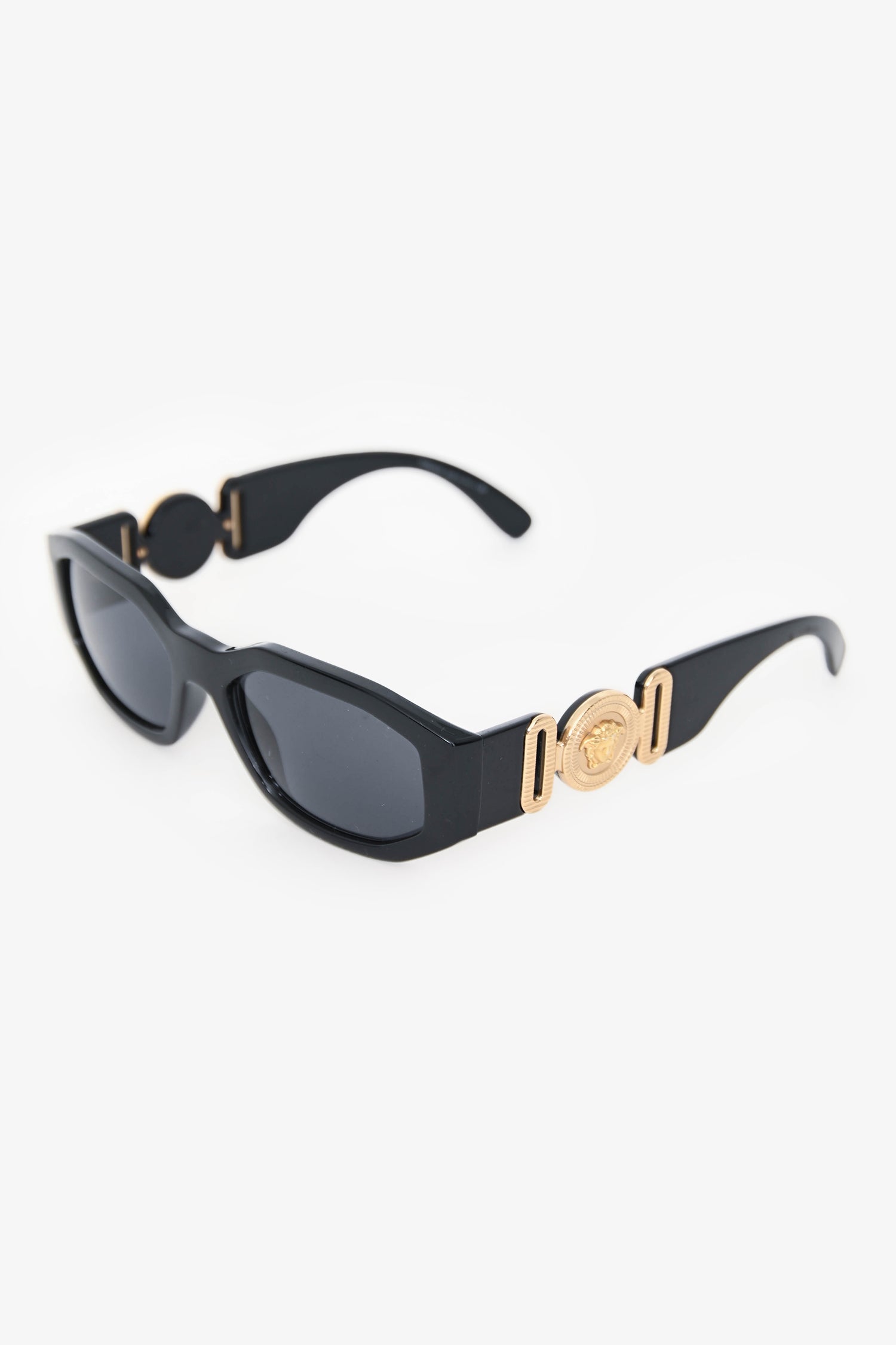 Refresh availabilityVersace Black/Gold La Medusa Square Sunglasses. Built-in nose pads. Gold-tone hardware.