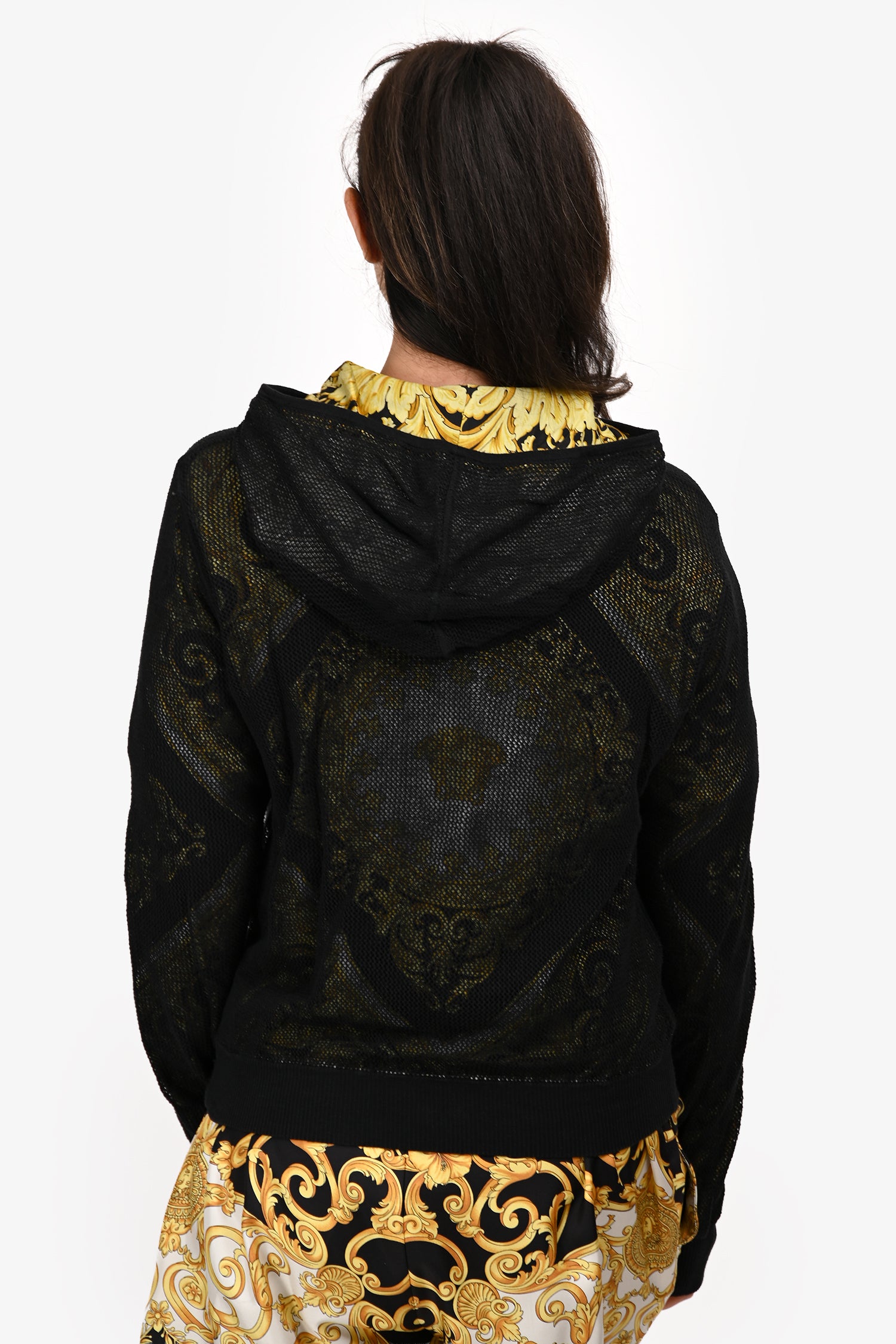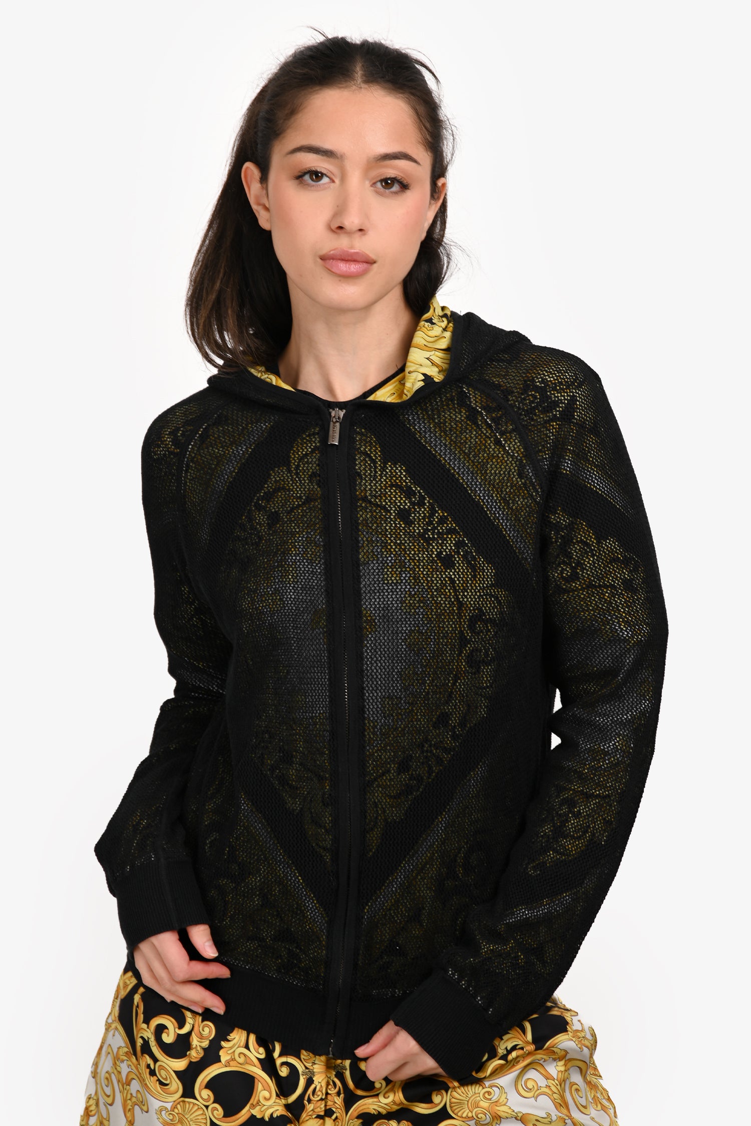 Versace Black/Yellow Mesh Baroque Zip Up Hoodie Size 48