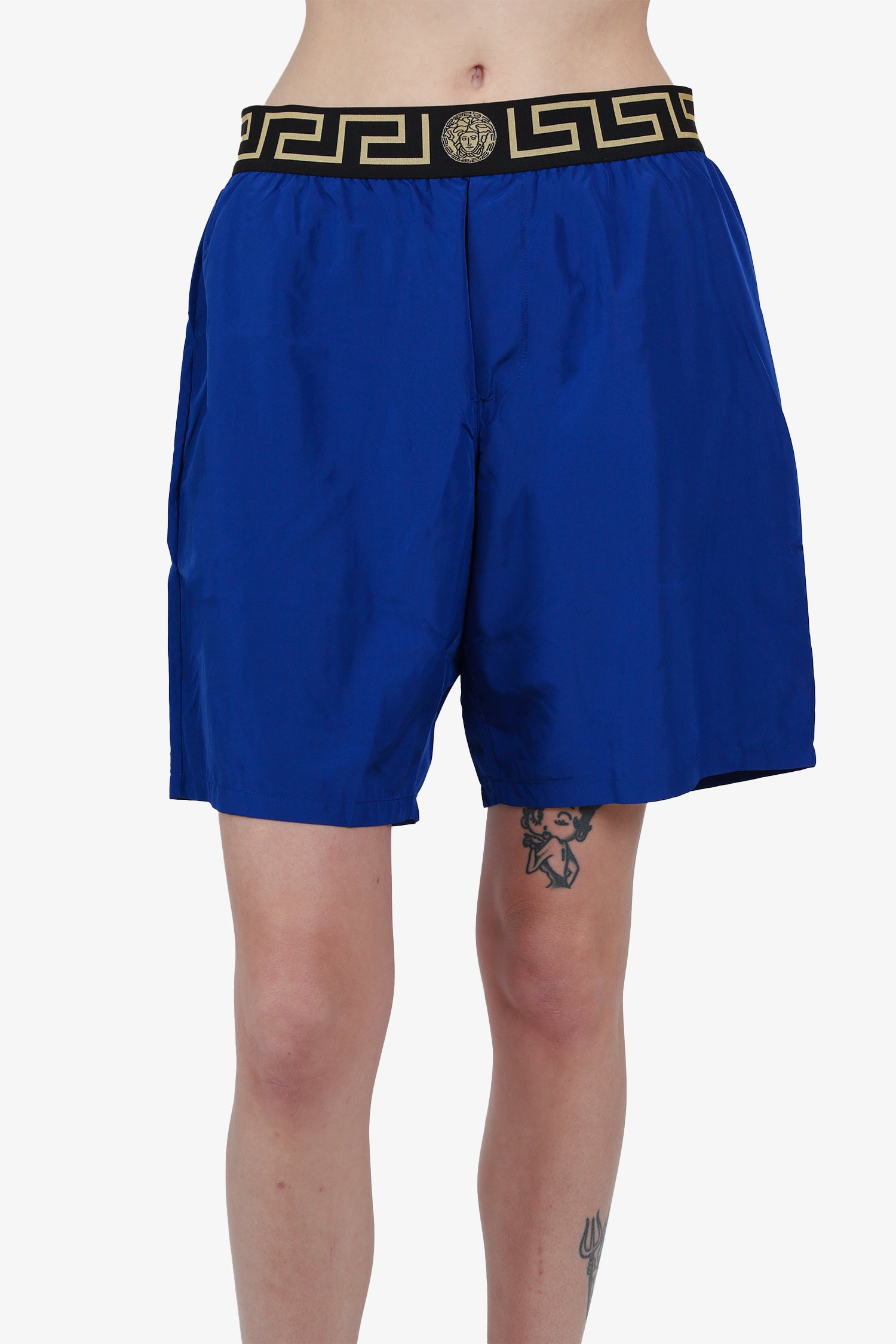 Refresh availabilityVersace Blue Printed Swim Trunks. Pull-on. Elasticated waist band. Tonal stitching.