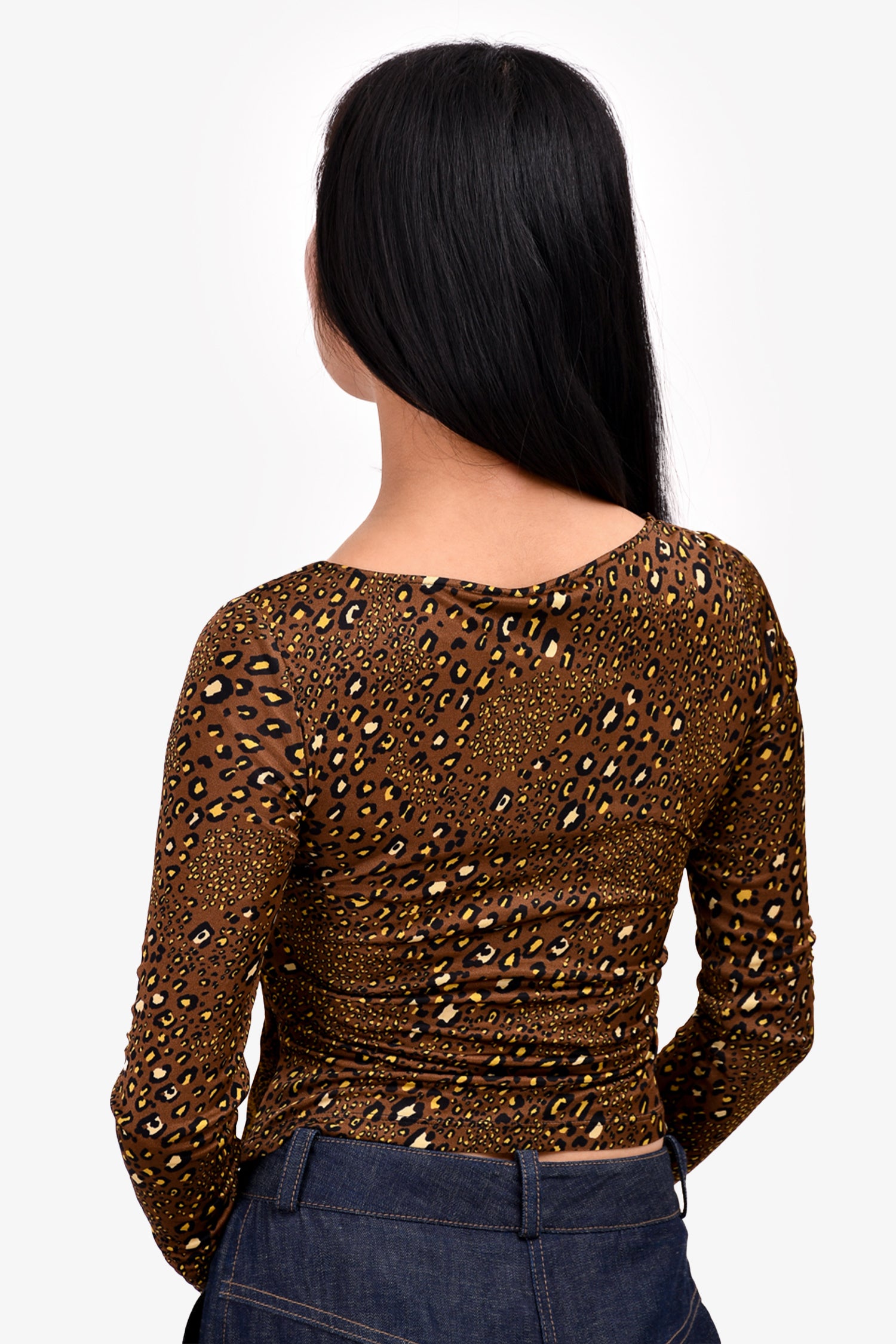 Versace Brown Patterned Ring Detail Blouse Size 38