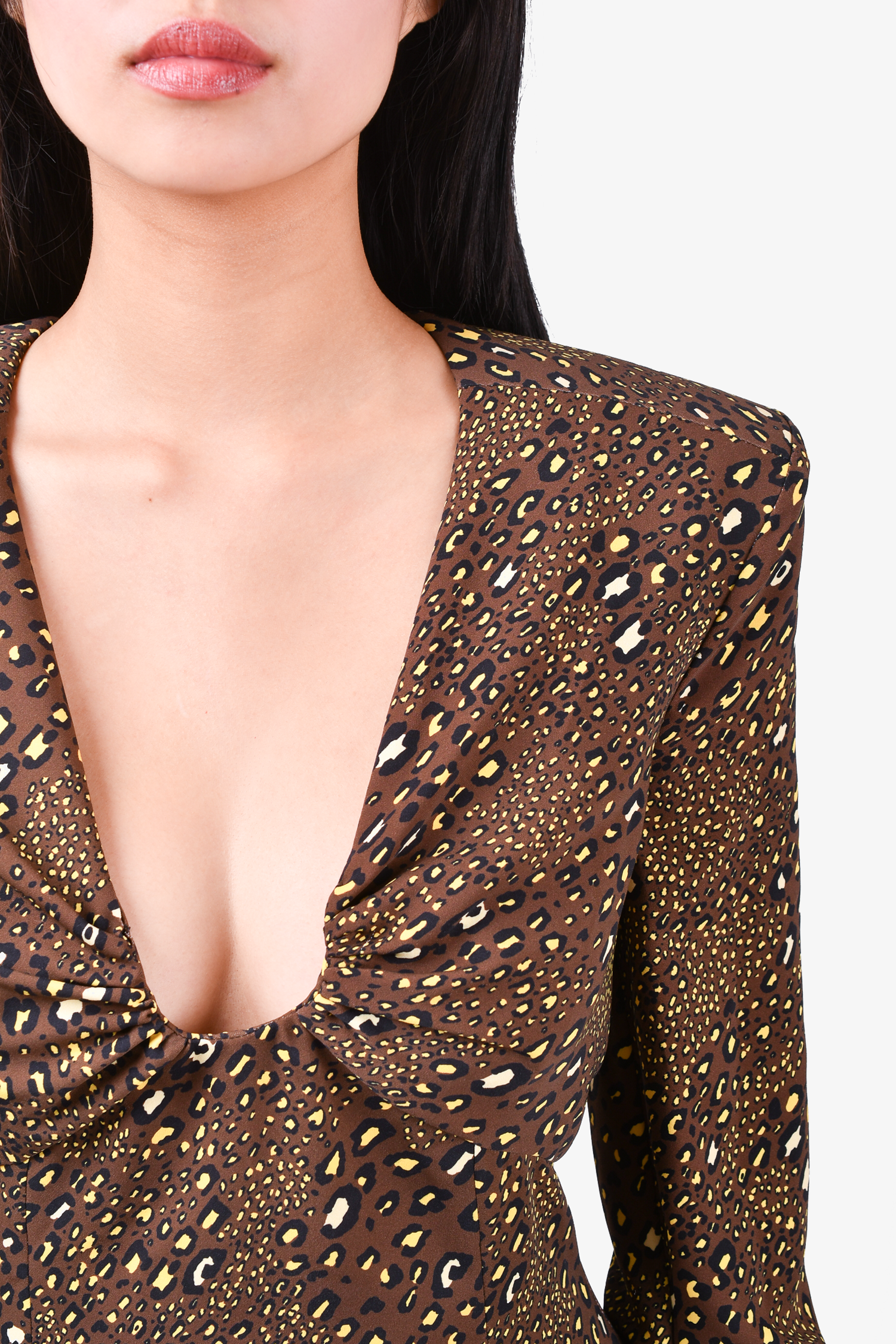 Refresh availabilityVersace Brown/Yellow Leopard Shoulder Padded Mini Dress. Rear zip and hook closure. Lined. Tonal stitching.