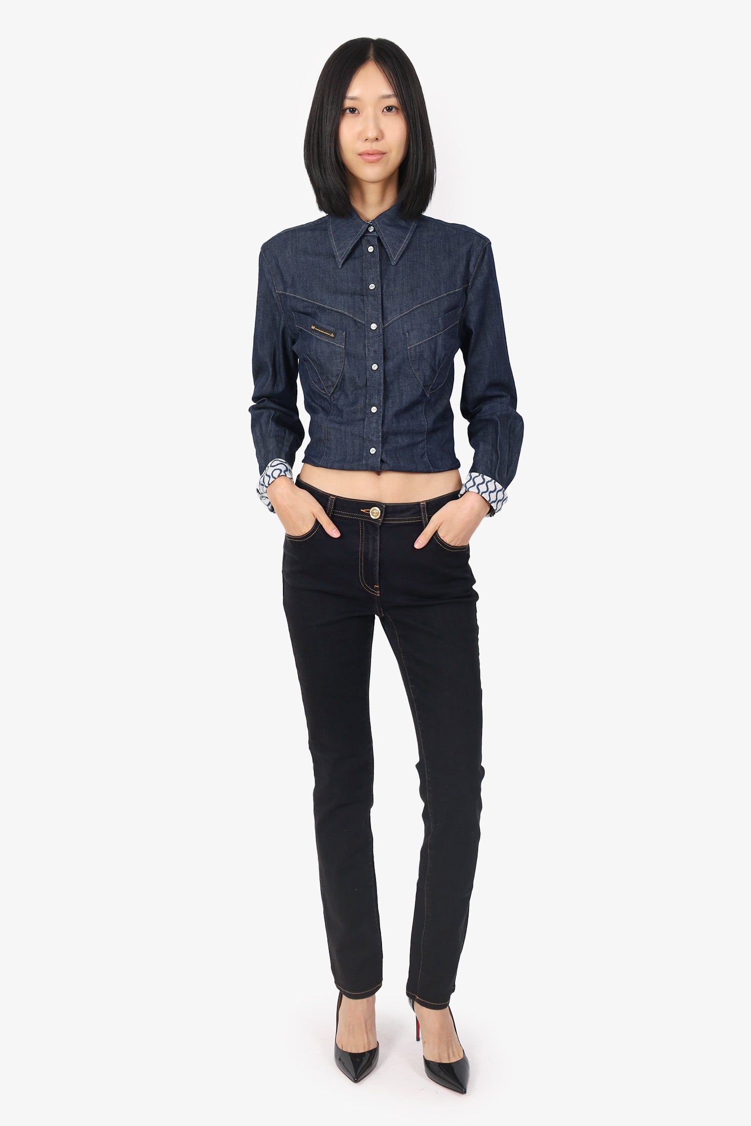 Versace Dark Denim Logo Back Pocket Straight Leg Jeans Size 28