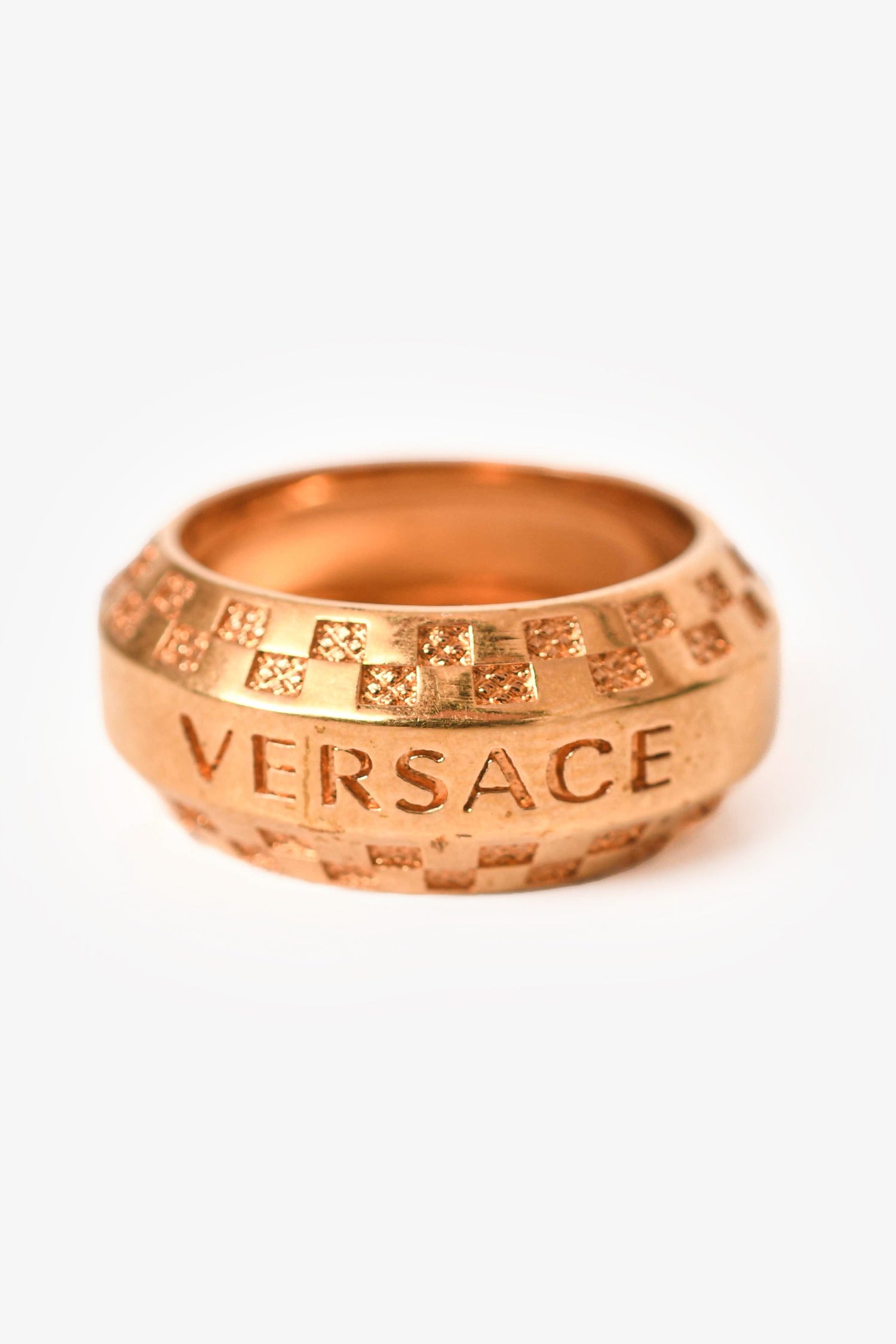 Refresh availabilityVersace Gold Tone Medusa Ring. Decorative engravings.