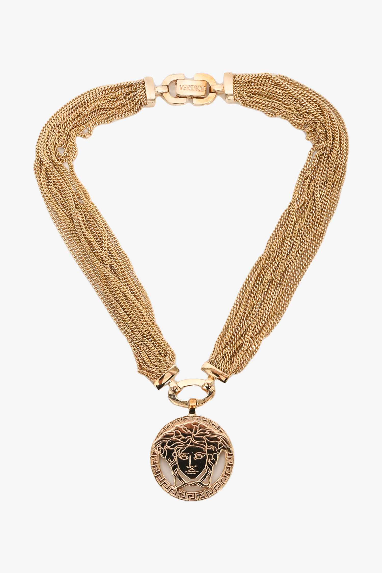 Versace Gold Toned Chain Pendant Necklace