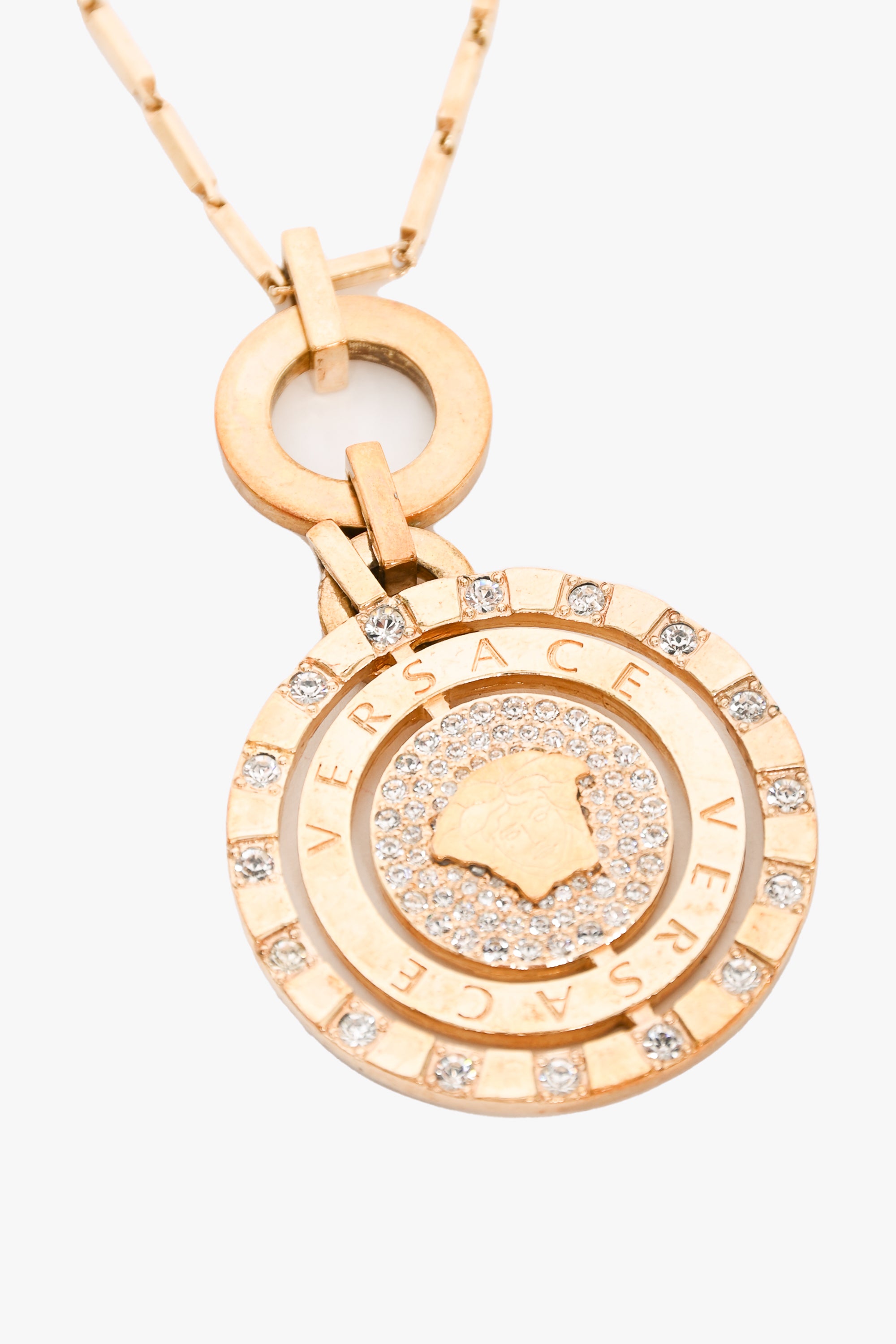 Refresh availabilityVersace Gold Toned Crystal Studded Pendant Chain Necklace. Gold-tone hardware. Lobster clasp closure.