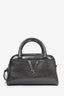 Versace Gunmetal Crackle Leather Small Virtus Bowling Bag with Strap