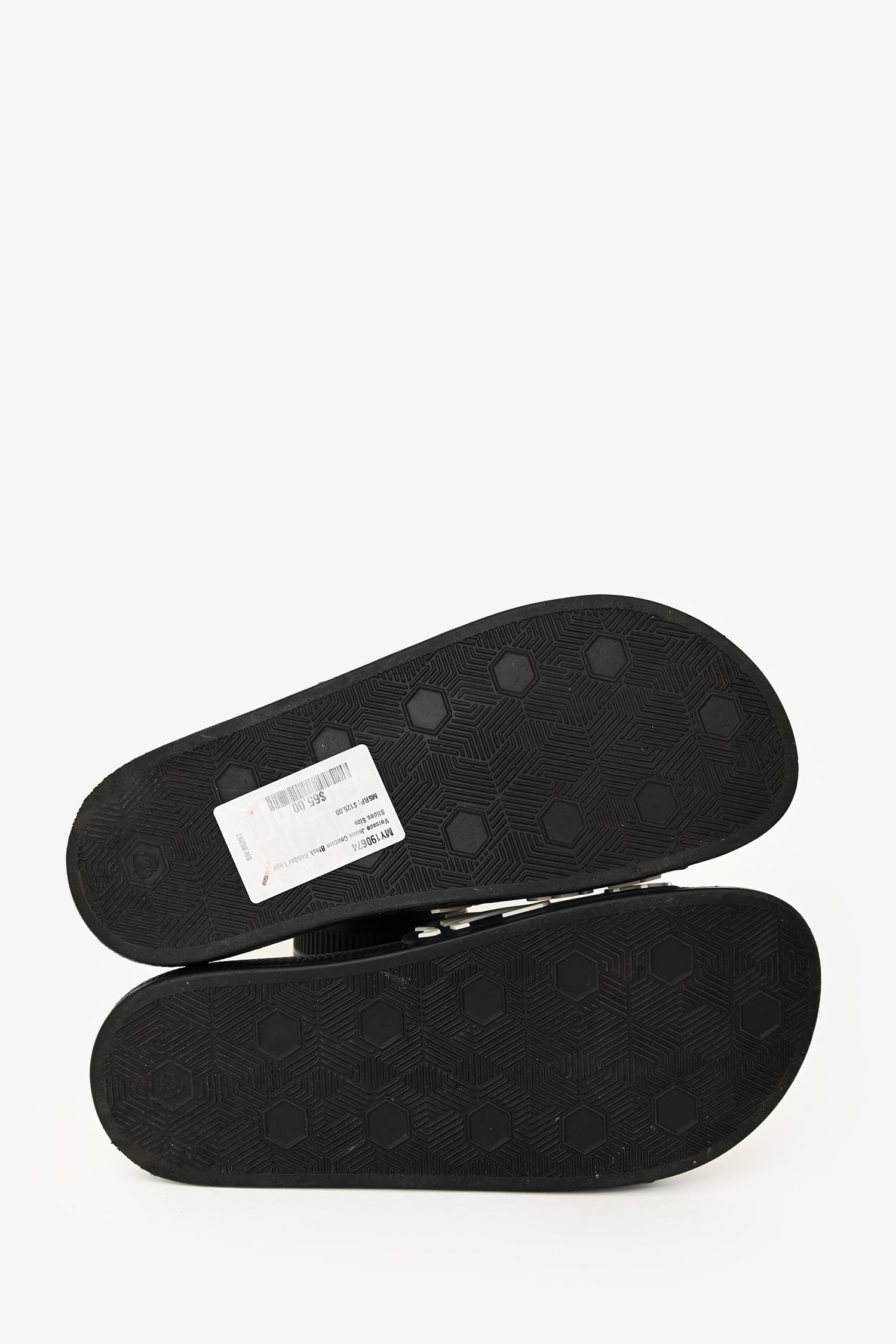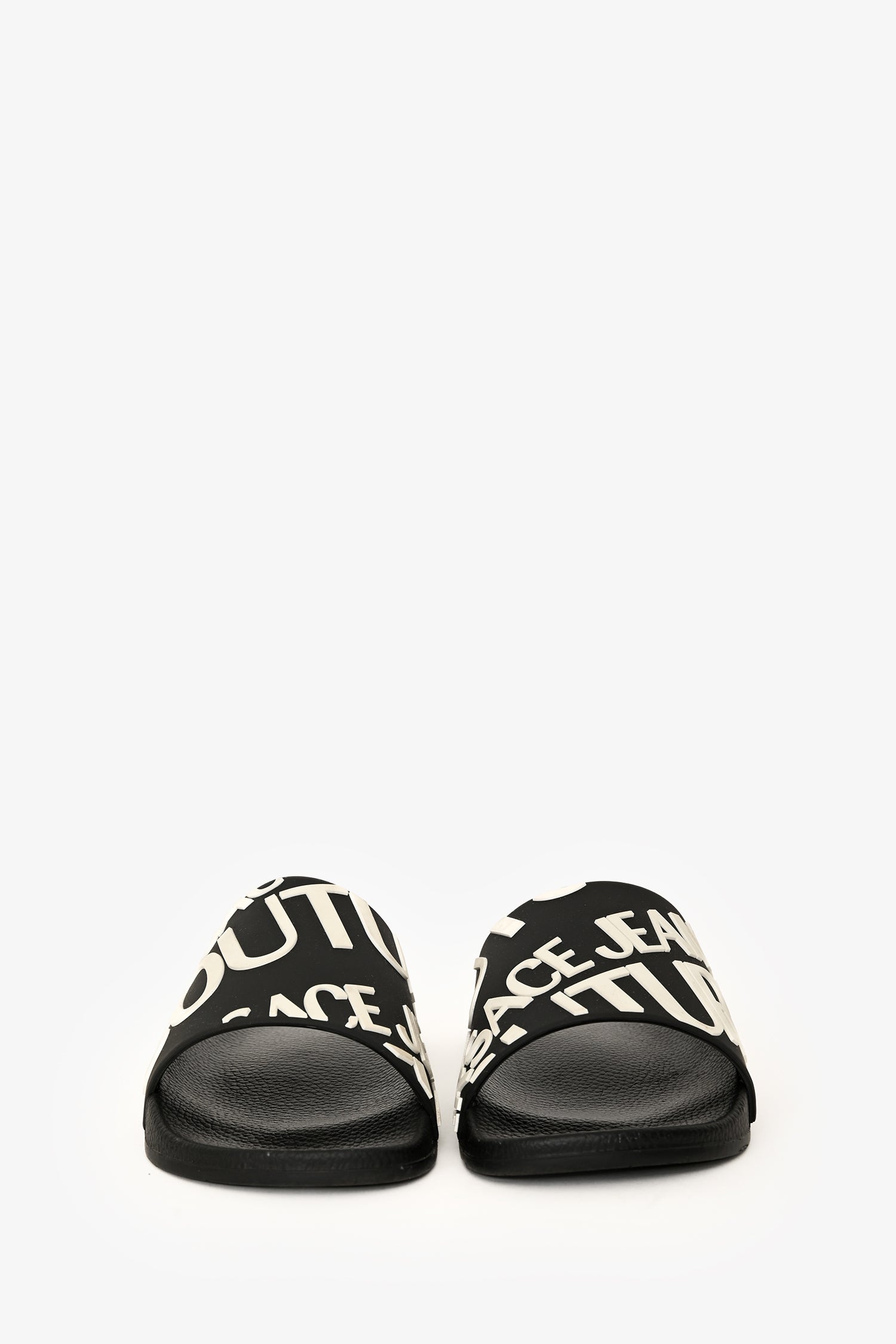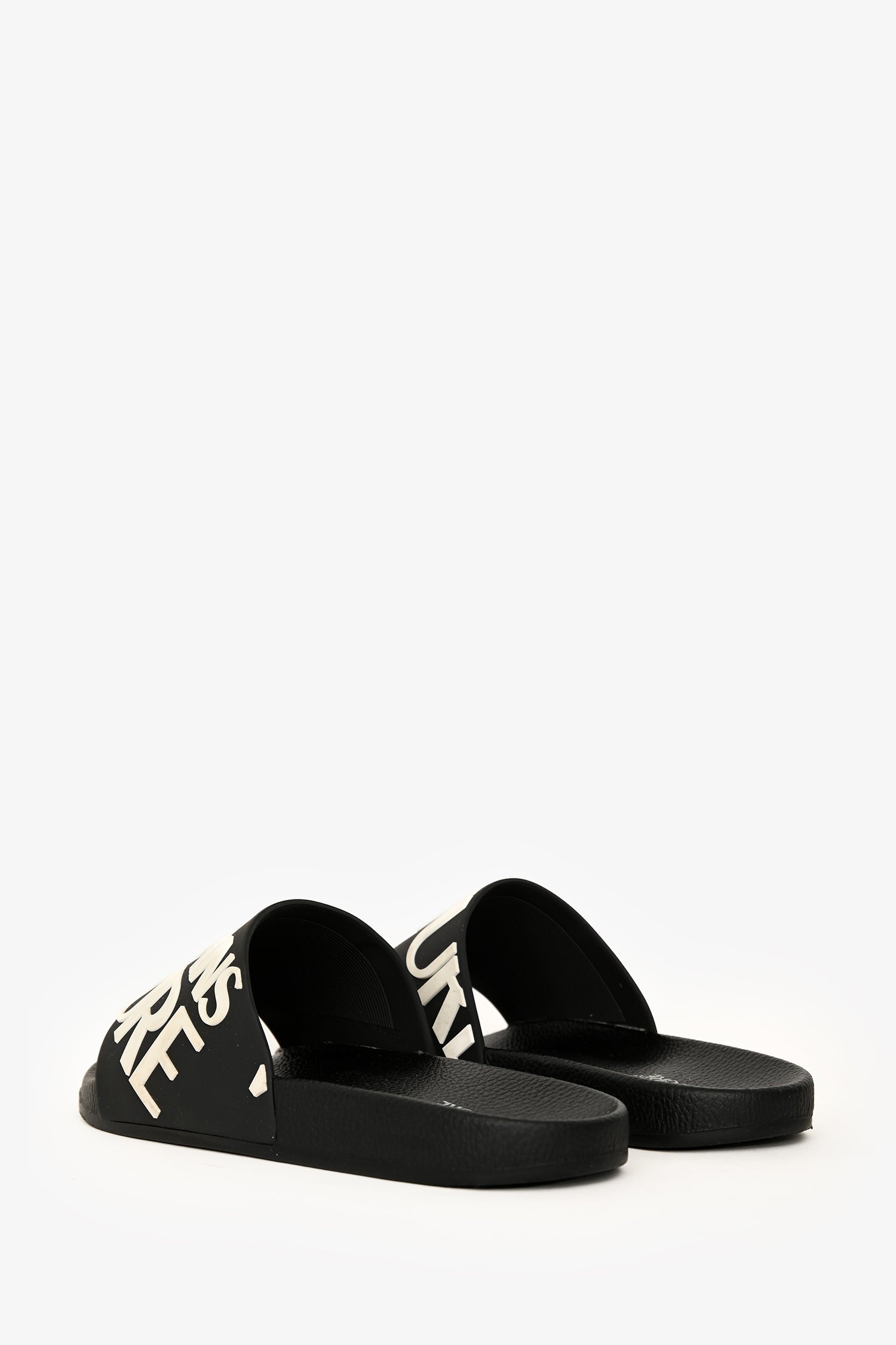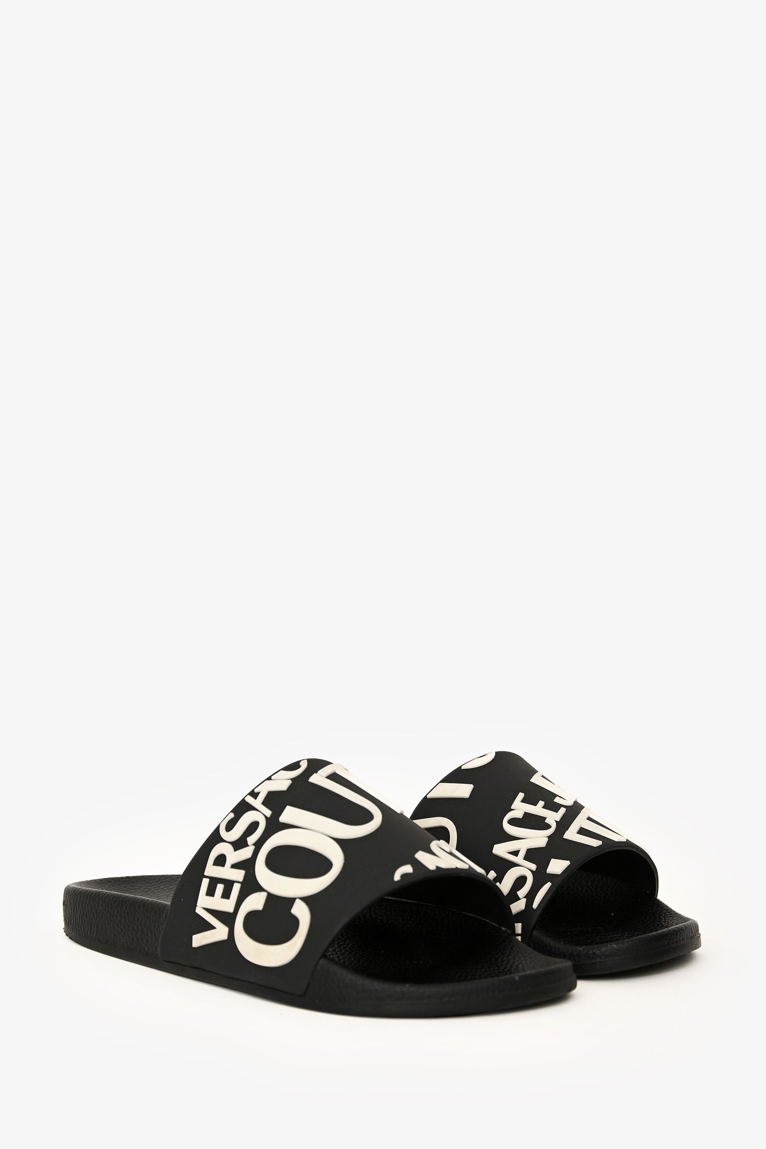 Refresh availabilityVersace Jeans Couture Black Rubber Logo Slides. Tonal stitching.