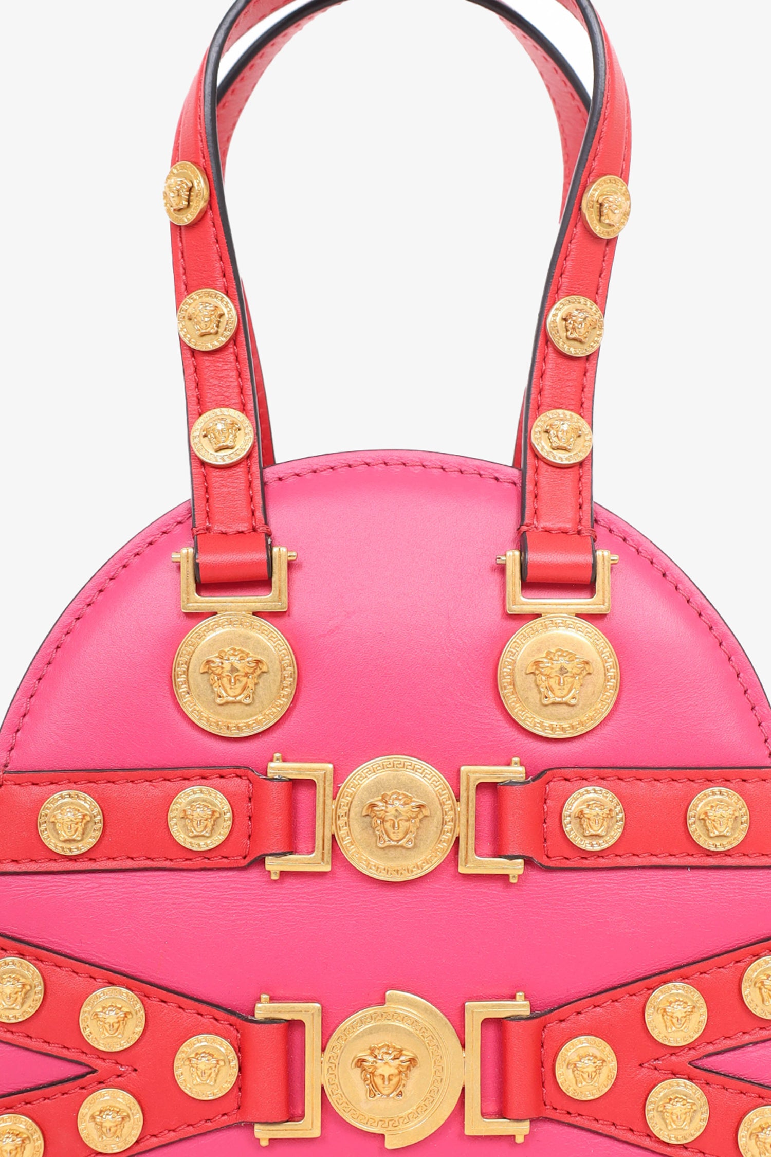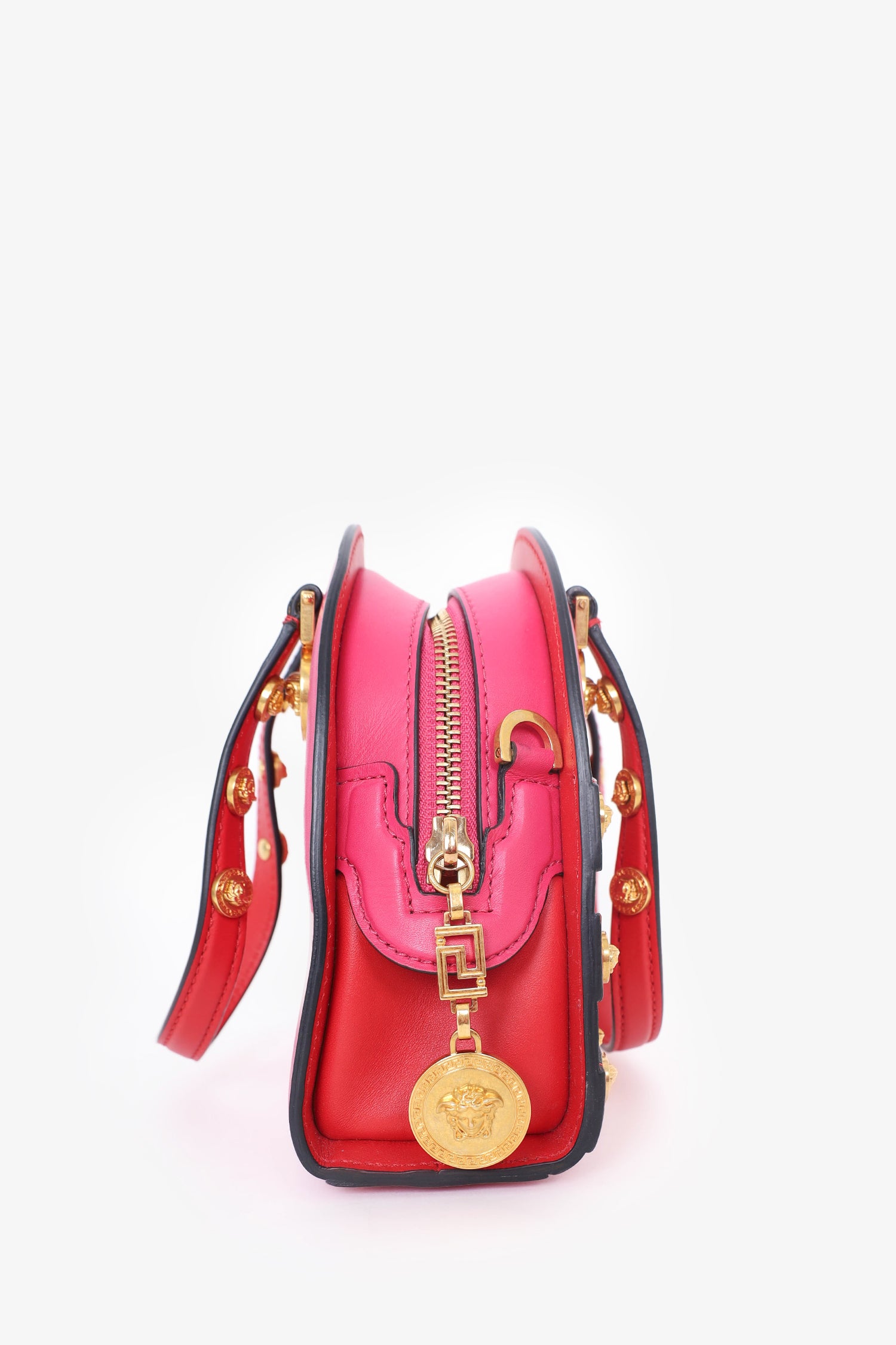 Versace Pink/Red Leather Tribute Medallion Bag with Strap