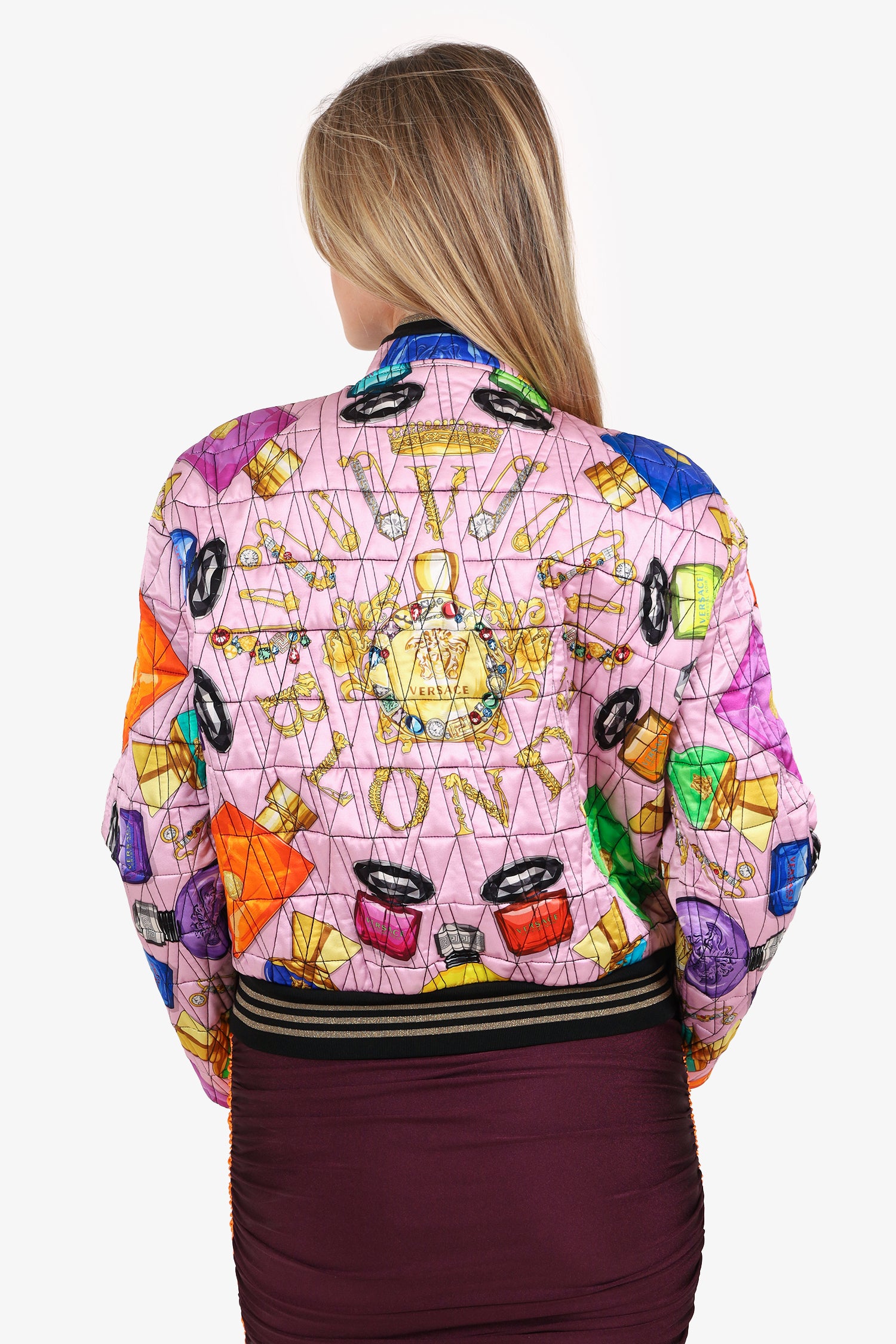 Versace Pink Silk Printed Bomber Jacket Size 44