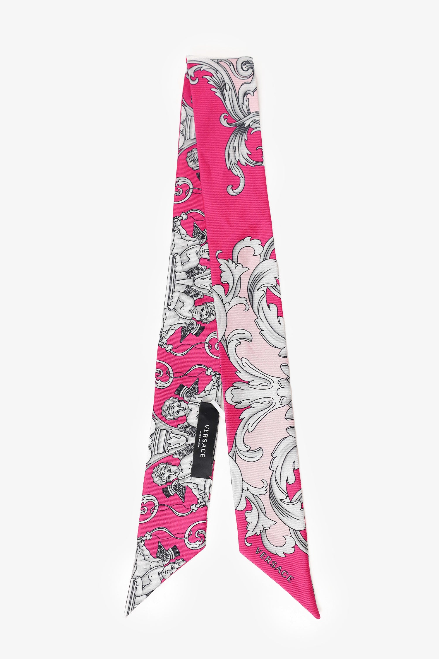 Refresh availabilityVersace Pink/White Angle Print Twilly. Tonal stitching.