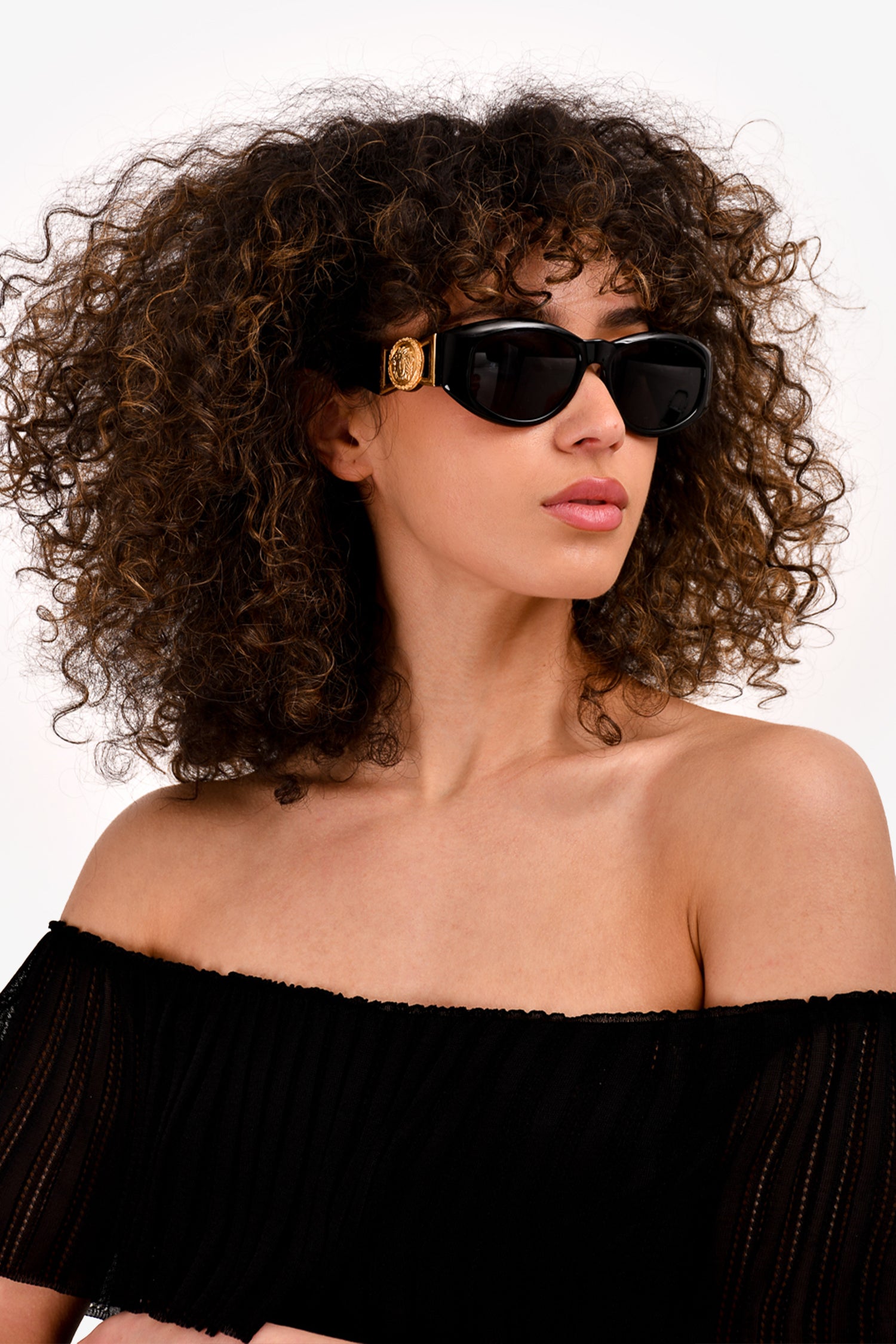 Versace Vintage Black Medusa Head Rectangle Sunglasses
