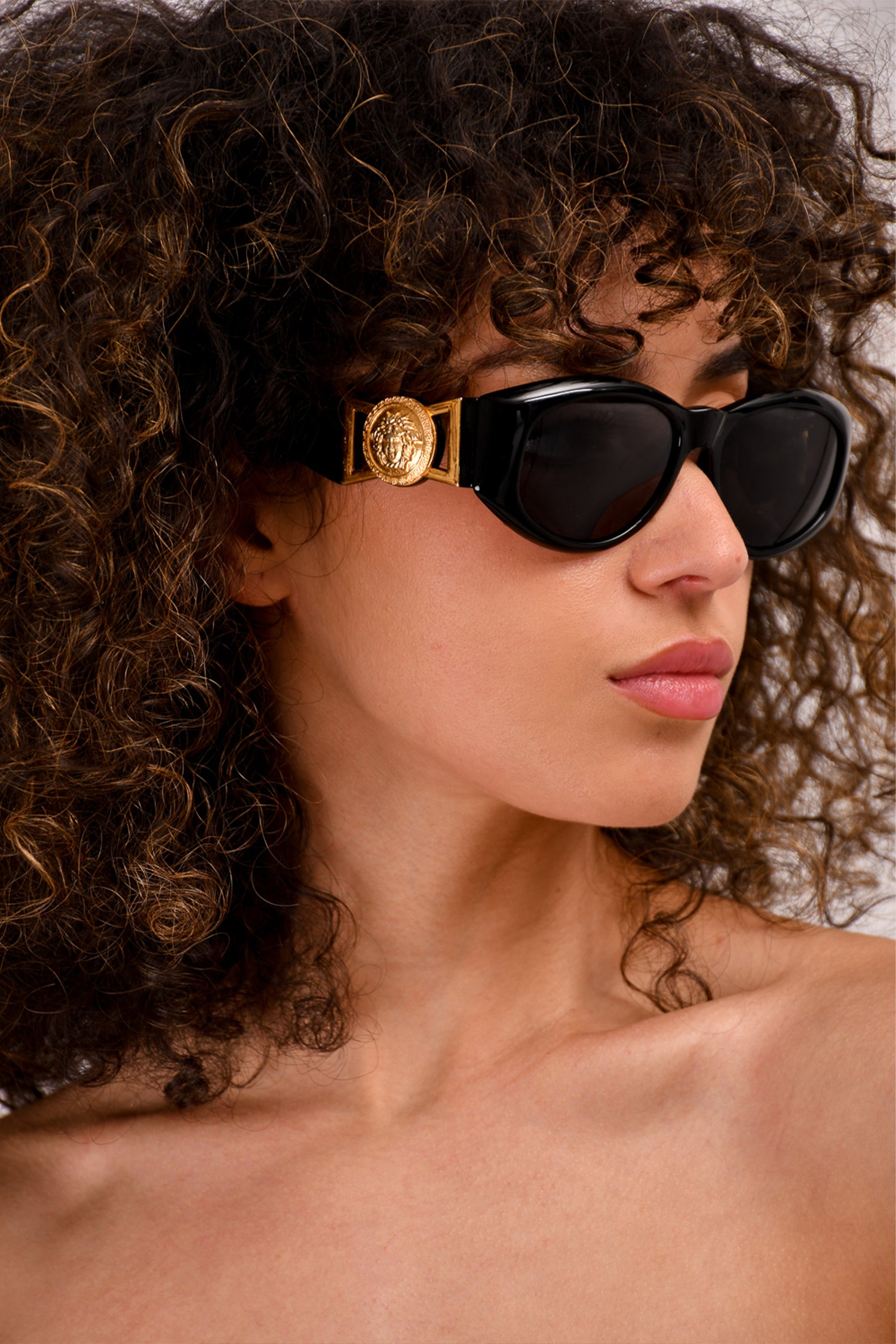 Refresh availabilityVersace Vintage Black Medusa Head Rectangle Sunglasses. Built-in nose pads.