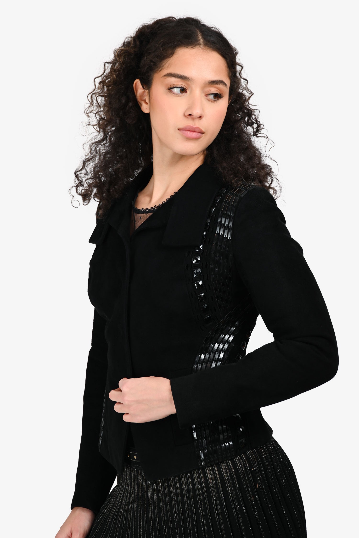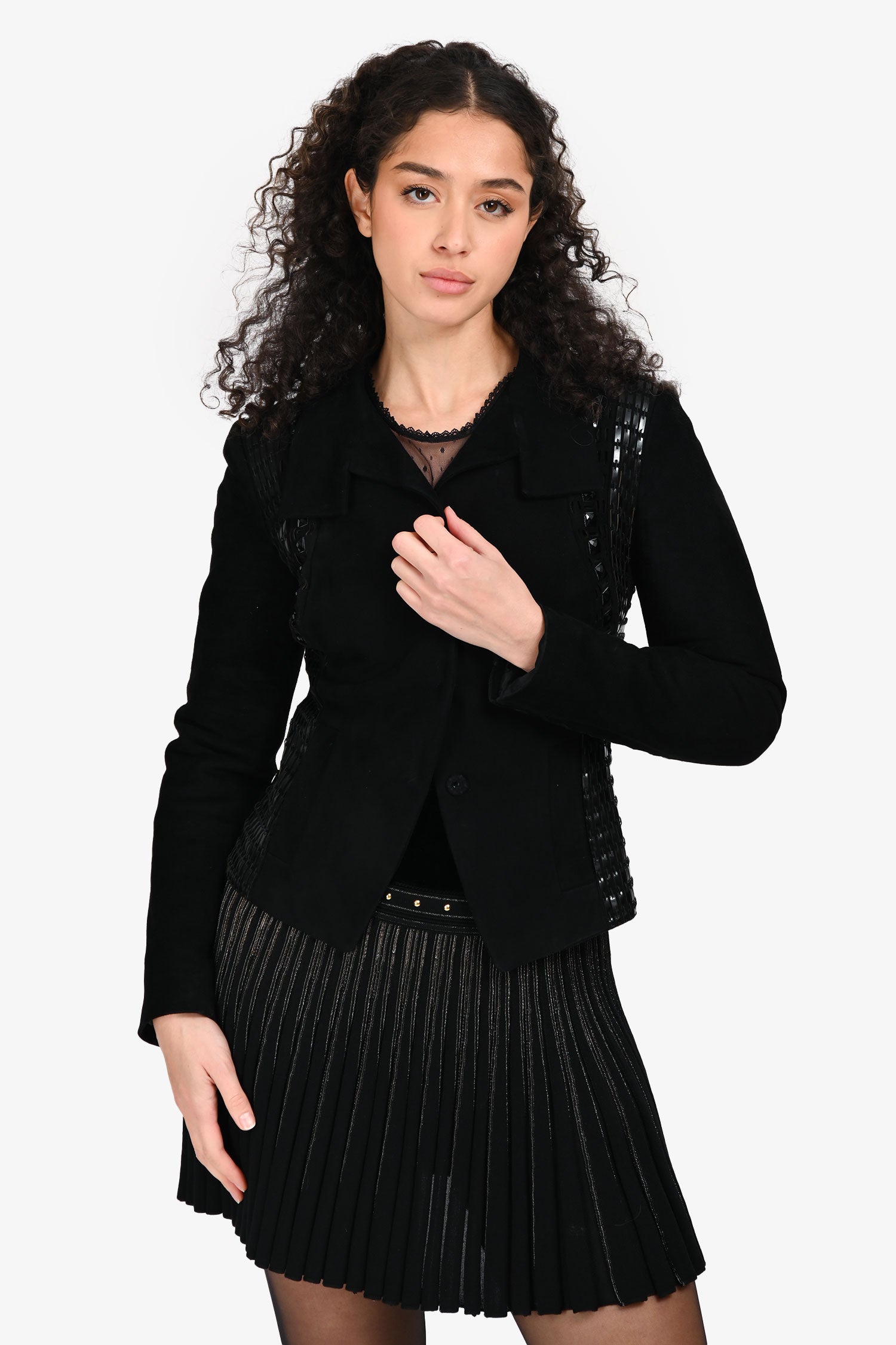 Versace Vintage Black Suede Studded Jacket Size 40