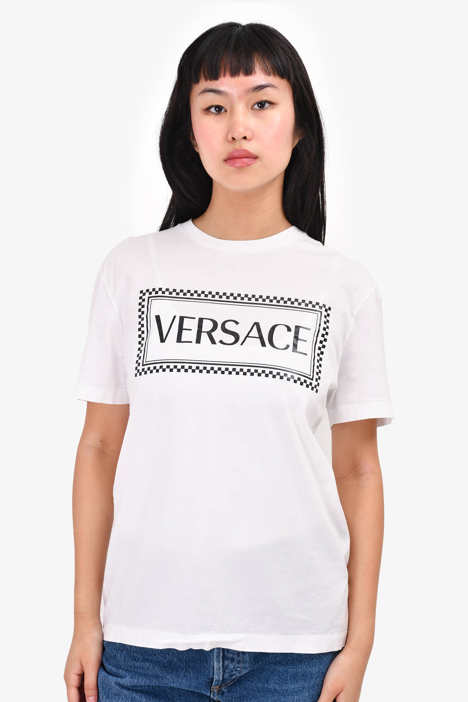 Refresh availabilityVersace White/Black Graphic Print T-Shirt. Round neck. Pull-on.