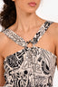 Versace White/Black Text Printed Silk Mini Dress Size 40