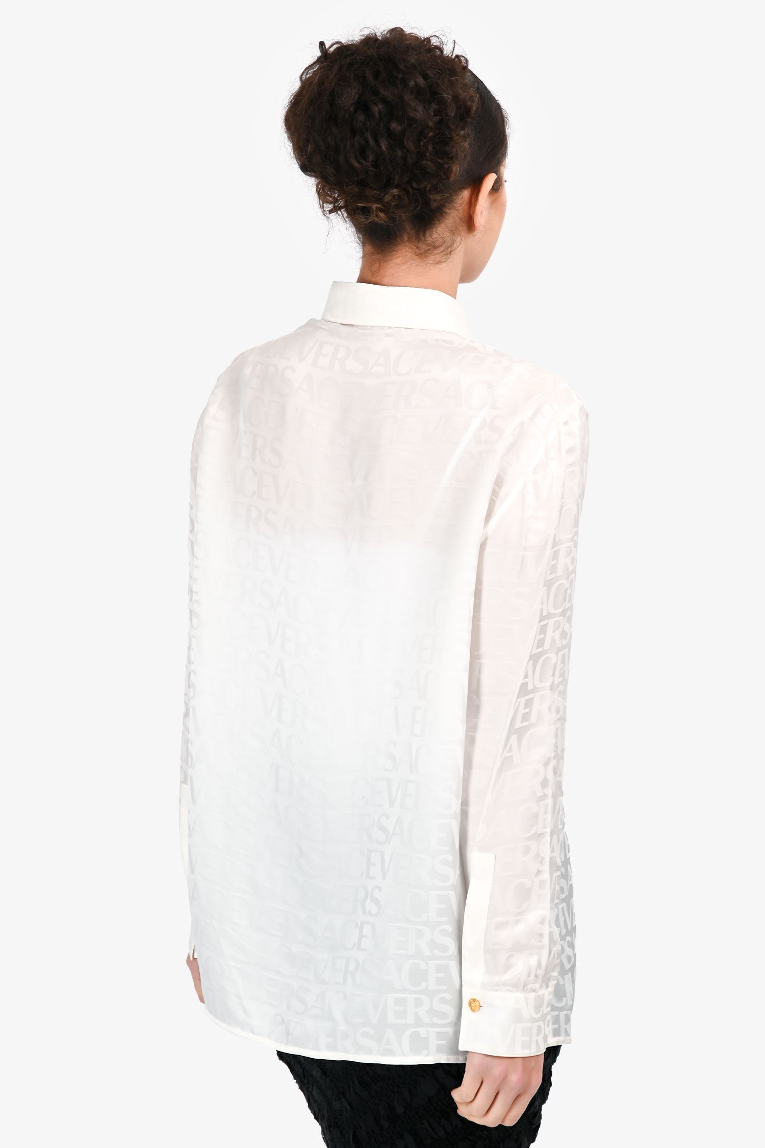 Versace White Satin 'Icon Jacquard' Long Sleeve Button Down Shirt 42