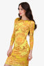 Versace Yellow Graphic Printed Bodycon Midi Dress Size 38