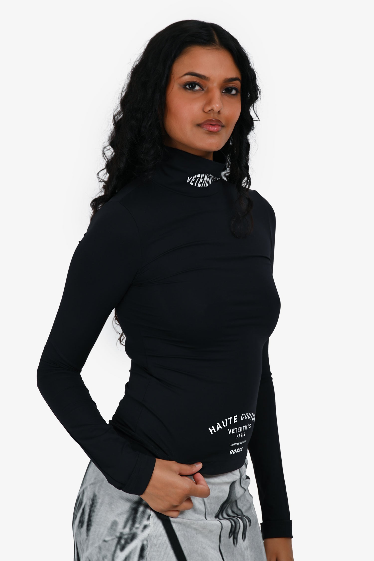 Refresh availabilityVetements Black ‘Haute Couture’ Mock Neck Top. Pull-on. Mock neckline. Tonal stitching.