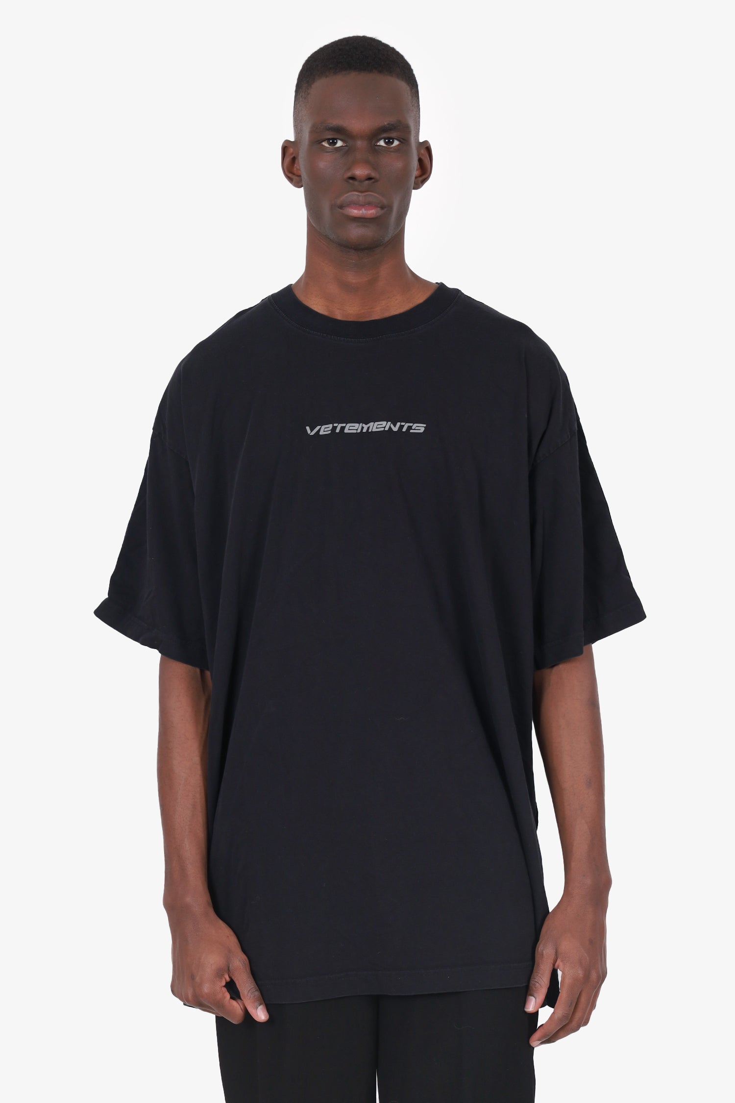 VETEMENTS Black Logo Taped Oversized T-Shirt Size L Mens
