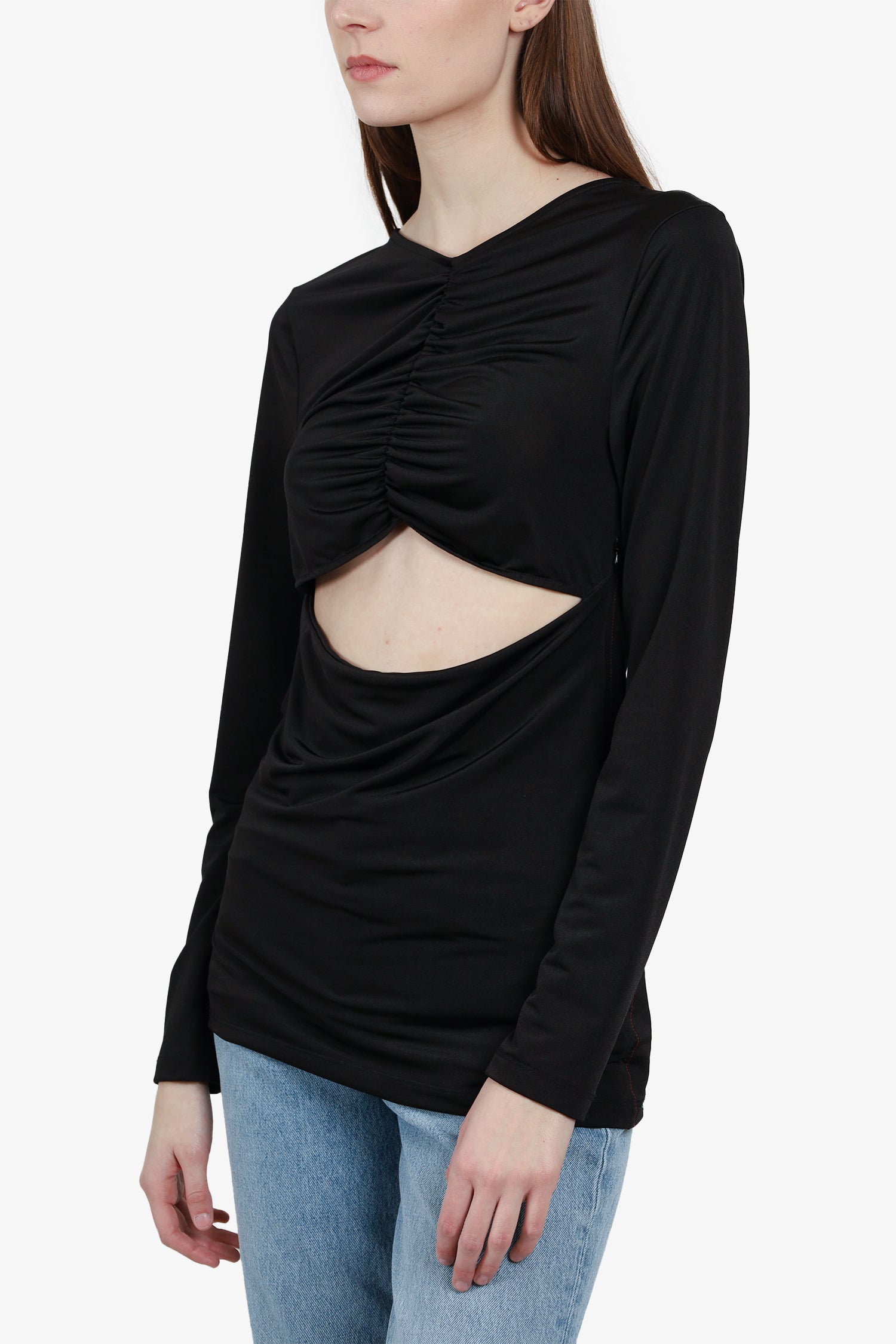 Refresh availabilityVictoria Beckham Open Front Long Sleeve Top. Pull-on. High v-neckline. Front cut-out. Tonal stitching.