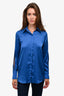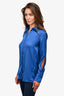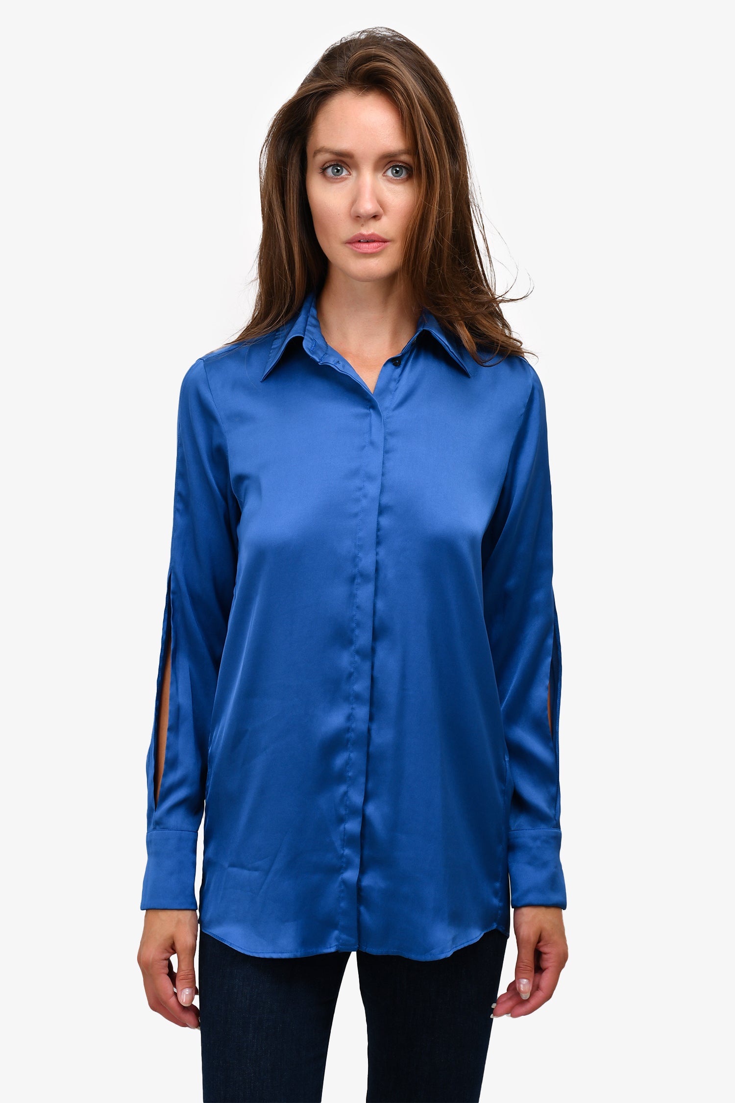 Victoria by Victoria Beckham Blue Satin Button Down Shirt Size 2