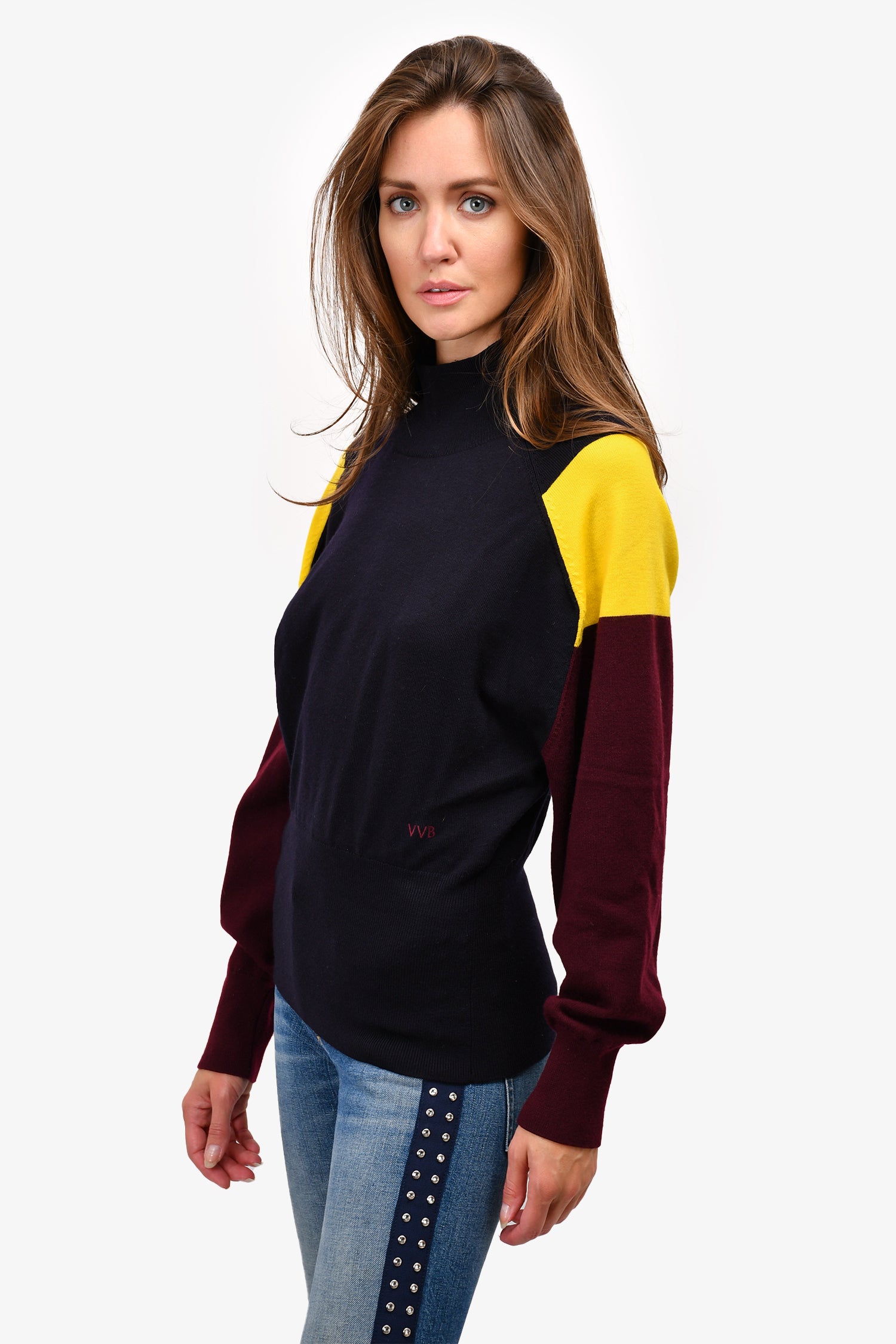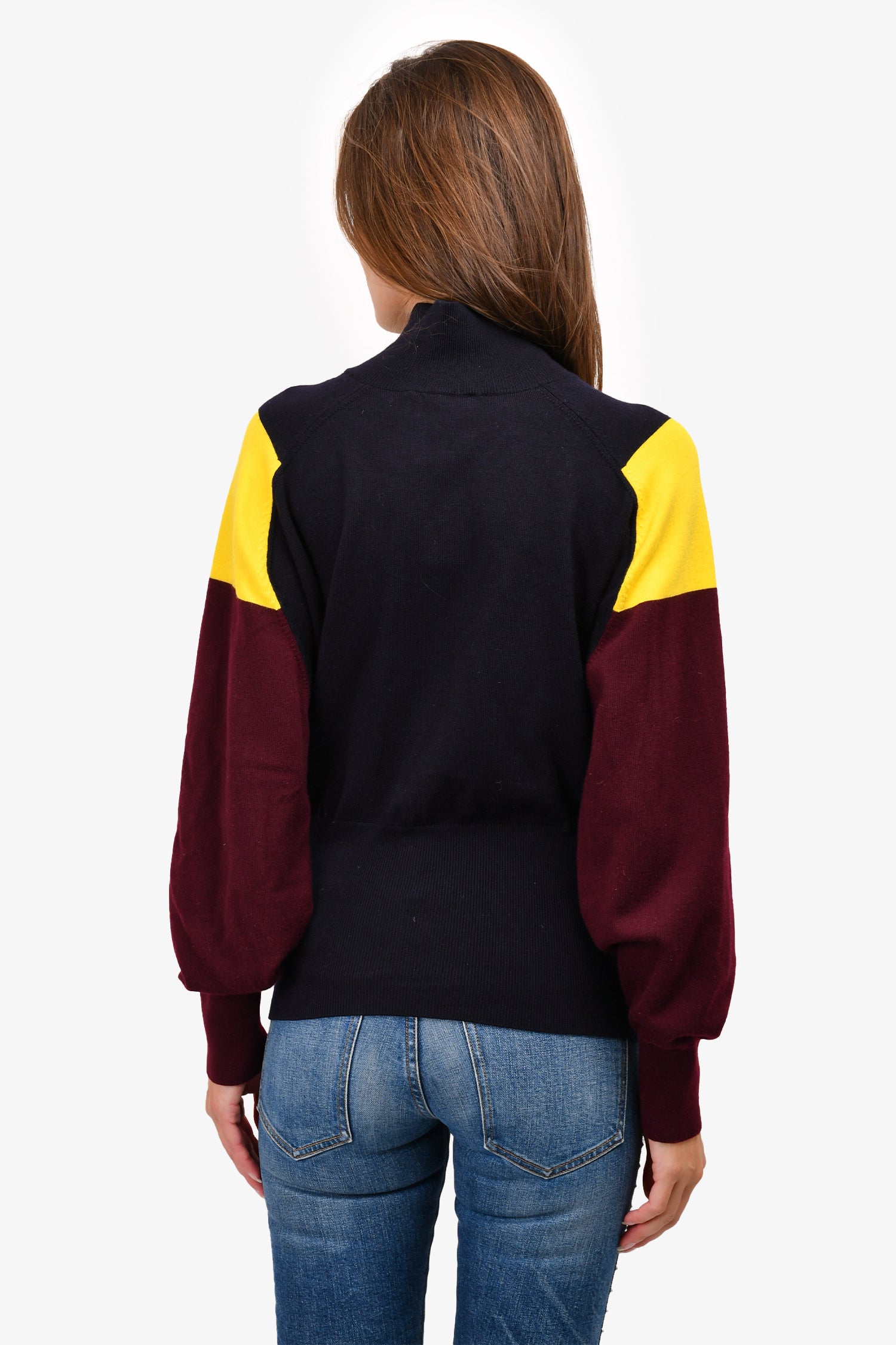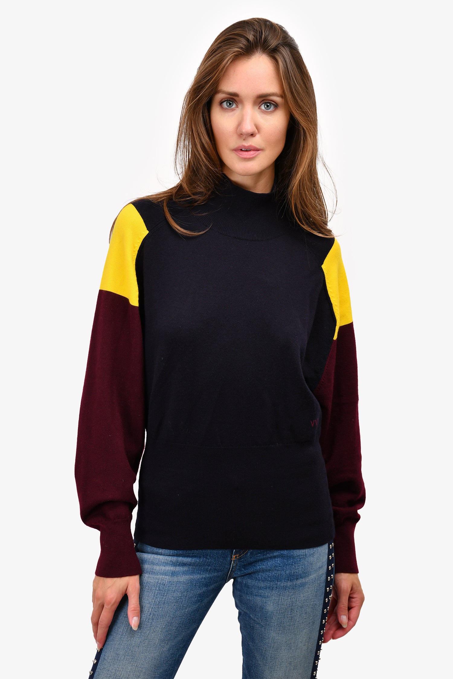 Refresh availabilityVictoria Victoria Beckham Navy/Yellow/Burgundy Mockneck Fitted Sweater.