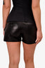 Refresh availabilityVince Black Leather Mini Shorts. Front zip, hook and button closure. Front and rear pockets. Waist belt loops.
