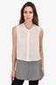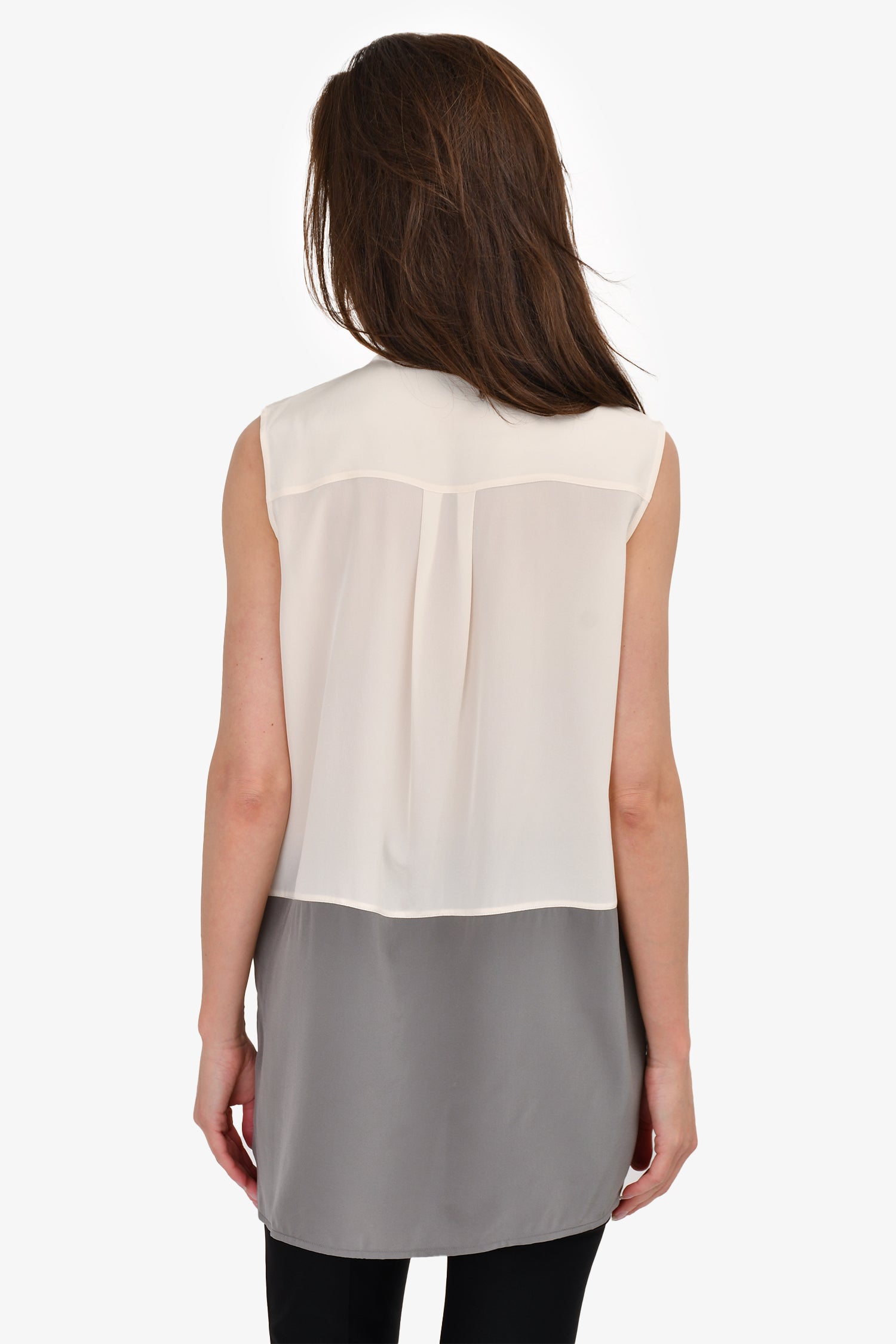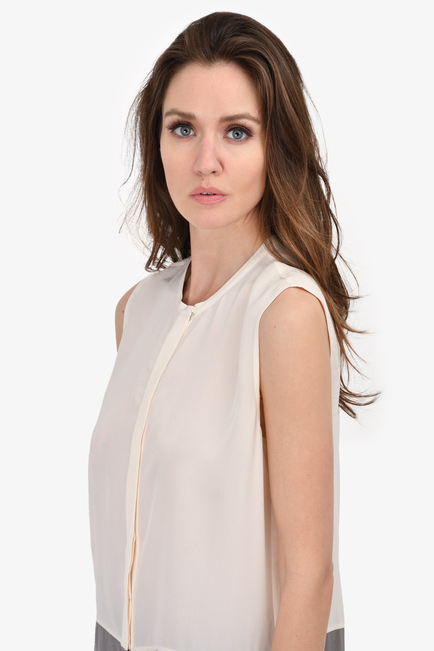 Vince Cream/Grey Silk Sleeveless Dipped Hem Blouse Size L