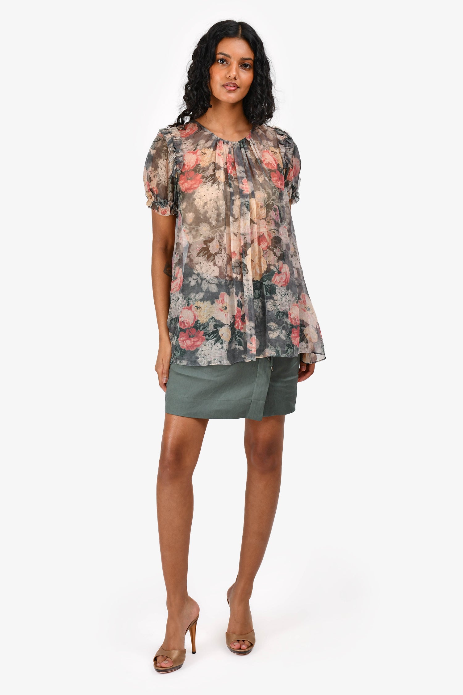 Refresh availabilityVince Green Linen Mini Skirt. Front button-down and waist tie closure. Fold-over waist. 2 front slip pockets. Unlined. Tonal stitching.