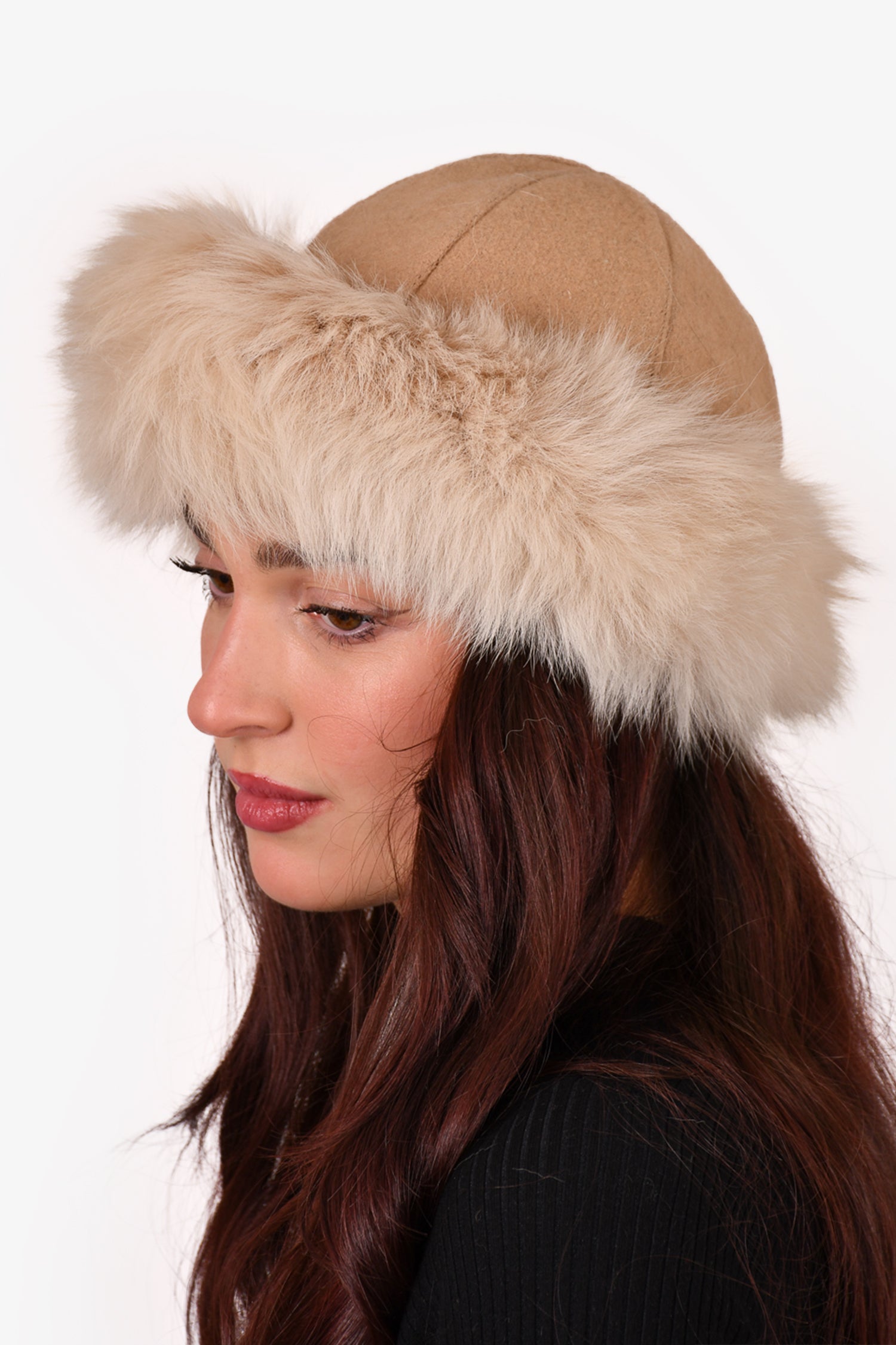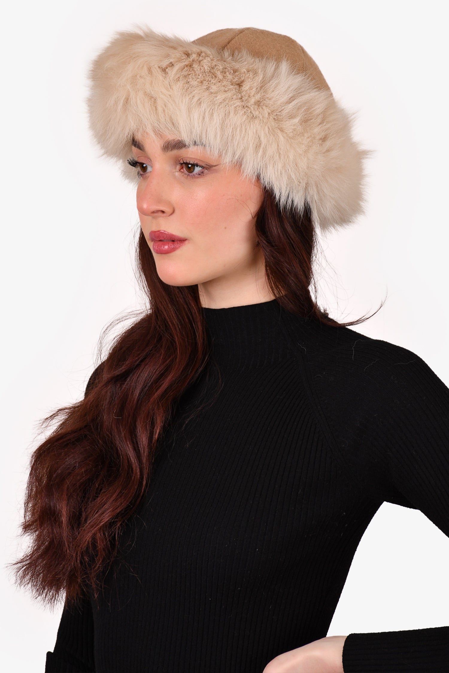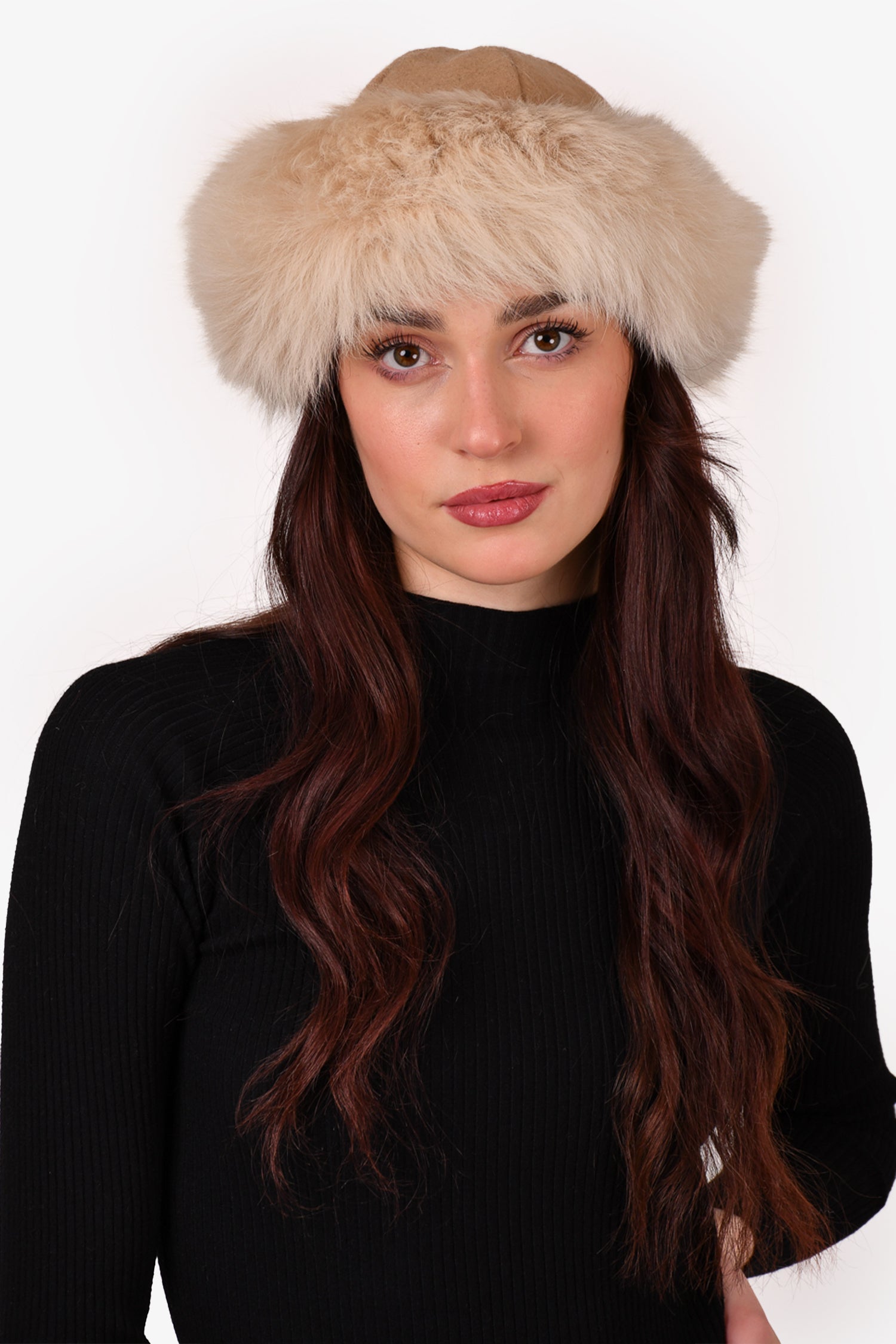 Refresh availabilityVintage Beige Fox Fur/Fabric Hat. Lined. Tonal stitching.