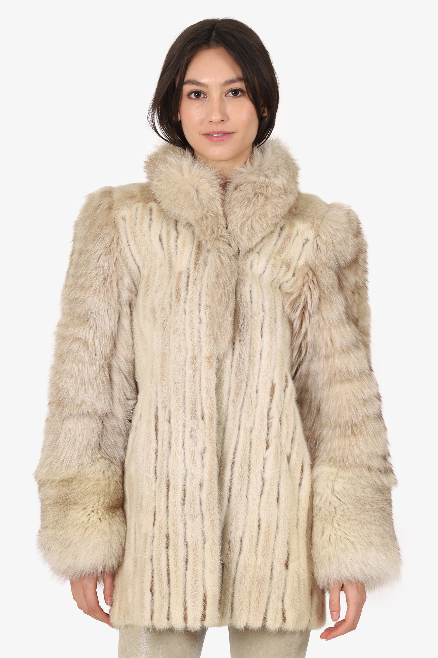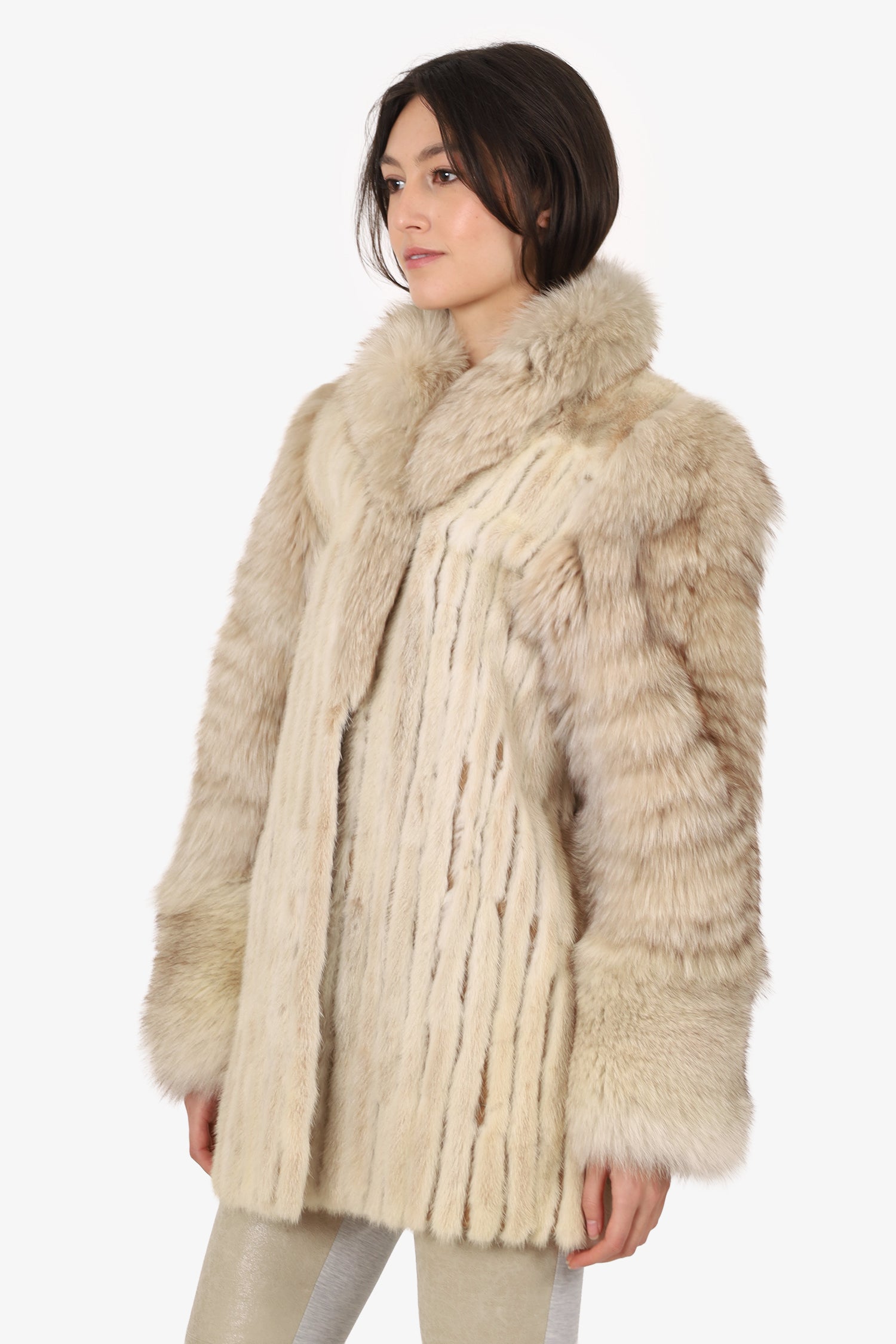 Refresh availabilityVintage Beige Mink & Fox Fur Jacket Women. Pull-on. Collared neckline. Front hook-up closure. Lined interior with single slip pocket. Tonal stitching.