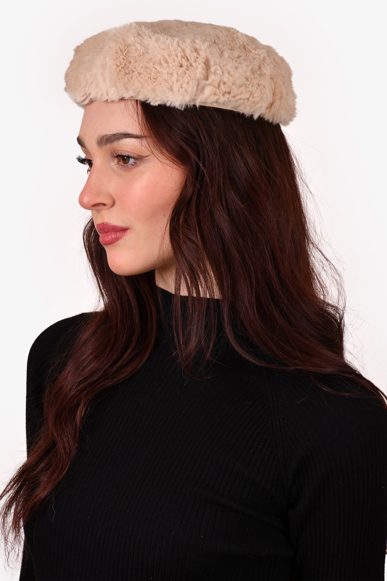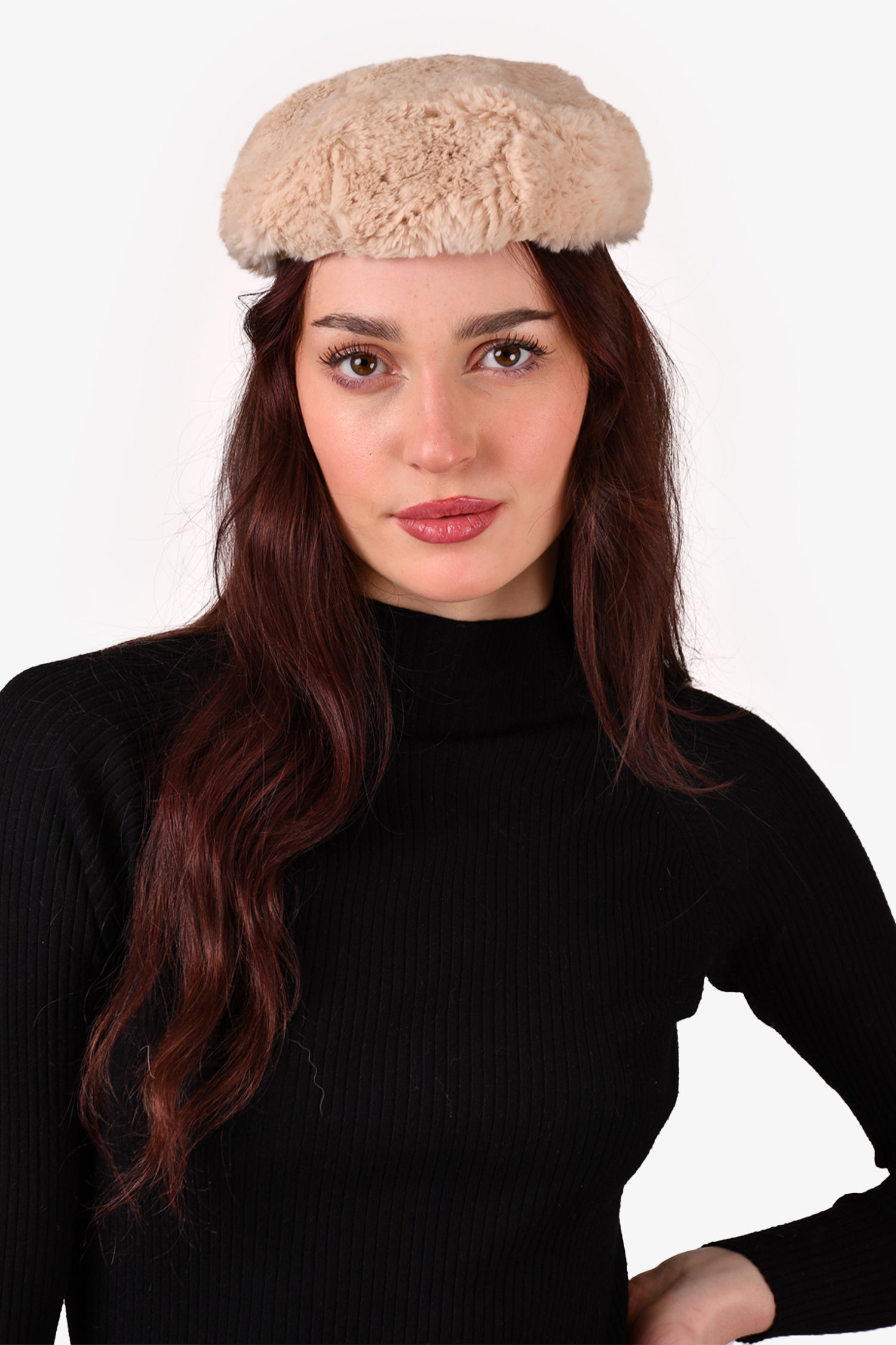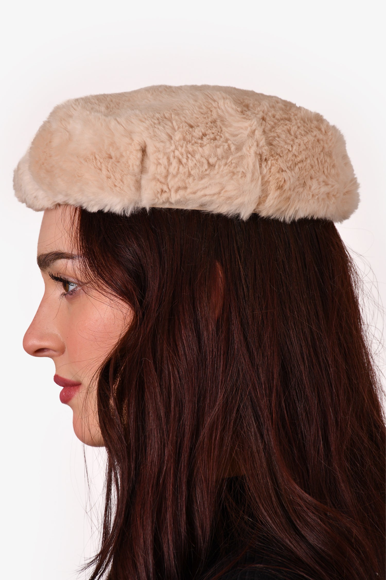 Vintage Beige Rabbit Fur Hat. Lined. Tonal stitching.