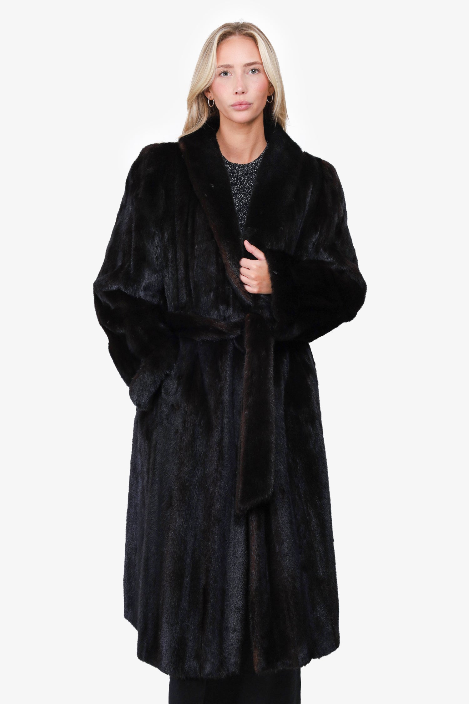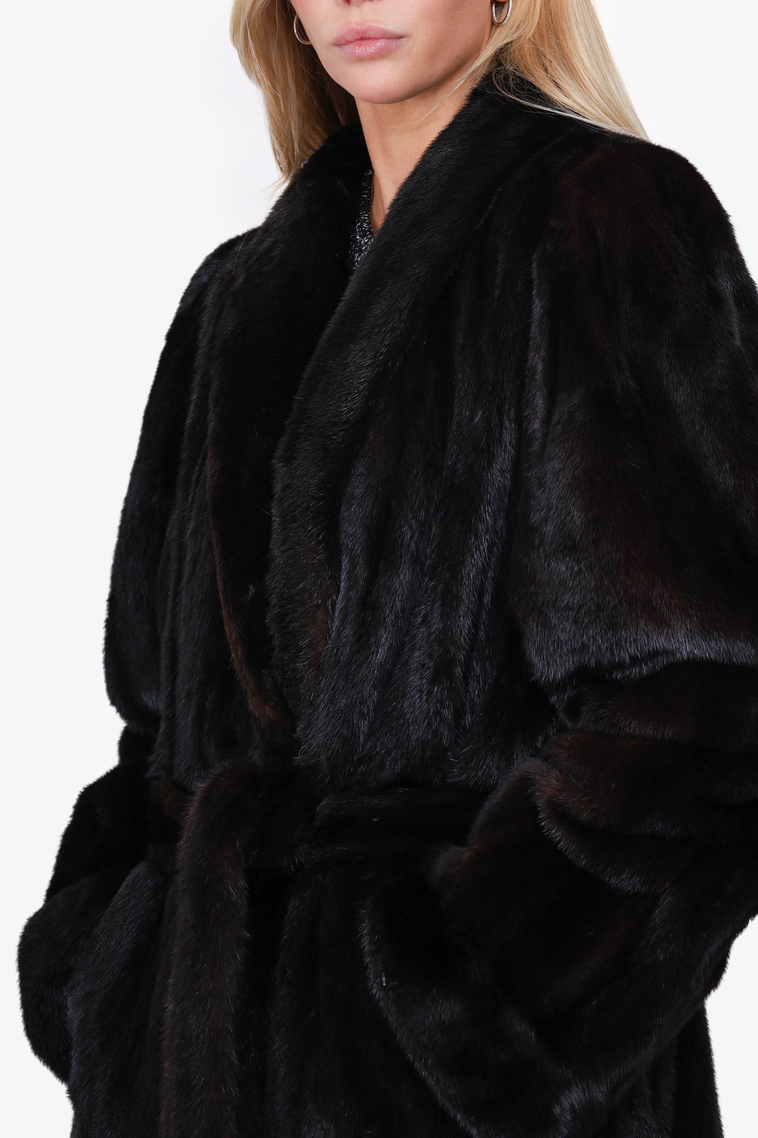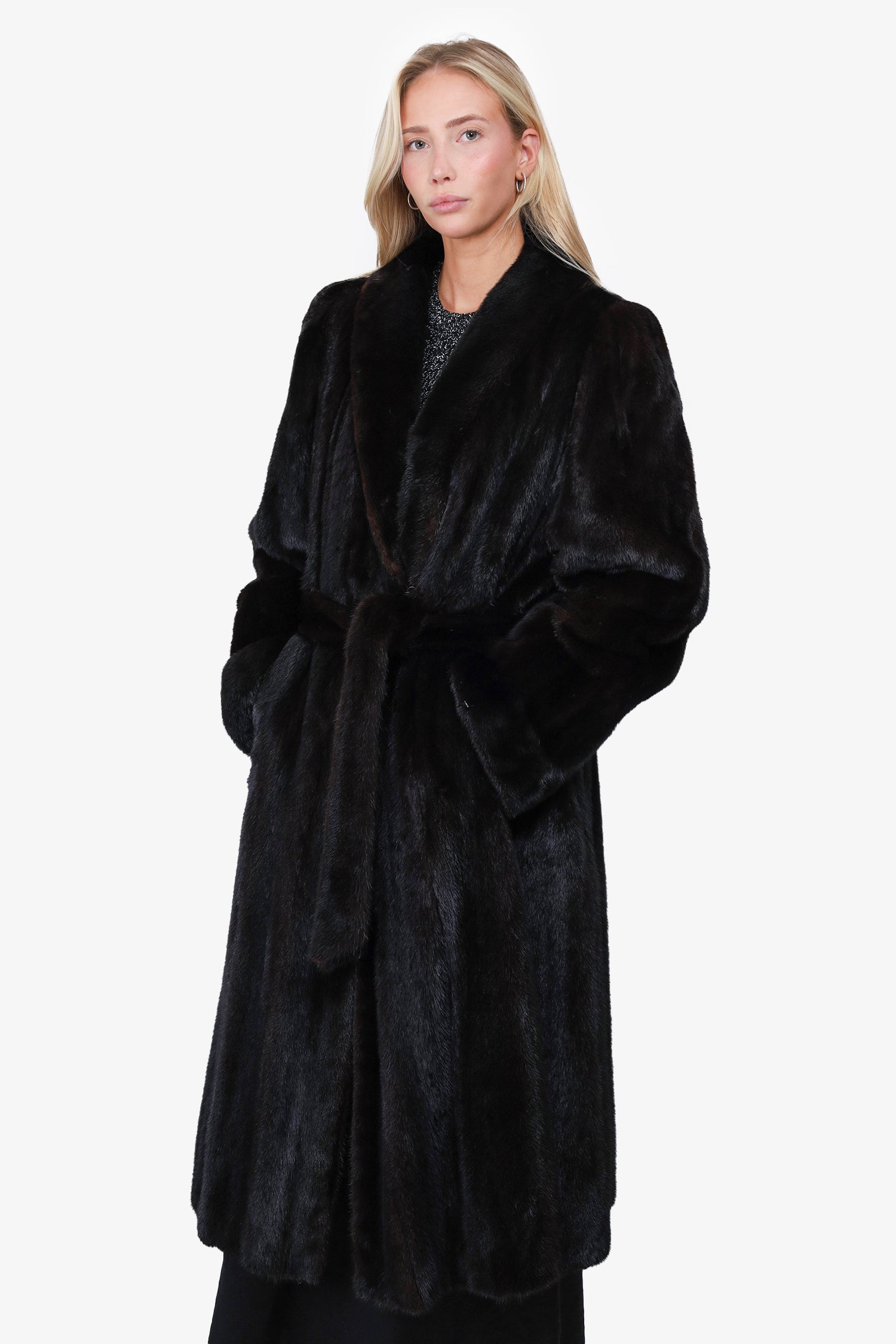 Refresh availabilityVintage Brown Mink Fur Belted Coat Front hook closure. Front slip pockets. Tonal stitching.