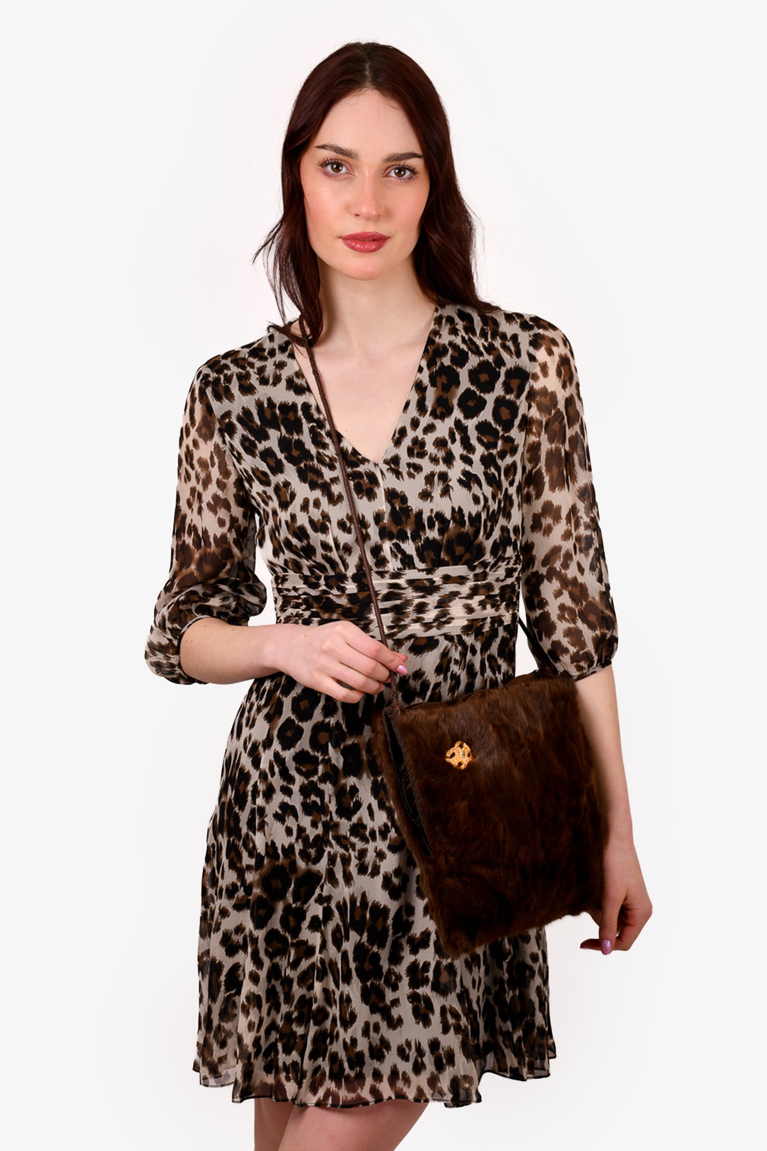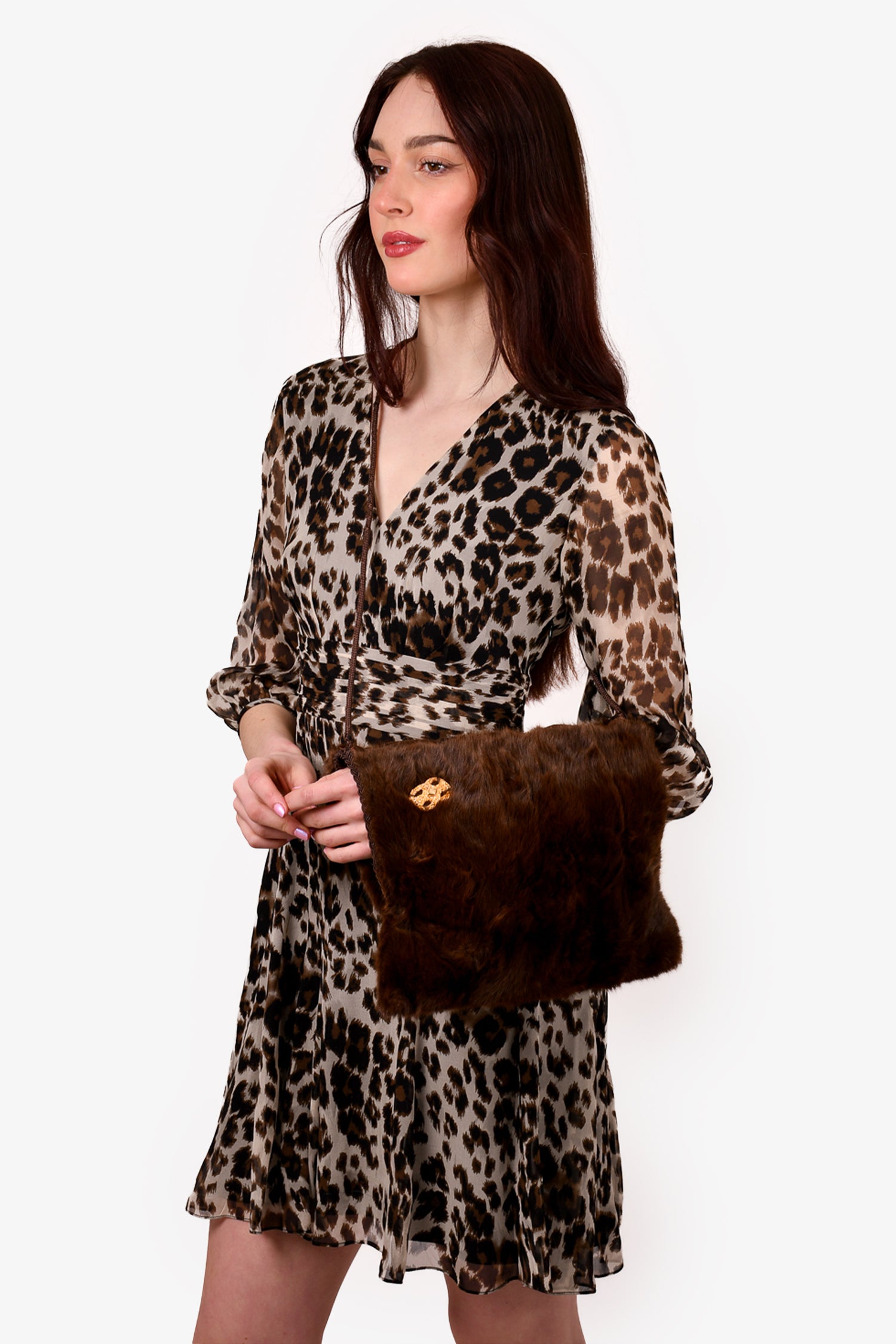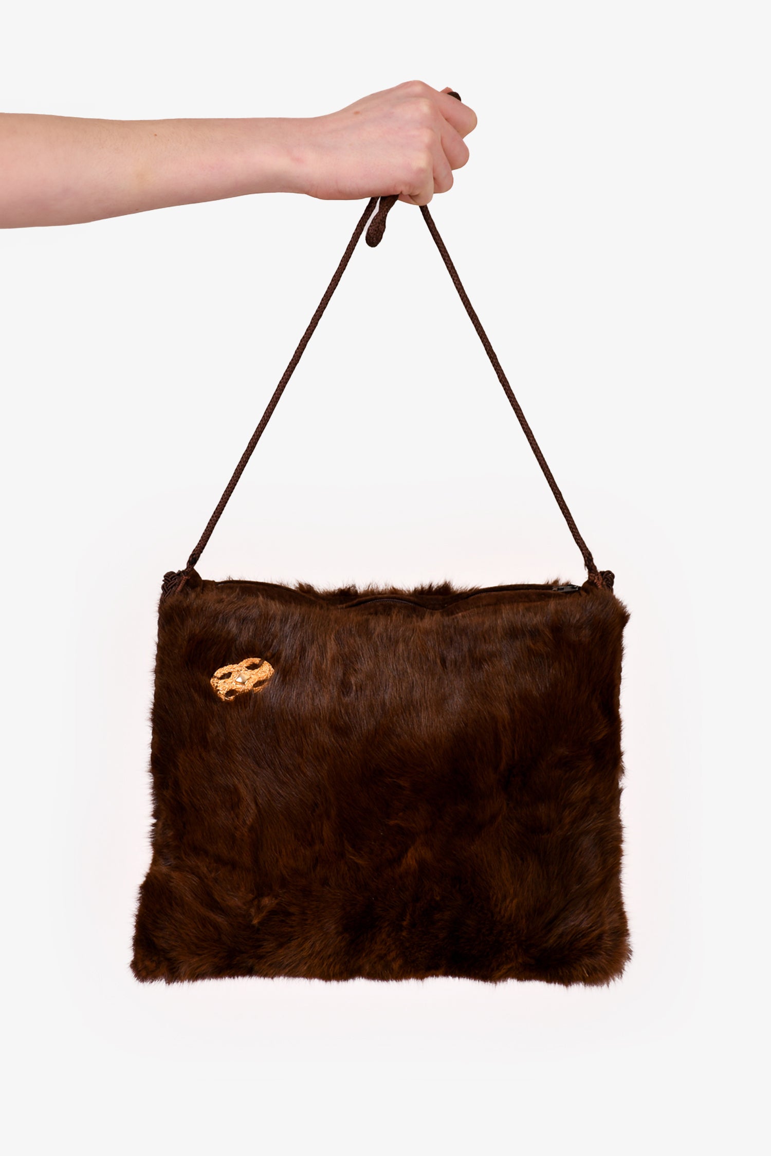 Refresh availabilityVintage Brown Squirrel Fur Hand Muff Crossbody Bag. Top zip closure. Gold-tone detail at the front. Dark brown textile interior lining. Open interior. Lined. Tonal stitching.