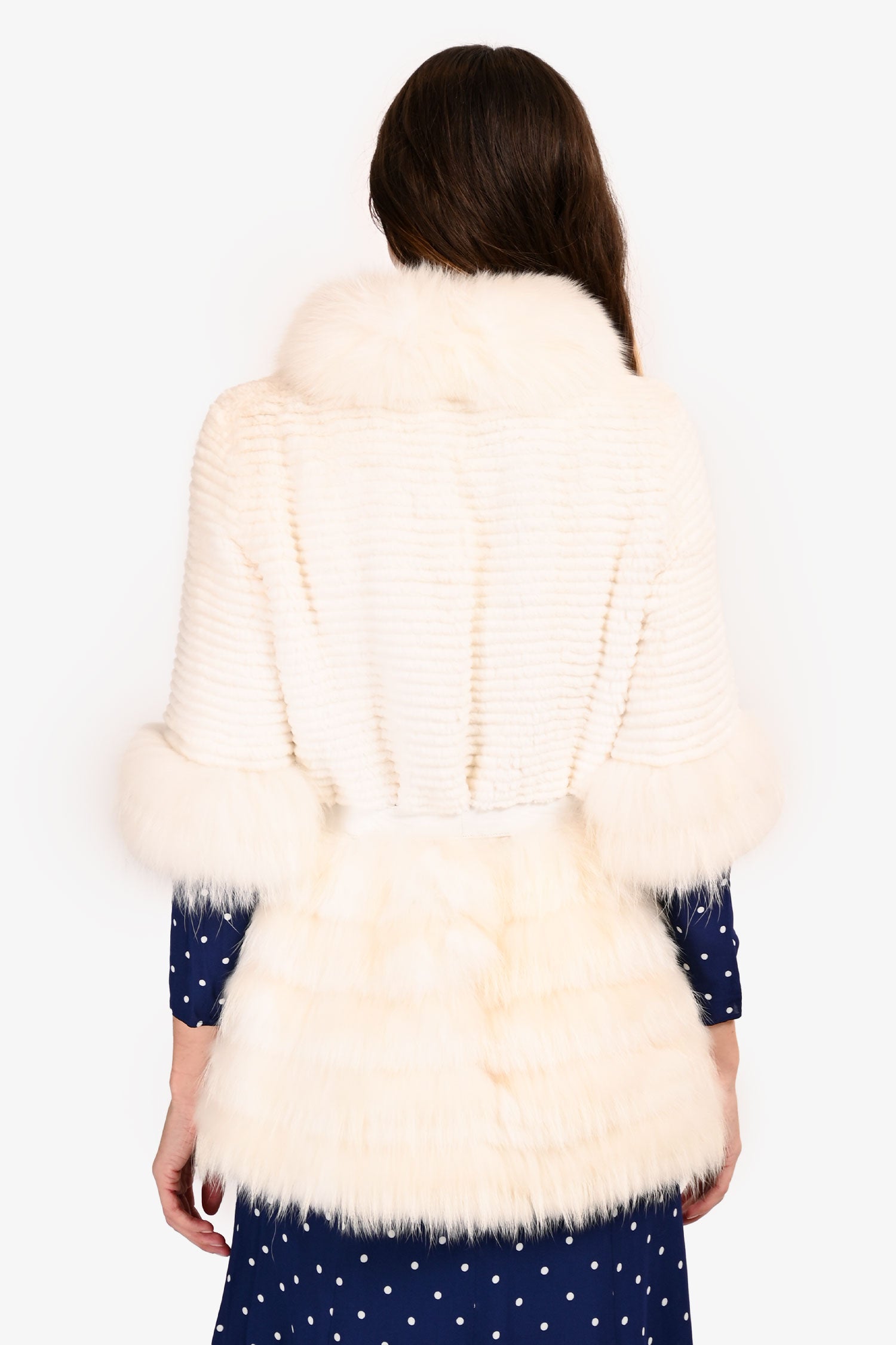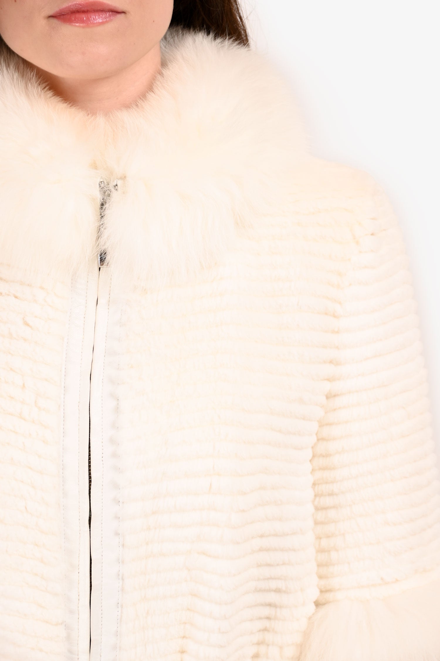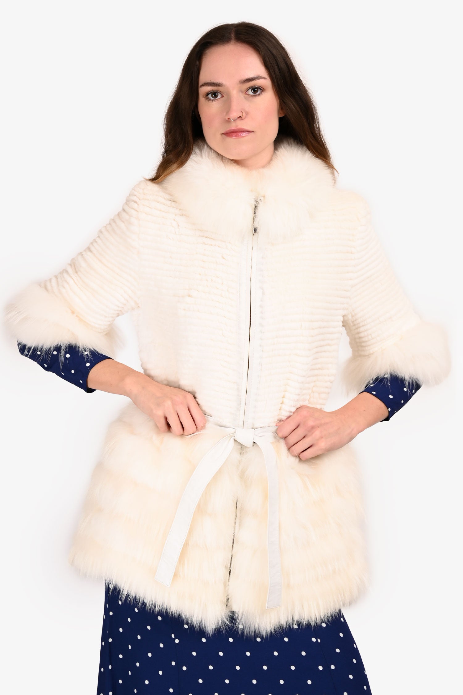 Refresh availabilityVintage White Raccoon Fur Zip-Up Coat. Pull-on. Collared neckline. Front zipper closure. Removable waistband tie. 2 exterior slip pockets. Fully lined. Silver-tone hardware. Tonal stitching.