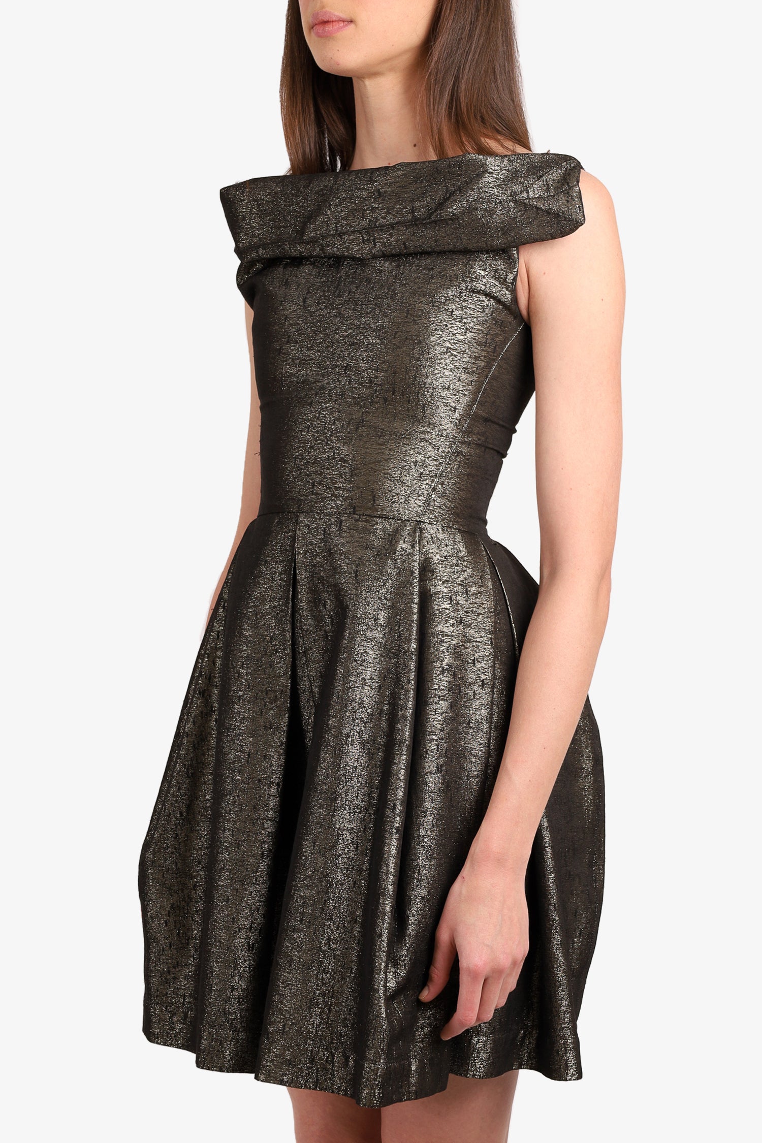 Refresh availabilityVivienne Westwood Black/Gold Metallic Anglomania Halton Draped Jacquard Dress. Sleeveless. High neckline. Rear zip closure. Tonal stitching.