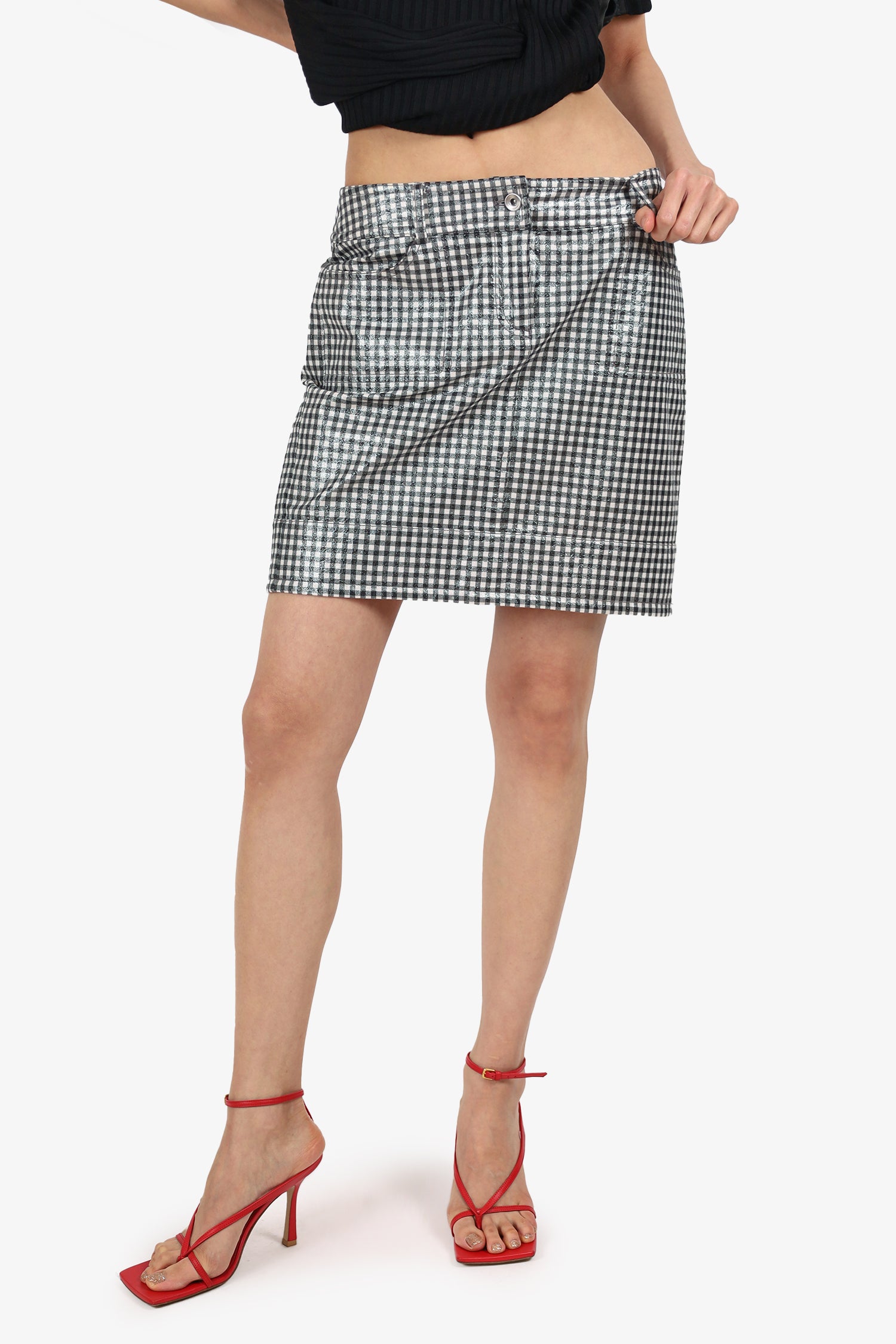 W by Worth Black/White Gingham Shimmer Skirt Size 2