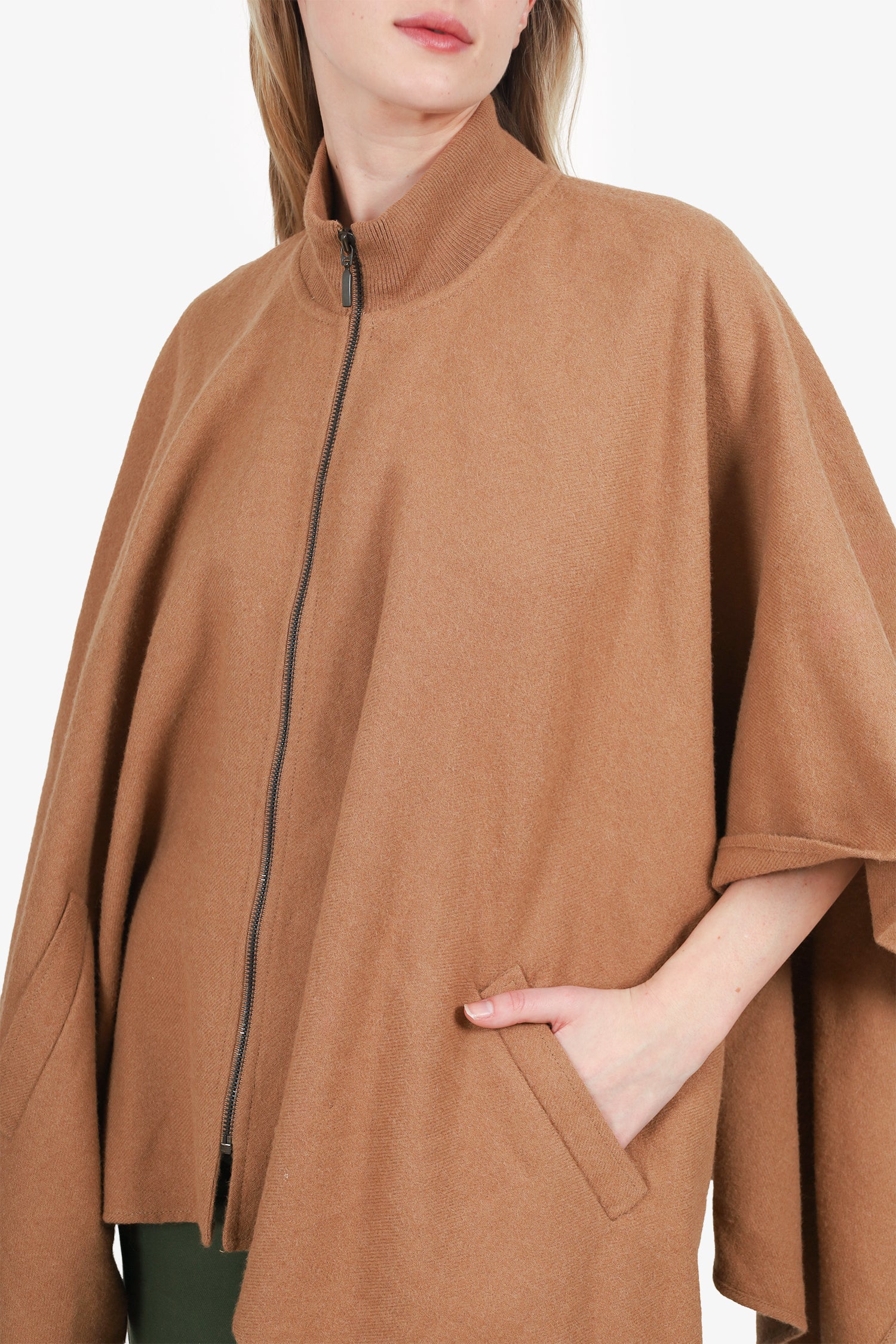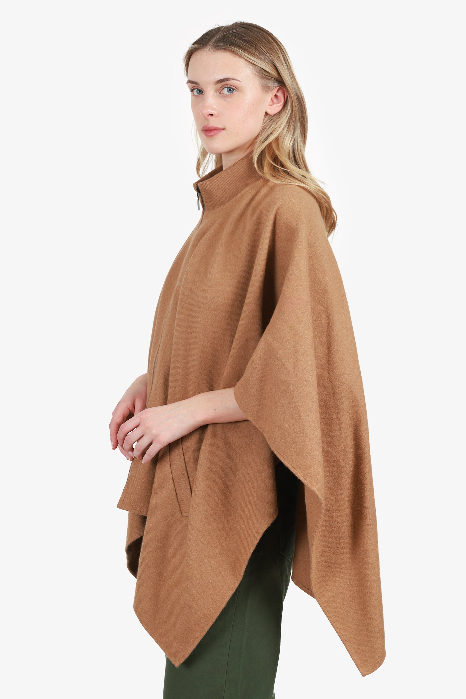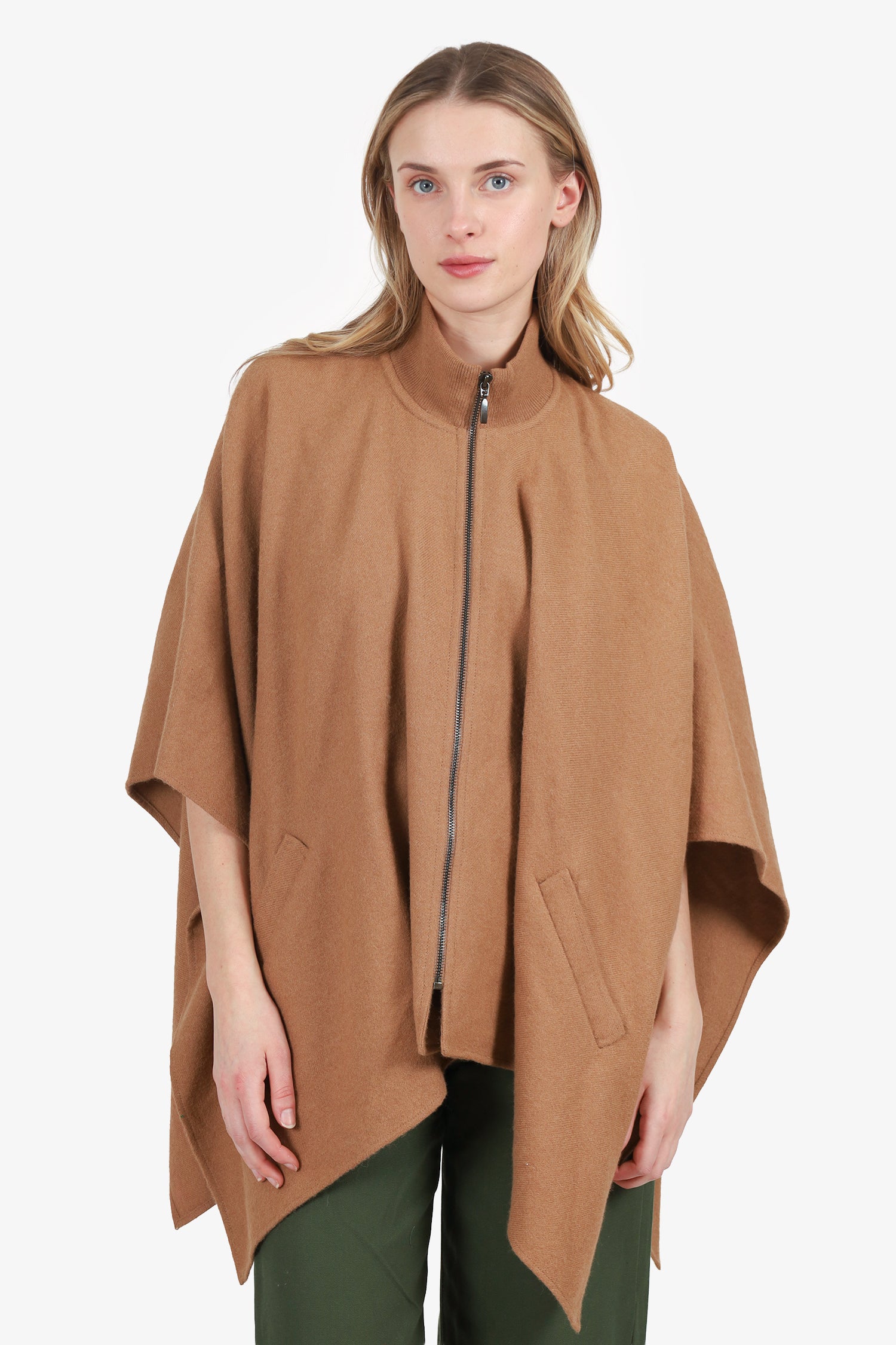 Refresh availabilityWeekend Max Mara Brown Alpaca Zip Up Poncho. High neckline. Front zip-up closure. 2 exterior side slip pockets. Brass-tone hardware. Tonal stitching.