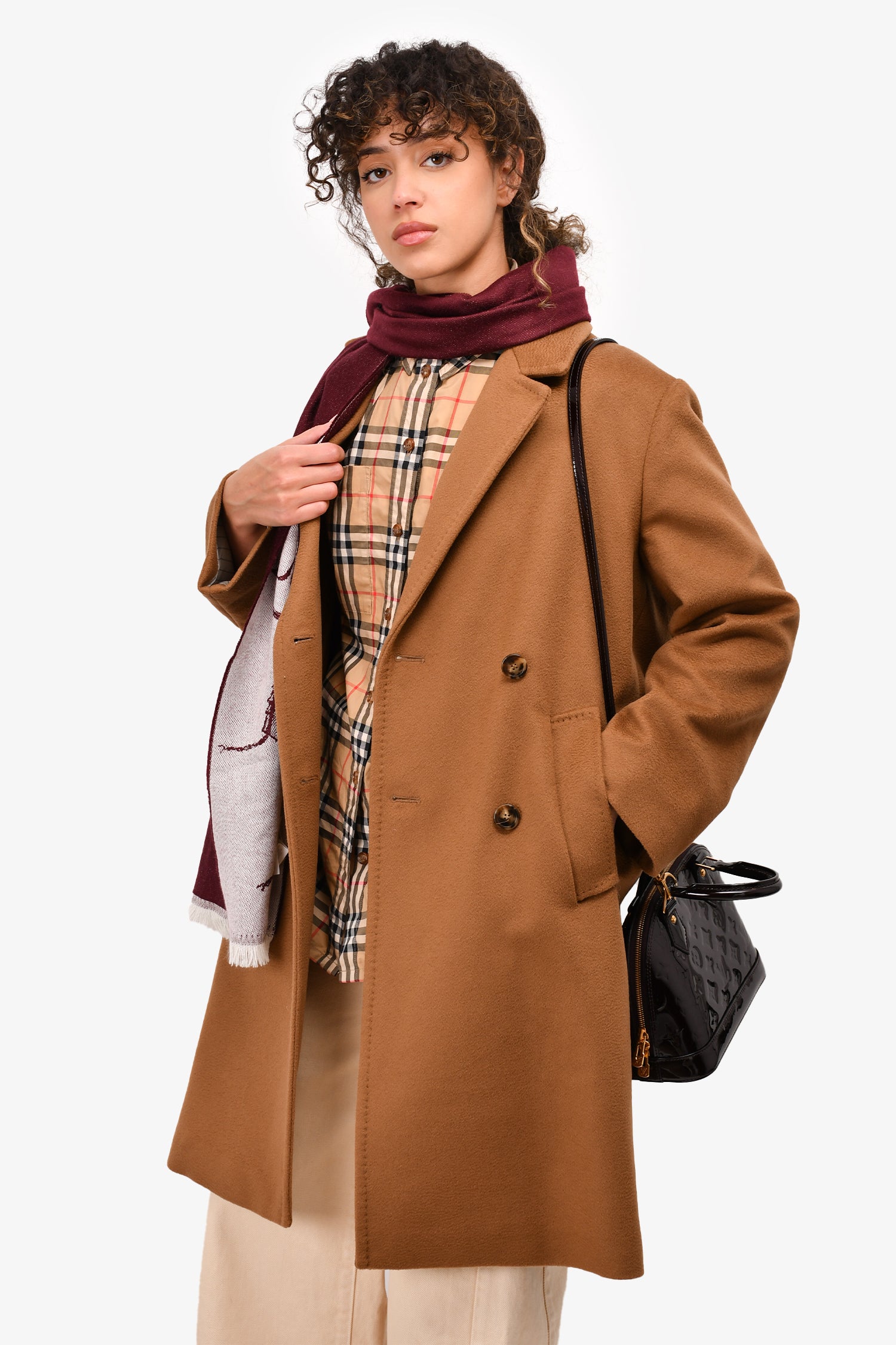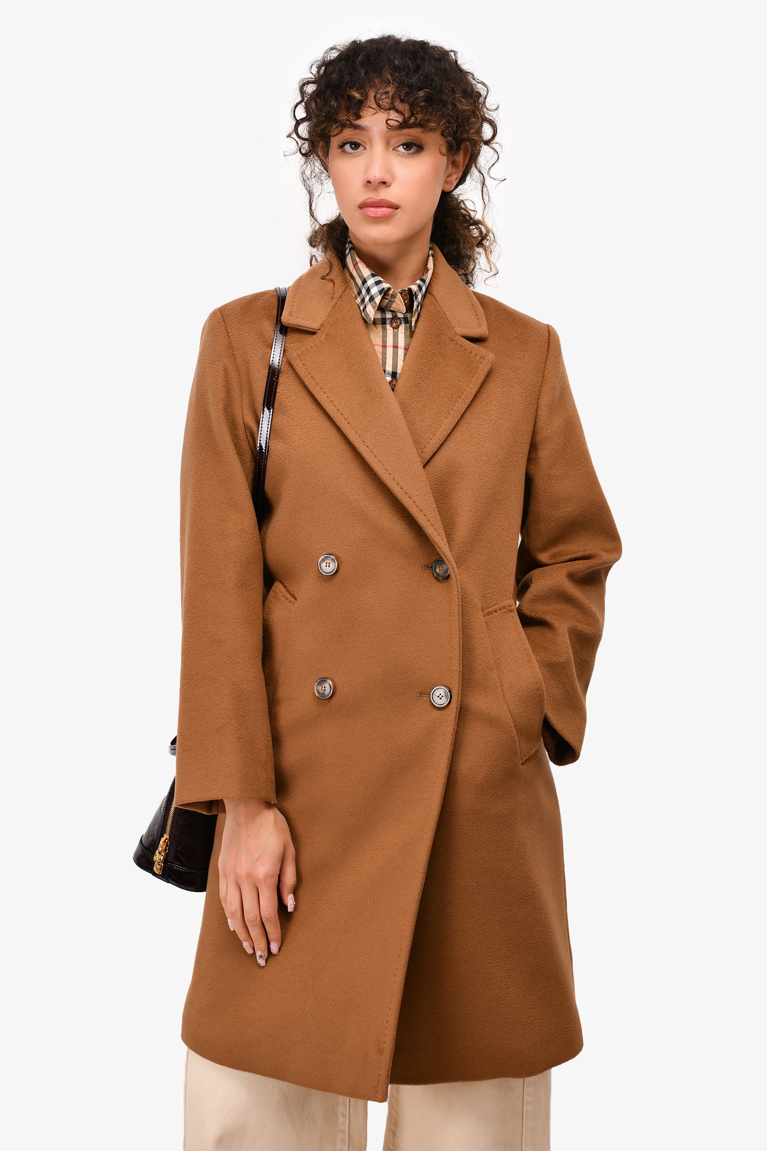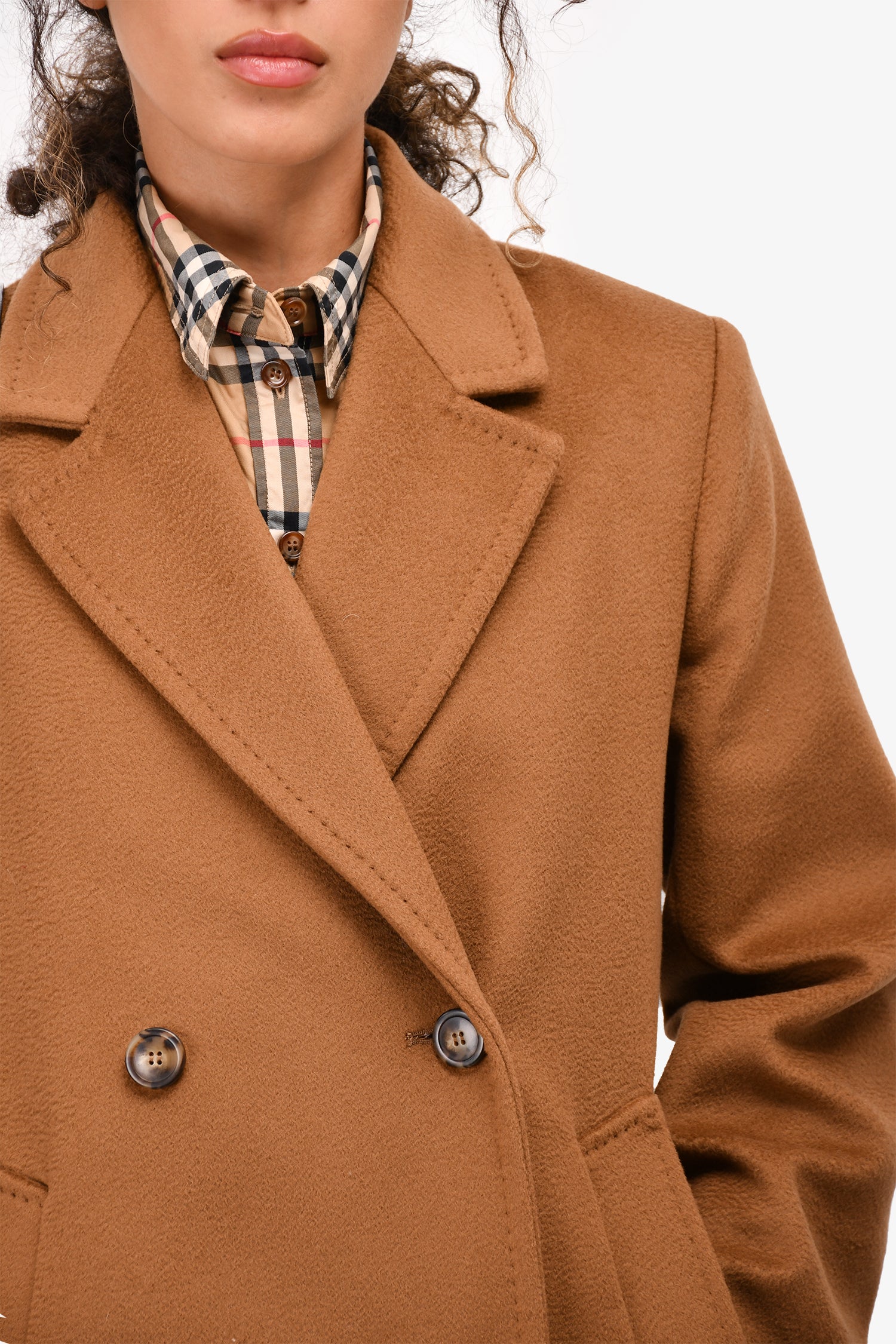 Refresh availabilityWeekend Max Mara Brown Virgin Wool Double Breasted Coat. 2 hand pockets. Lined. Tonal stitching.