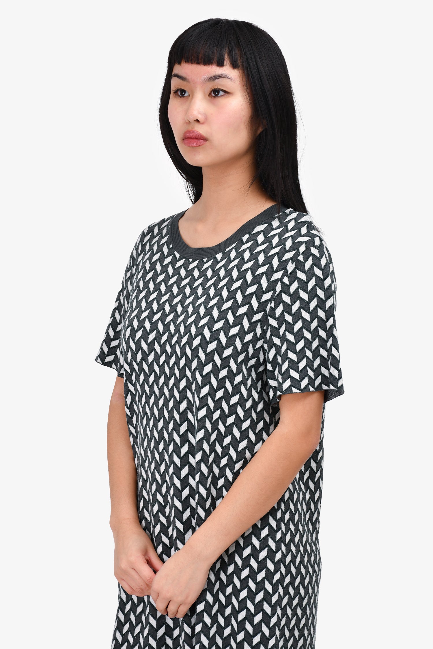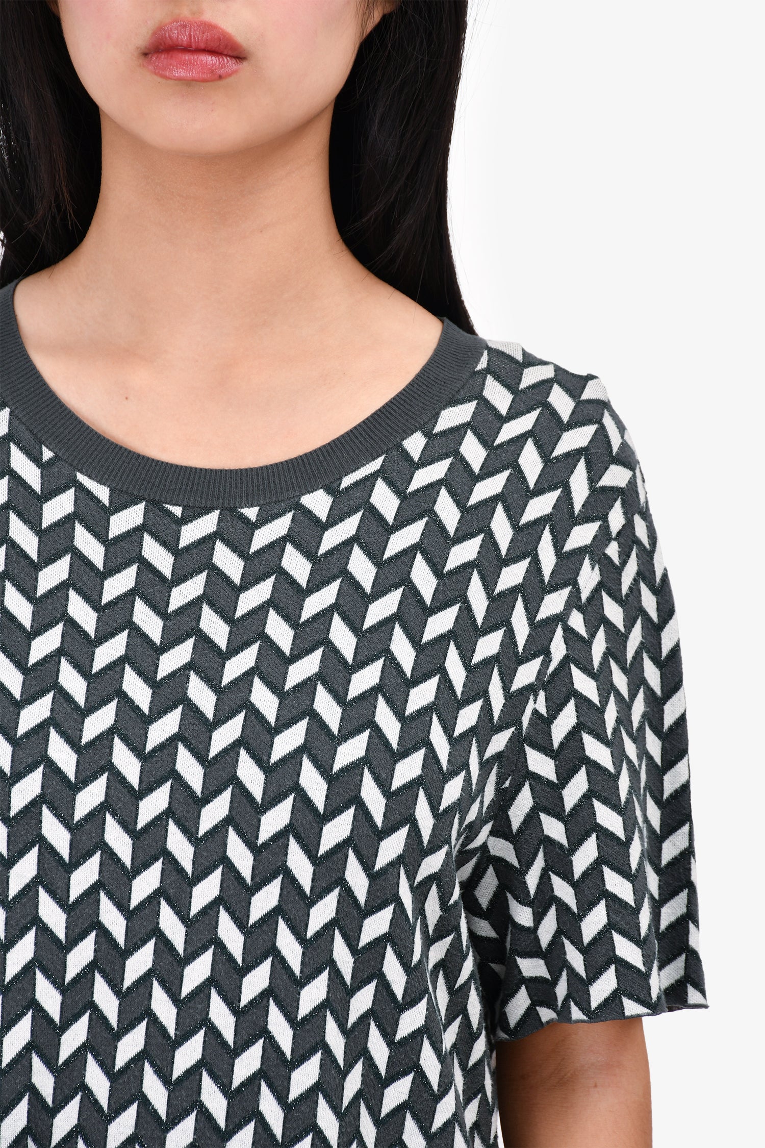 Refresh availabilityWeekend Max Mara Grey Herringbone Pattern Dress. Round neck. Pull-on. Ribbed neck. Tonal stitching.