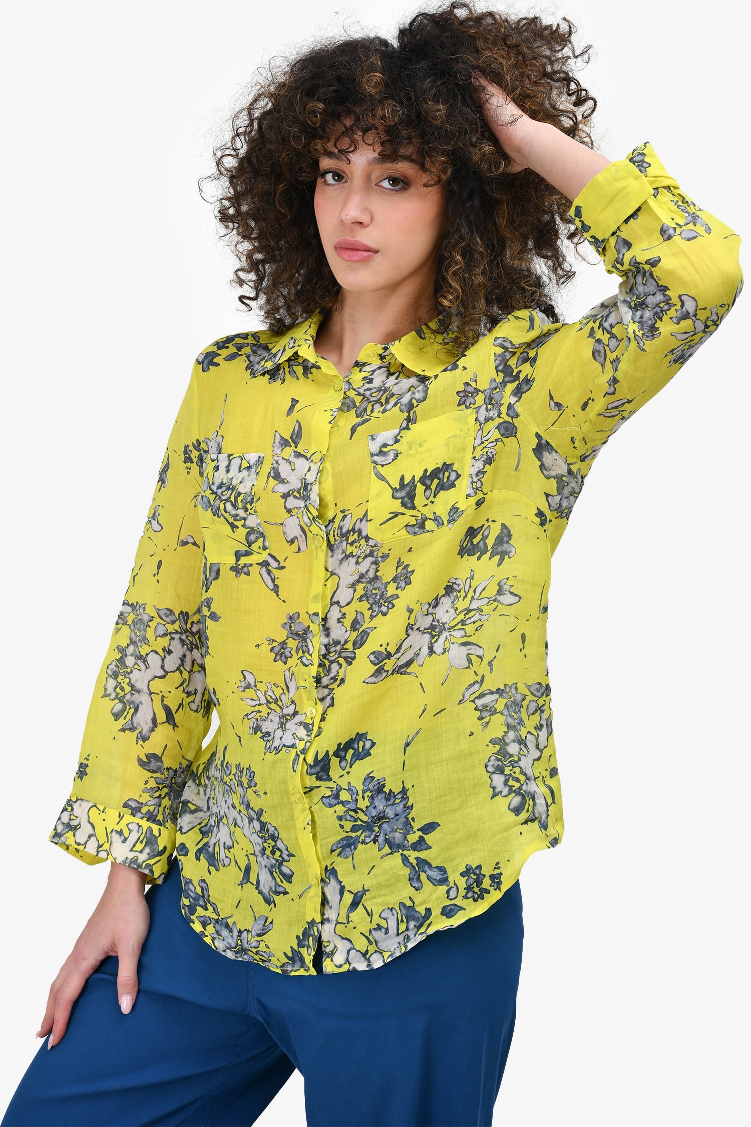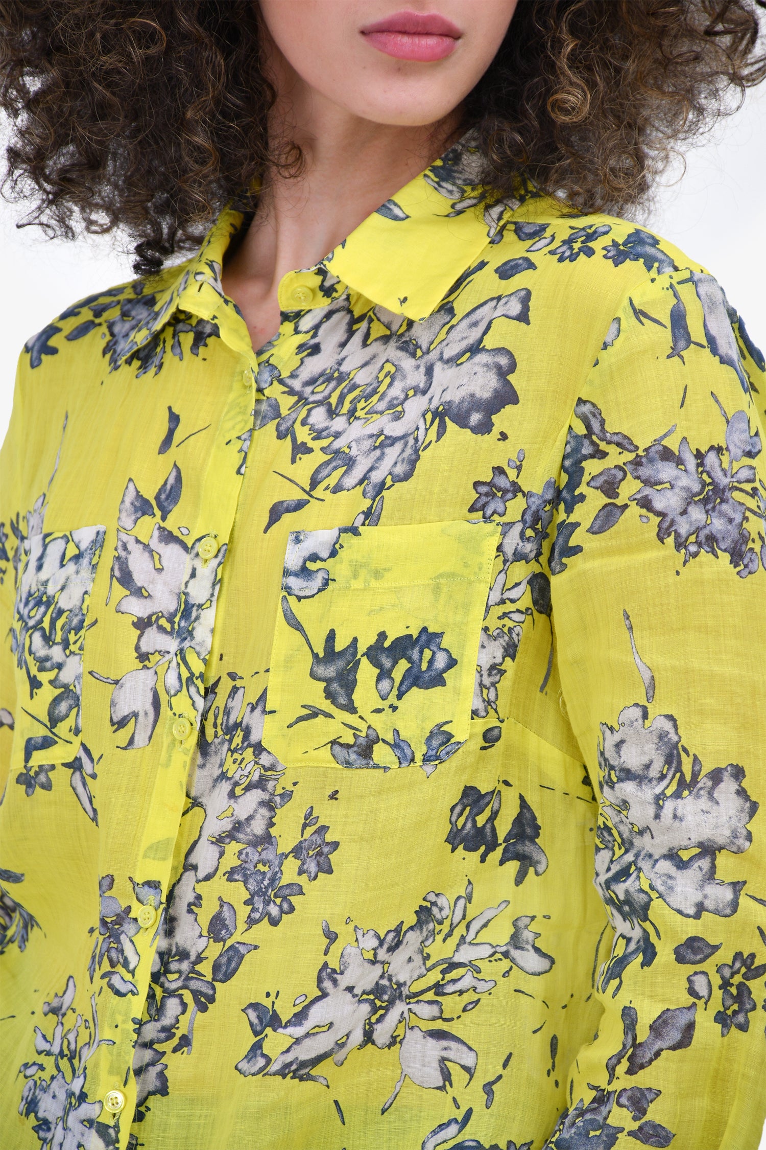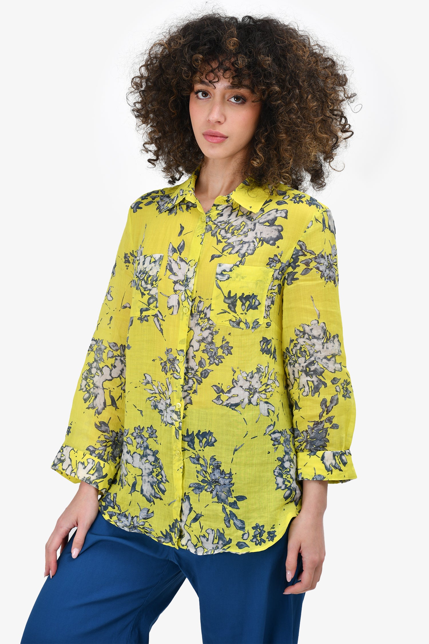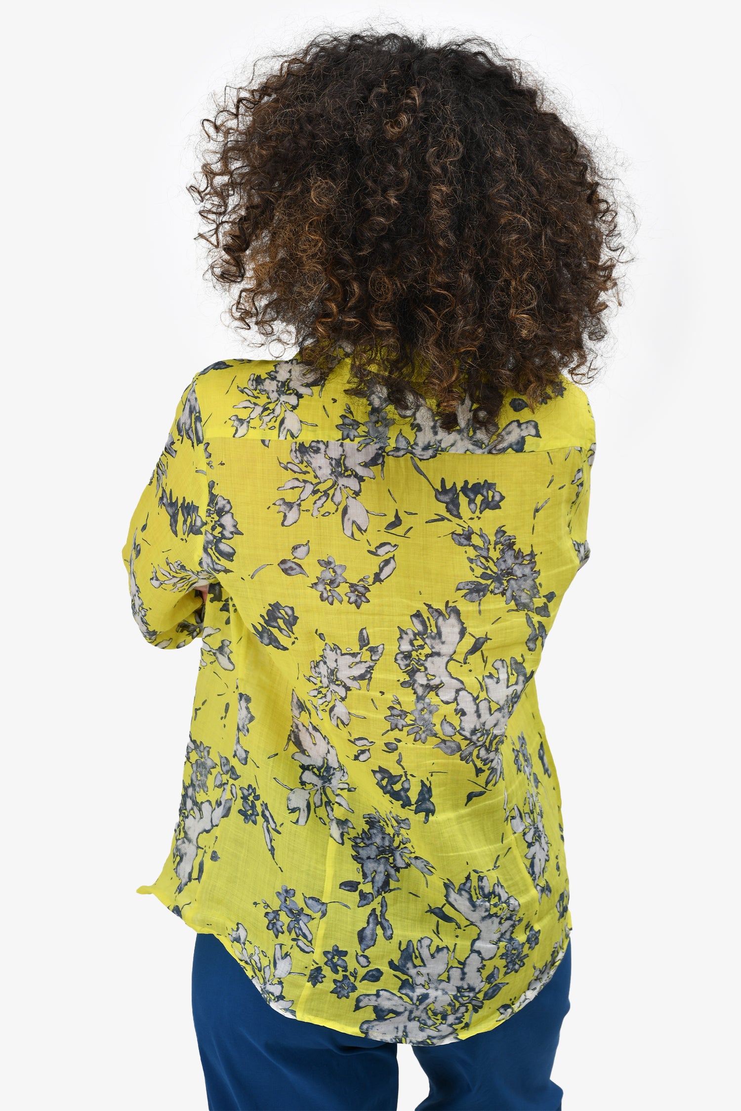 Refresh availabilityWeekend Max Mara Neon Yellow Floral Button Down. Wide sleeves with button closure. Tonal stitching.
