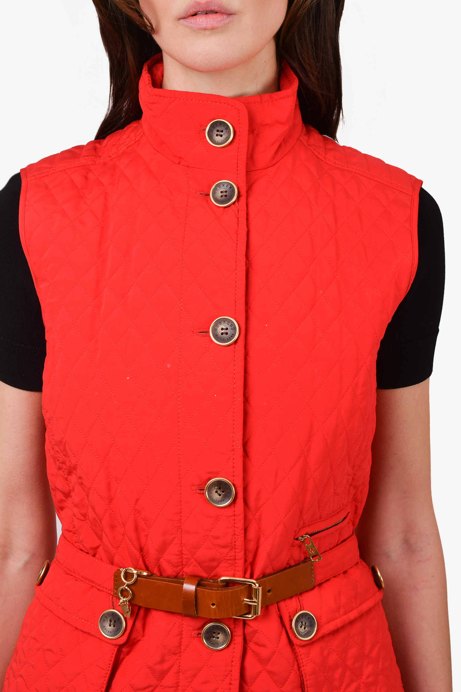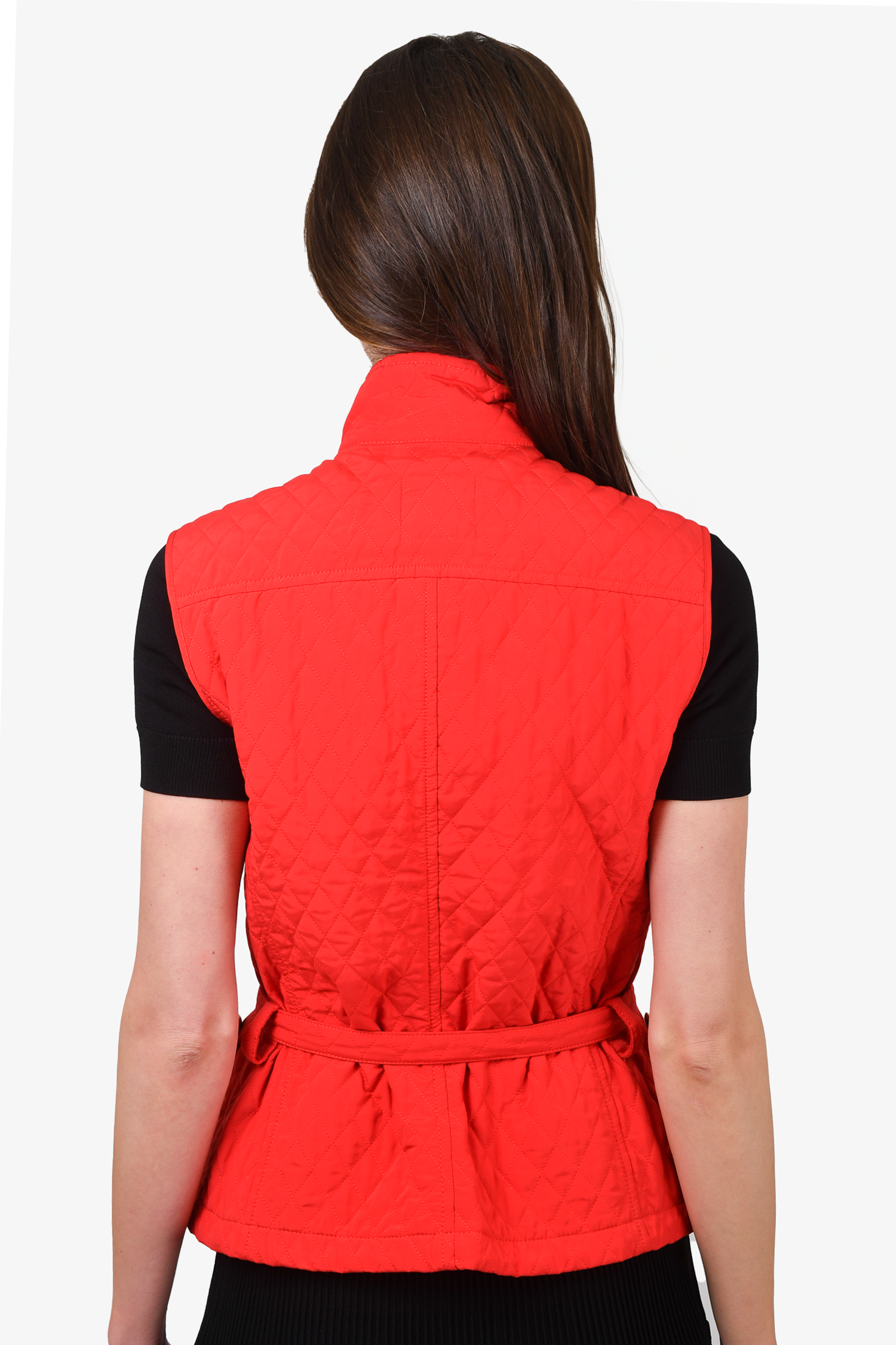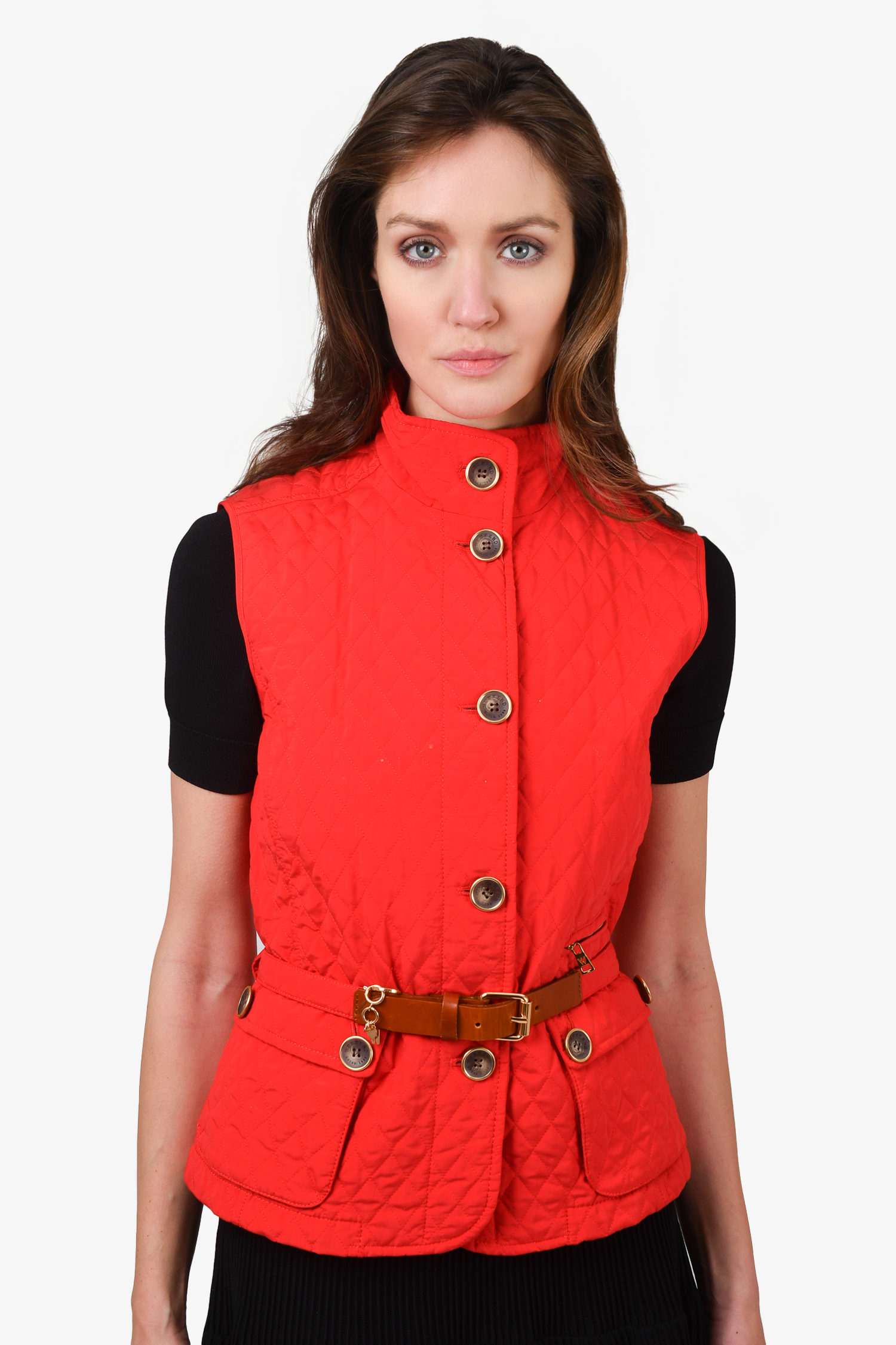 Refresh availabilityWeekend Max Mara Red Quilted Vest Jacket with Belt. Front button-up closure. Front pockets with button closure. Lined. Tonal stitching.