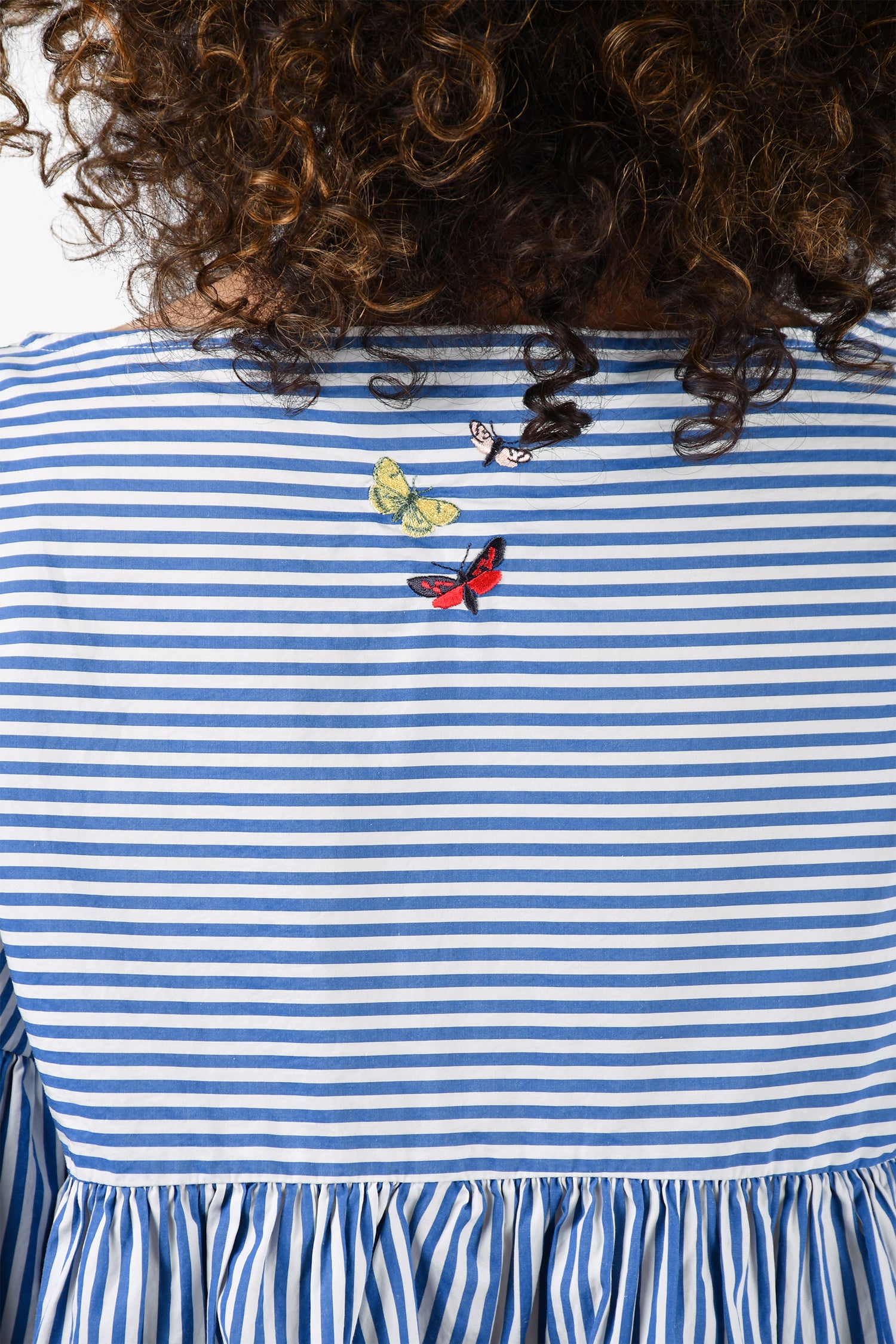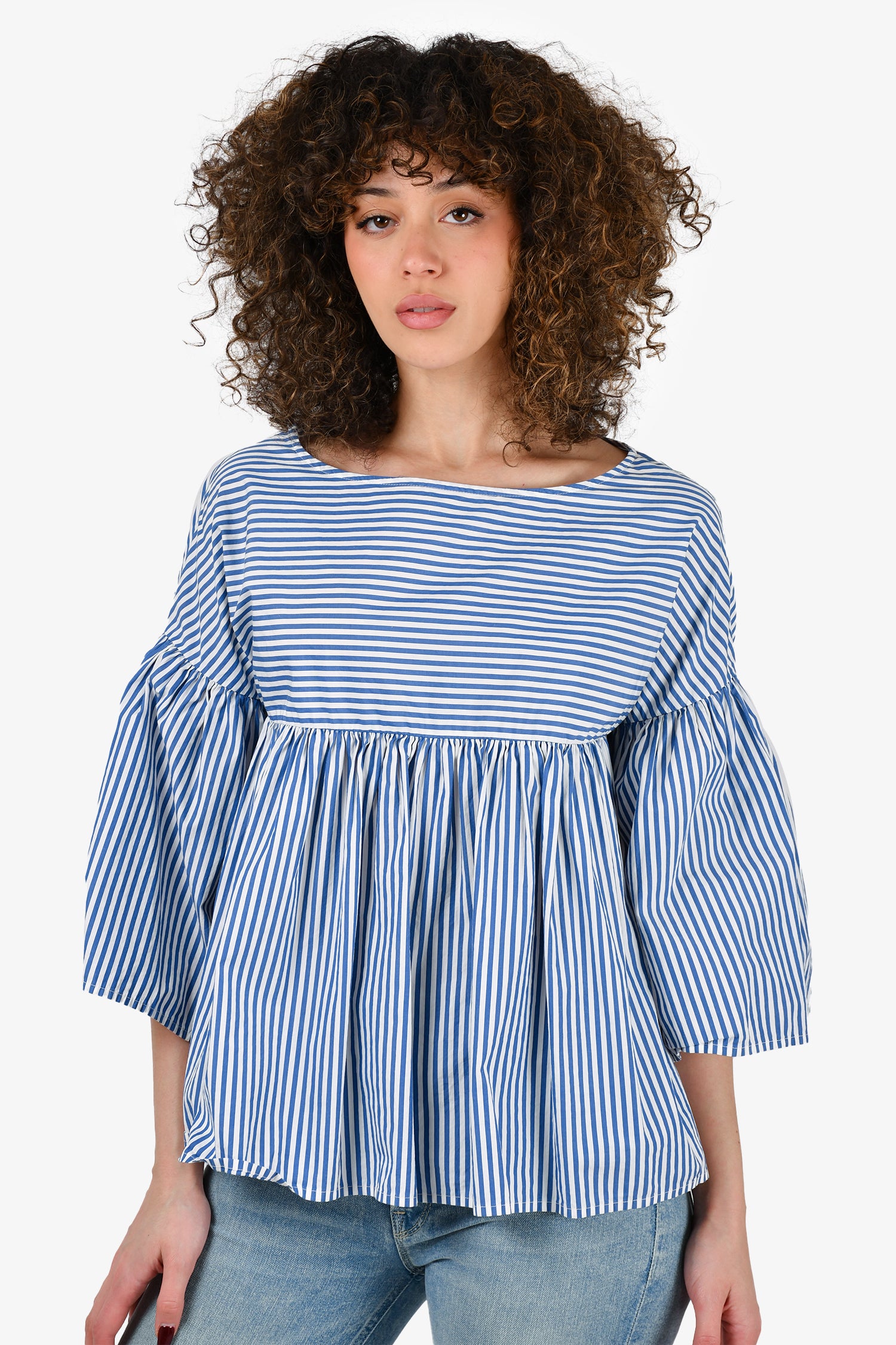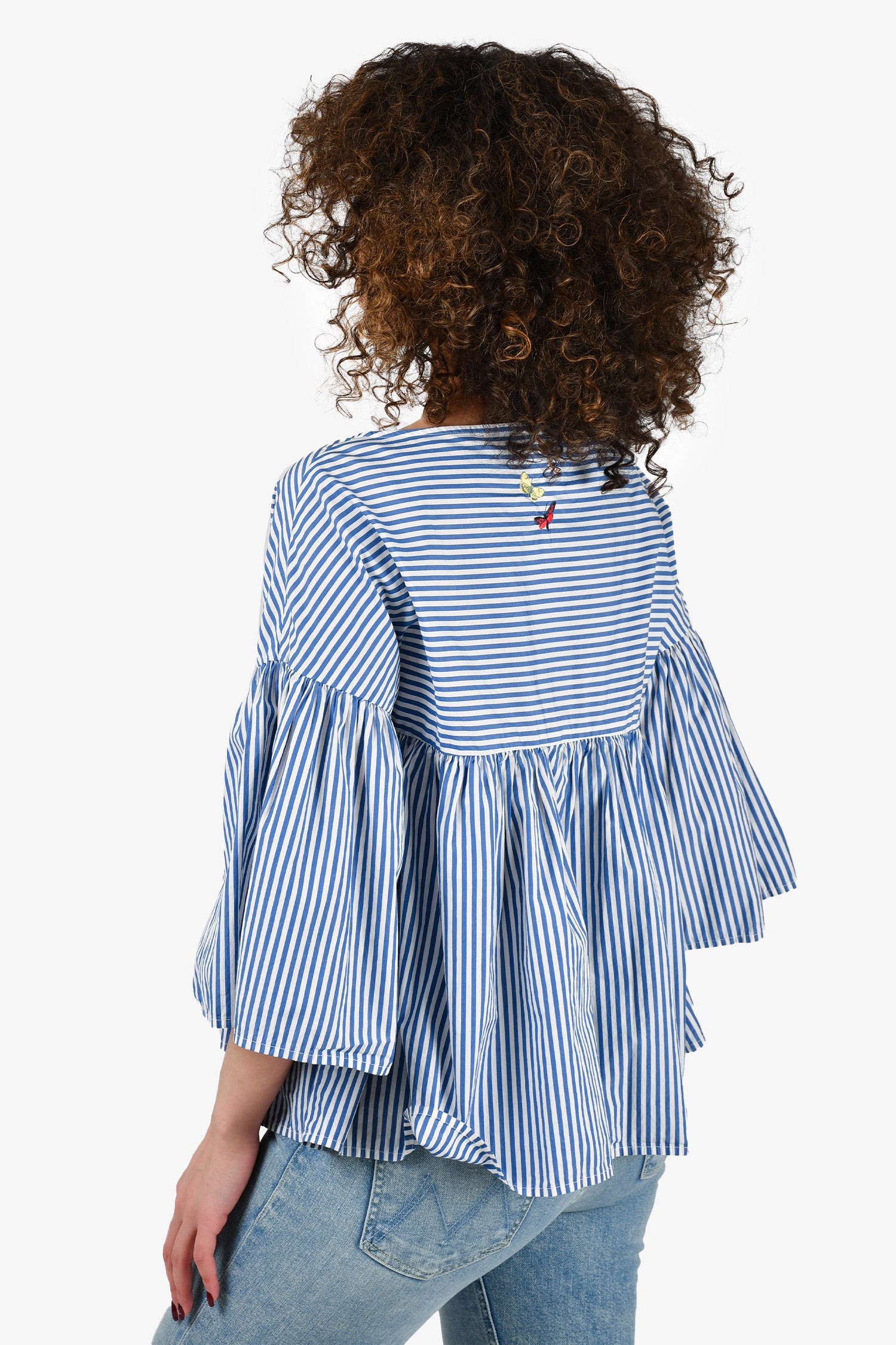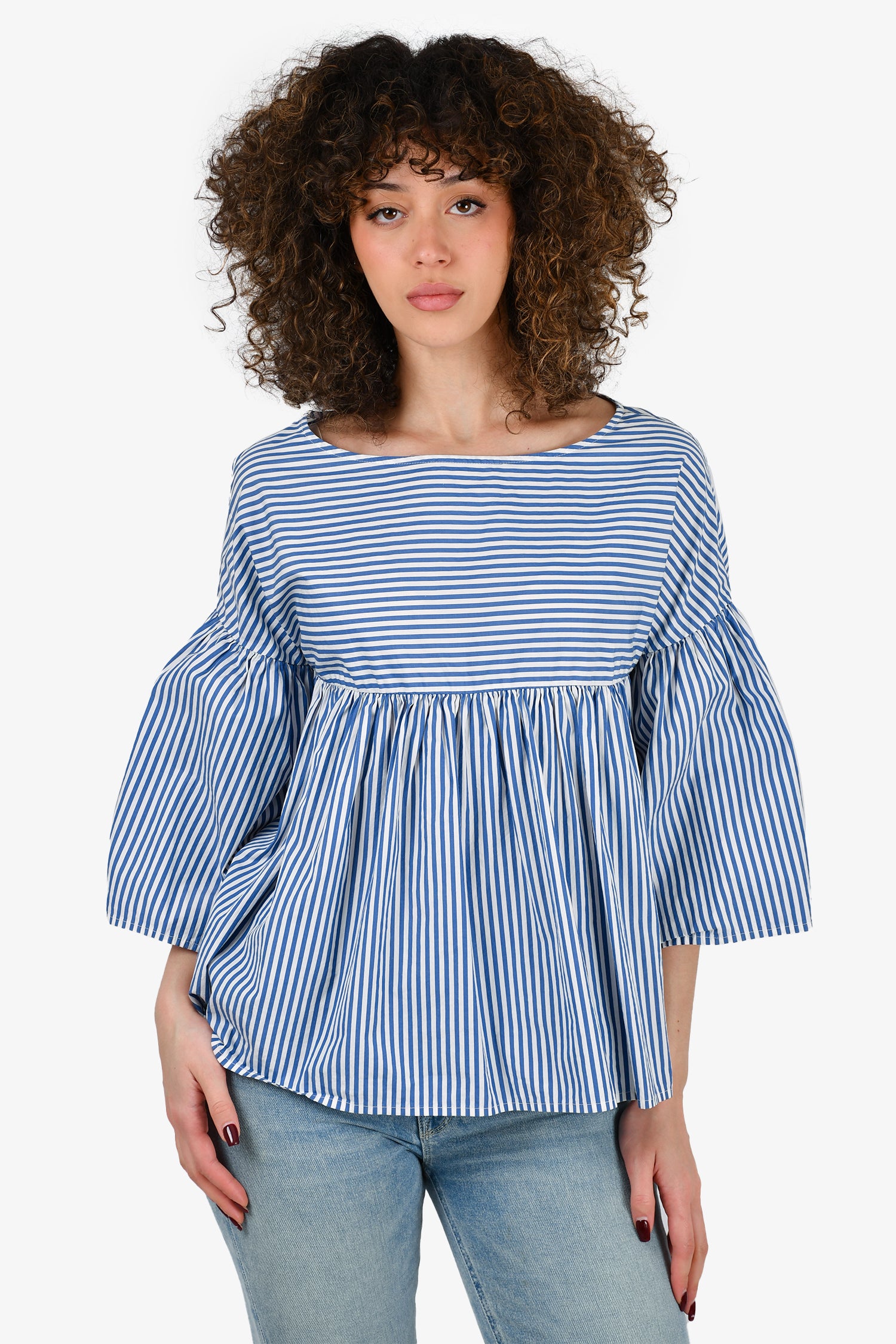 Refresh availabilityWeekend Max Mara Blue/White Striped Bell Sleeve Top. Pull-on. Tonal stitching.