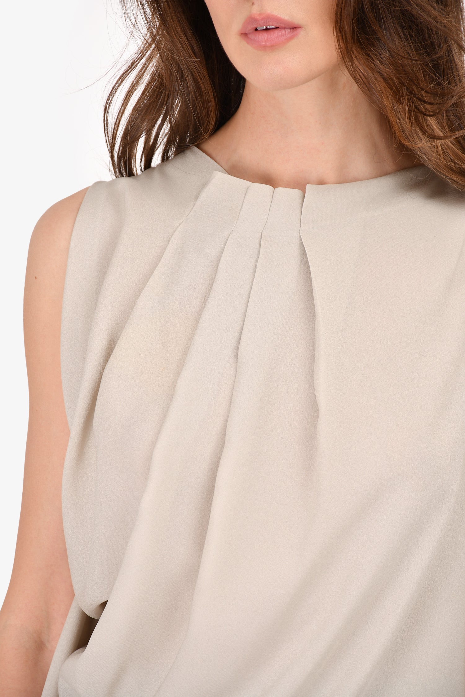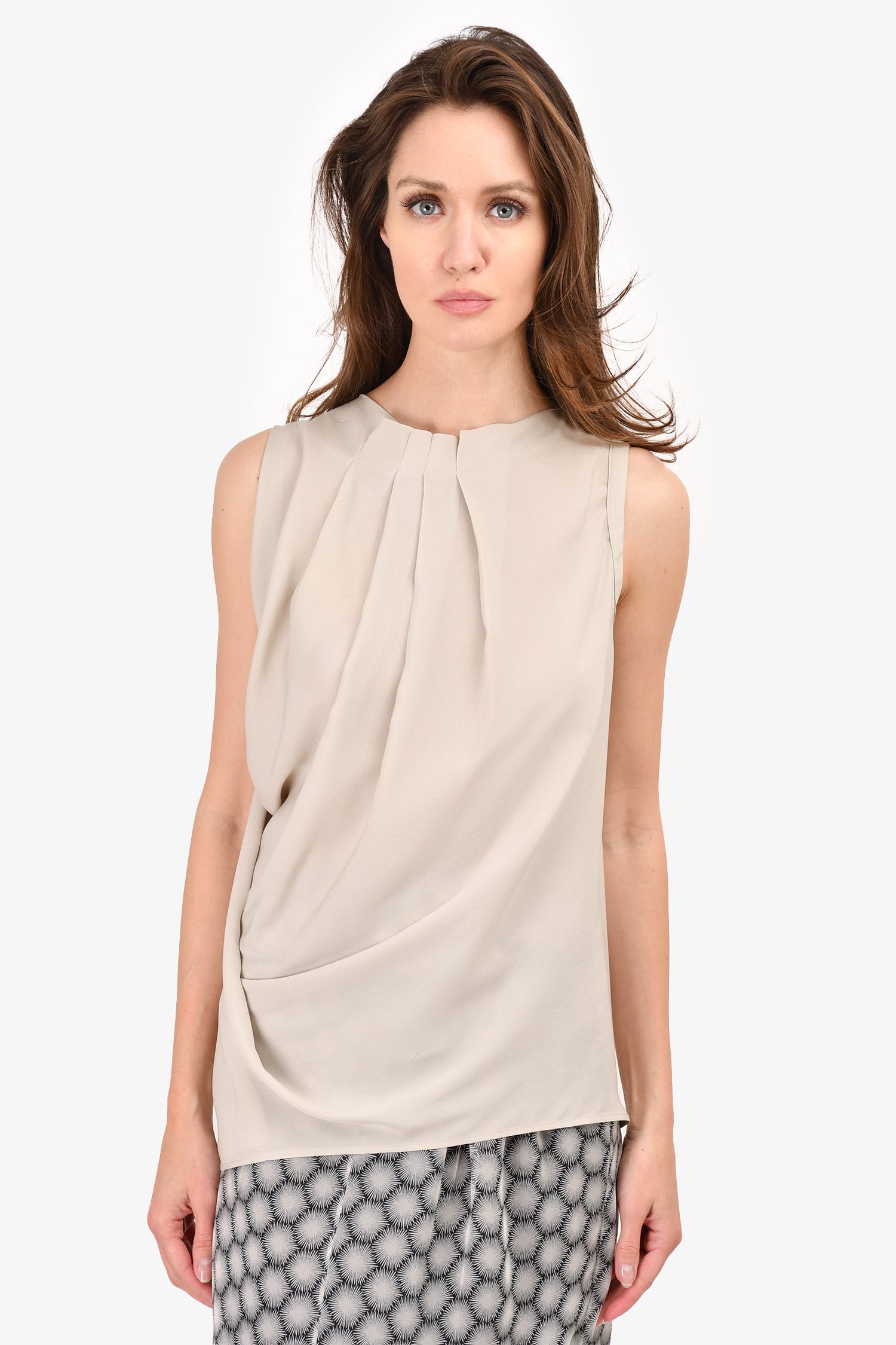 Refresh availabilityYigal Azrouel Taupe Silk Pleated Sleeveless Top. Round neck. Pull-on.