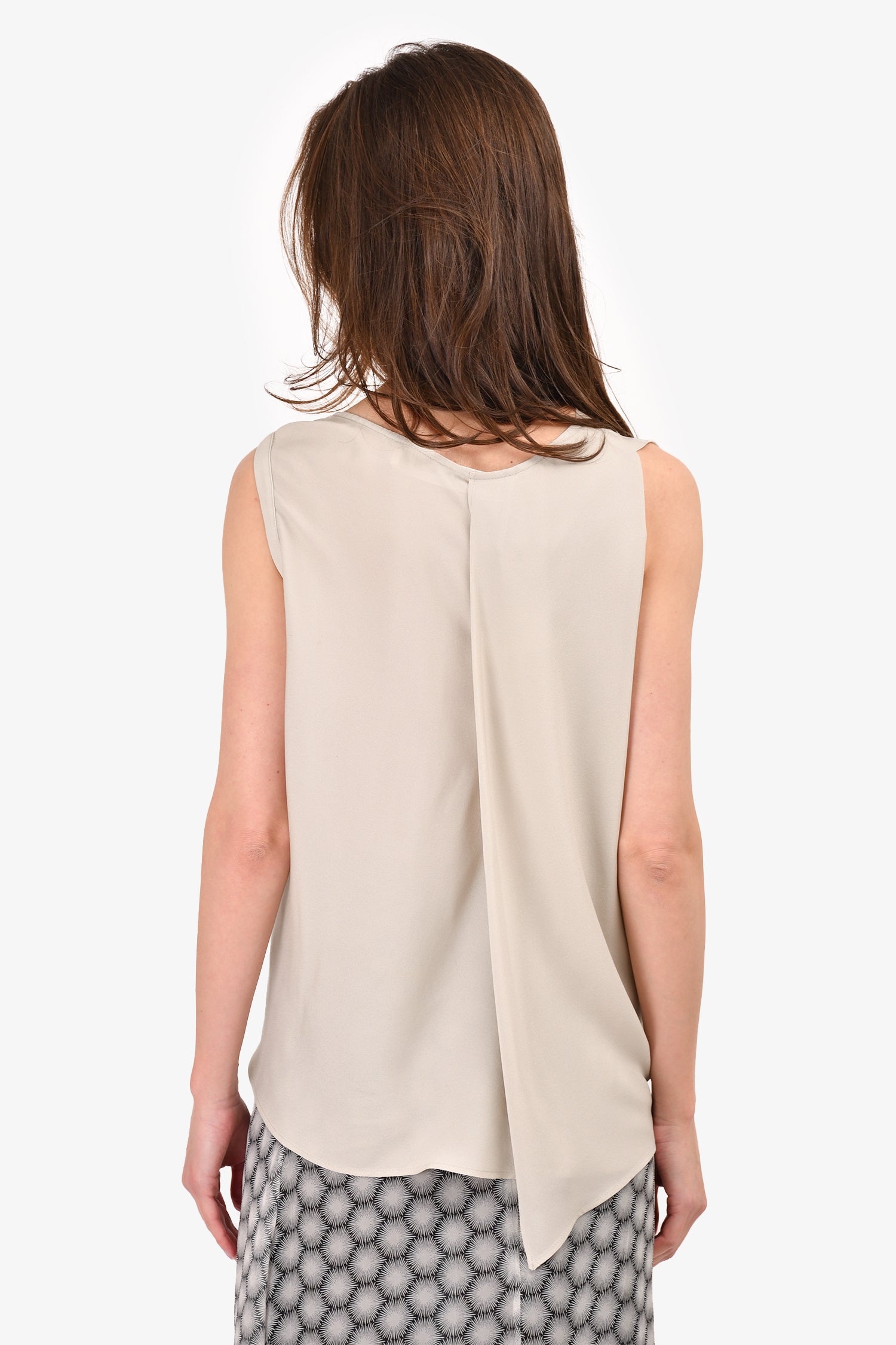 Yigal Azrouel Taupe Silk Pleated Sleeveless Top Size 4